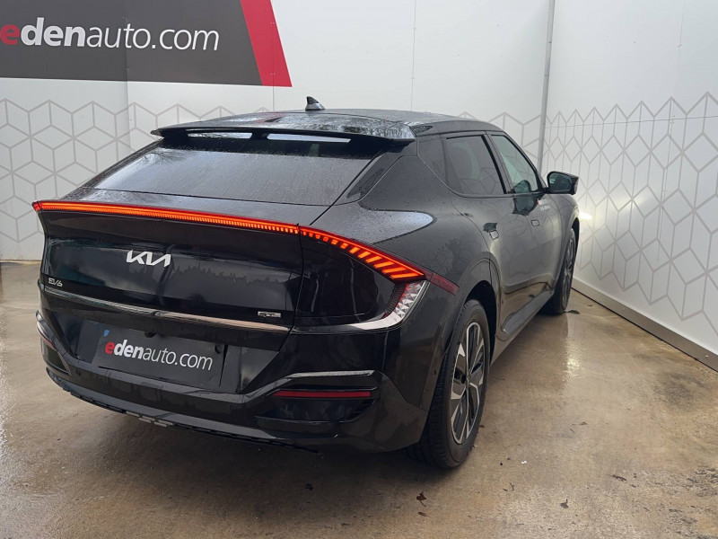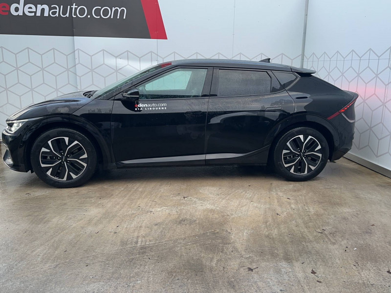 ABS avec répartiteur électronique de freinage (EBD) / Accoudoir central AR avec porte-gobelets intégrés / Affichage tête haute en réalité augmentée (AR HUD) / Aide au maintien dans la file (LKA) / Airbags frontaux, latéraux AV, rideaux et latéral central entre conducteur et passager AV / Alerte de vigilance du conducteur (DAW) / Allumage automatique des projecteurs en fonction de la luminosité / Assistance active à la conduite dans les embouteillages (LFA) / Assistance active à la conduite sur autoroute (HDA) / Boucliers AV/AR GT-line / Buse de ventilation pour la 2ème rangée / Câble de recharge pour prise domestique / Câble de recharge type 2 (T2-T2) 32 A / Caméra de recul avec lignes de guidage dynamiques / Clignotants AV et AR dynamiques / Combiné d'instrumentation 100 % digital 12.3'' / Connectique USB à l'AV de la console centrale / Connectique USB au dos des sièges conducteur et passager AV / E-Call: appel d'urgence automatique aux services de secours en cas d'accident avec géolocalisation du véhicule / Eclairage d'ambiance paramétrable / Eclairage intérieur à LED / Ecran tactile couleur 12,3'' avec compatibilité Android Auto et Apple CarPlay / Frein de parking électrique (EPB) avec fonction Autohold / Géolocalisation des bornes de recharge via la navigation embarquée et les services connectés Kia Connect Live / Ionity: Accès privilégié au réseau de recharge haute puissance Ionity pendant un an (IonityPower) / Kia Charge: service dédié de recharge en itinérance (application et carte de recharge) / Lève-vitres électriques, séquentielles et anti-pincement / Mémoire de position pour le siège conducteur (2 positions mémorisables) / Ouverture du coffre mains-libres (hauteur ajustable) / Ouverture et démarrage sans clé "Smart Key" / Palettes de commande pour la régénération d'énergie au volant / Pare-soleil avec miroir de courtoisie illuminé (conducteur et passager) / Pédalier finition aluminium / Plancher de coffre amovible / Poches aumonières au dos des sièges AV / Poignées de portes affleurantes automatiques / Porte-gobelets AV / Prise 12 V dans le coffre / Prise 12 V sur la console centrale / Prise Combo 2 (CCS) / Programmation de la recharge et de la température de l'habitacle / Projecteurs AV full LED matriciels avec gestion intelligente des feux de route / Reconnaissance des panneaux de limitation avec régulation de vitesse (ISLA) / Régulateur de vitesse adaptatif (SCC) avec fonction Stop&Go couplé au système de navigation (NSCC-C) / Rétroviseur intérieur électrochrome / Rétroviseurs extérieurs avec répétiteurs de clignotant LED Noir Brillant / Sellerie mixte suède/cuir artificiel noir avec contour des sièges blanc / Services télématiques Kia Connect offerts pendant 7 ans / Seuils de porte finition aluminium / Siège conducteur à réglages lombaires électriques / Système audio Premium Meridian / Système audio radio MP3 avec 6HP et commandes au volant / Système de fixation ISOFIX sur sièges AR latéraux / Système de freinage d'urgence autonome avec détection des piétons et des cyclistes (FCA) et fonction de croisement / Système de freinage multi collision (MCB) / Système de navigation avec cartographie Europe et services connectés Kia Connect Live offerts pendant 7 ans / Système de pré-conditionnement de la batterie assurant une température de batterie optimale pour la recharge rapide / Système de téléphonie mains-libres Bluetooth avec reconnaissance vocale et streaming audio / Trappe à ski dans la banquette AR / Verrouillage automatique des portes asservi à la vitesse / Volant chauffant