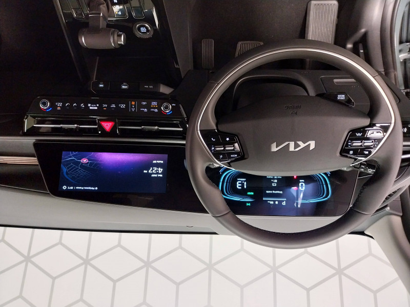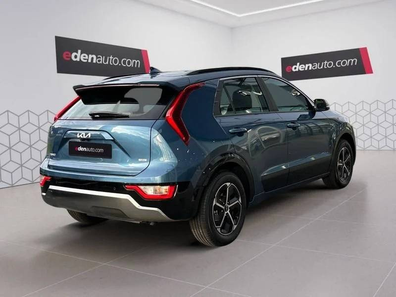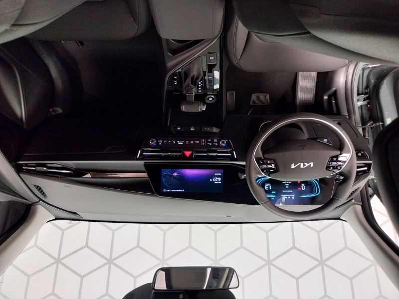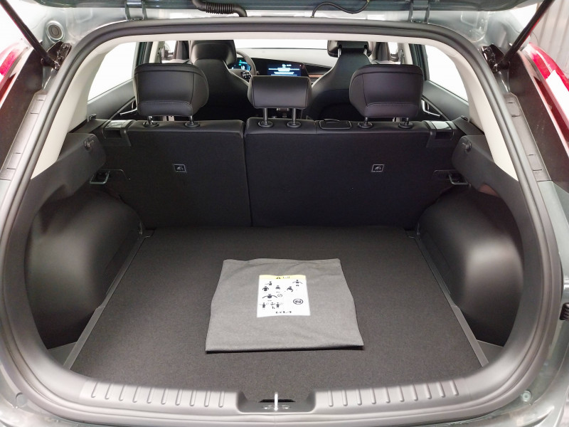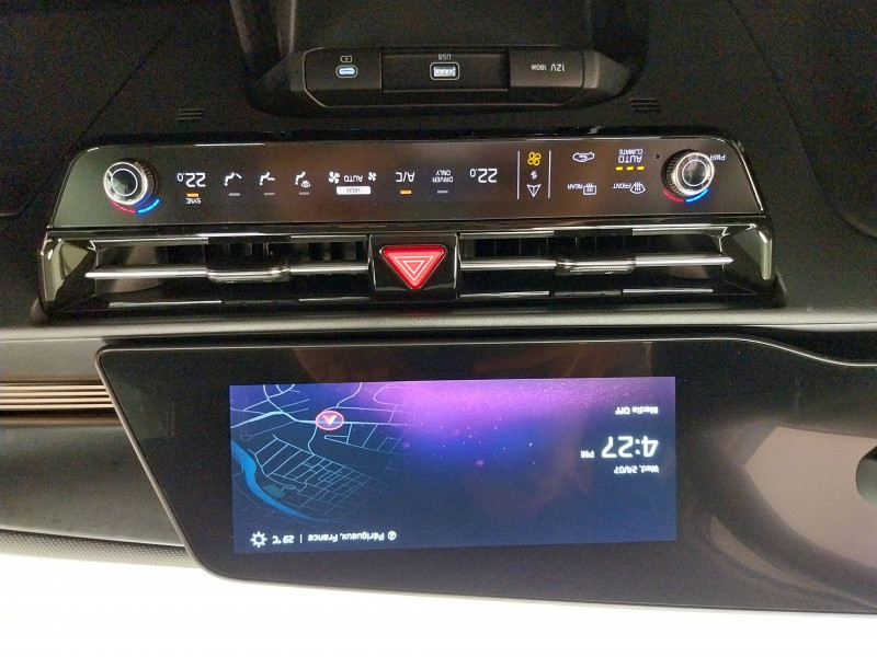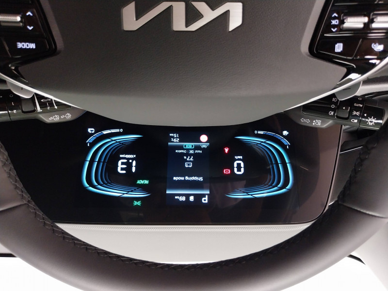 ABS avec répartiteur électronique de freinage (EBD) / Accès et démarrage mains libres (Smart Key) / Accoudoir central AR avec porte-gobelets intégrés / Accoudoir central AV avec compartiment de rangement / Aide au maintien dans la file (LKA) / Airbags frontaux, latéraux AV, rideaux AV et AR, central AV et genoux côté conducteur / Alerte de vigilance du conducteur (DAW) / Allumage automatique des projecteurs en fonction de la luminosité / Appuis-tête AV et AR réglables en hauteur et en inclinaison (à l'AV uniquement) / Assistance active à la conduite dans les embouteillages (LFA) / Assistance active à la conduite sur autoroute (HDA) / Bac de rangement et porte-bouteille dans les contre-portes AV / Béquet AR intégré au hayon avec feux stop à LED / Boucliers de protection AV et AR en finition chrome / Cache-bagage en toile recyclée pliable / Caméra de recul avec lignes de guidage dynamiques / Combiné d'instrumentation avec écran SuperVision 4.2" / Compartiments de rangement sous le plancher de coffre / Connectiques USB (x2) à charge accélérée au dos des sièges AV / Connectique USB à charge accélérée sur la partie inférieure de la planche de bord / Connectique USB à l'AV / Console centrale avec éclairage d'ambiance personnalisable / Coques de rétroviseurs couleur carrosserie / Crochets de fixation dans le coffre / Diffuseur d'air aux places AR / Direction à assistance électrique asservie à la vitesse / Eclairage d'ambiance personnalisable / Eclairage dans le coffre / Ecran tactile 12.3'' avec compatibilité via câble USB Android Auto et Apple CarPlay / Gestion intelligente des feux de route (HBA) / Inserts finition carbone brut sur la console centrale et les contre-portes / Kia Charge: service dédié de recharge en itinérance (application et carte de recharge) / Kit de dépannage en cas de crevaison / Lève-vitres AV et AR électriques, séquentiels à l'AV / Moulures de bas de portes et arches de roues contrastées noir laqué / Ouverture et démarrage sans clé "Smart Key" / Palettes au volant (modulation puissance freinage en mode ECO et changements vitesses en mode SPORT) / Pare-soleil avec miroir de courtoisie illuminé (conducteur et passager) / Poche aumonière au dos du siège conducteur / Poche aumonière au dos du siège passager AV / Poignées de portes extérieures couleur carrosserie / Poignées de portes intérieures finition chrome satiné / Pommeau de levier de vitesses gainé cuir / Protection de bouclier finition aluminium / Radars de parking AV/AR / Rails de toit finition noir laqué / Reconnaissance des panneaux de limitation avec régulation de vitesse (ISLA) / Rétroviseur intérieur électrochrome / Rétroviseurs extérieurs avec embase noir laqué / Rétroviseurs extérieurs avec répétiteurs de clignotant LED / Sélecteur de modes de conduite Eco, Confort et Sport / Sellerie mixte tissu/matière synthétique noir fusain / Services télématiques Kia Connect offerts pendant 7 ans / Spots de lecture AV et d'éclairage intérieur / Système audio RDS, 6 HP (dont 2 tweeters), avec commandes au volant / Système DAB (Digital Audio Broadcasting) système de radiodiffusion sonore numérique / Système de freinage d'urgence autonome avec détection des voitures/piétons/cyclistes (FCA 1.5) avec fonction croisement / Système de navigation avec cartographie Europe et services connectés Kia Connect Live offerts pendant 7 ans / Système de sécurité de sortie du véhicule (SEA) / Système de son virtuel (émet un léger son à basse vitesse afin de prévenir les piétons distraits) / Système de téléphonie mains-libres Bluetooth avec reconnaissance vocale et streaming audio / Systèmes Intelligents de Régénération (Smart Regen System 1.0) Modulation automatique de la puissance de freinage régénératif à la décélération / Témoin de niveau bas du liquide de lave-glace / Verrouillage automatique des portes en roulant / Volant en matière synthétique