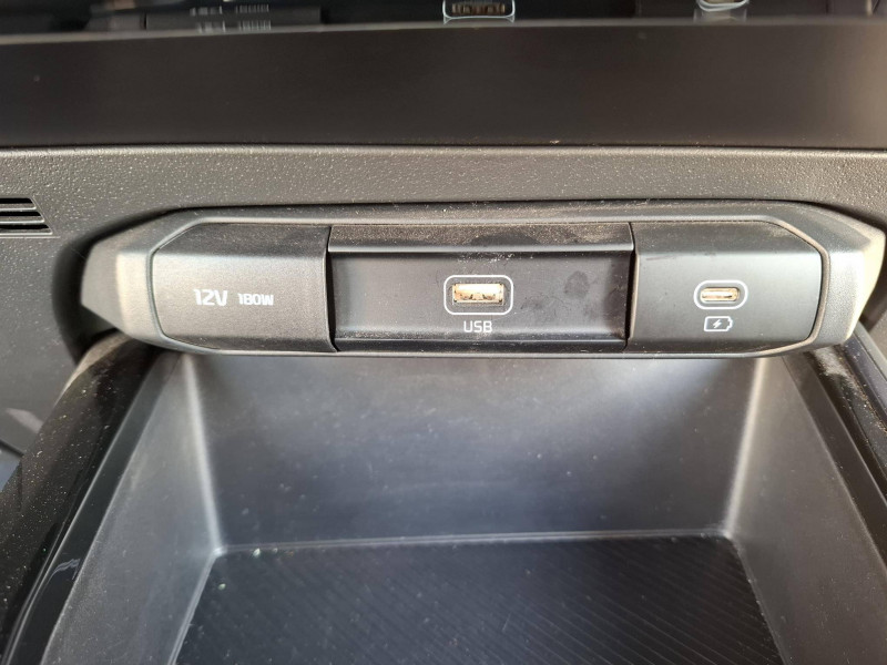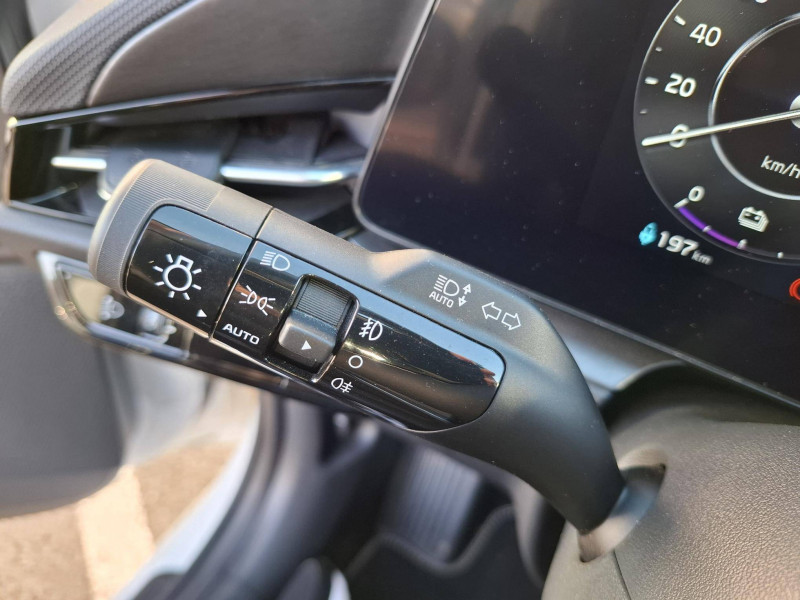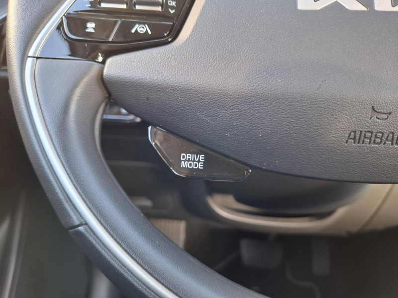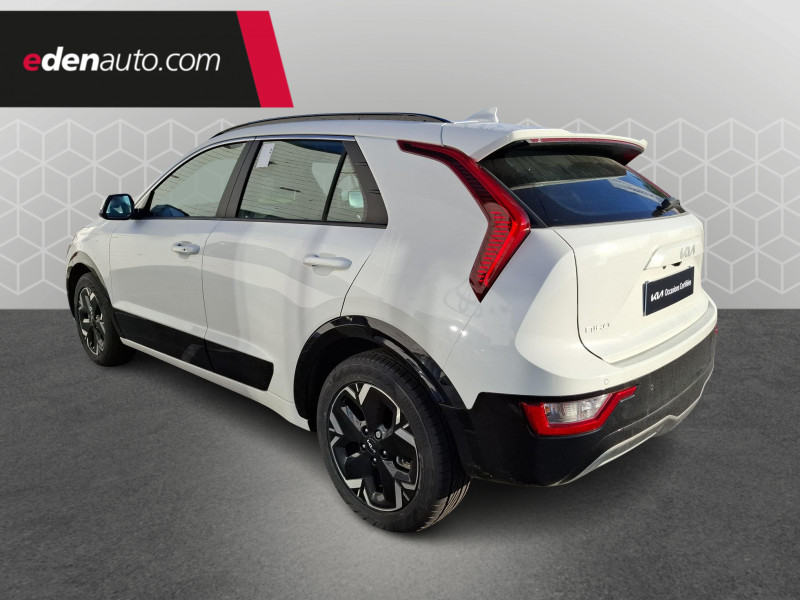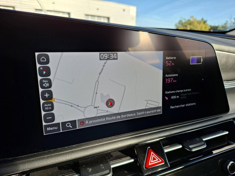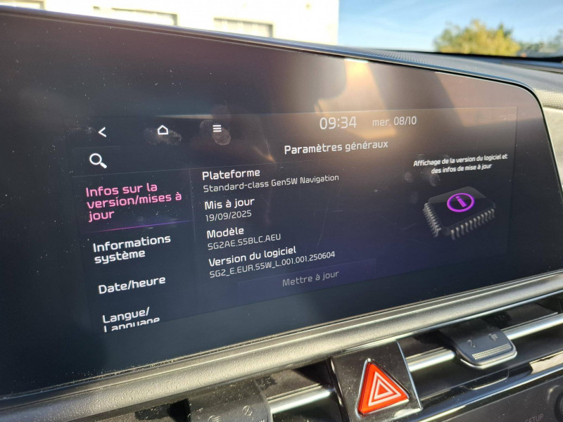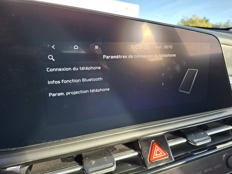Accès et démarrage mains libres (Smart Key) / Accoudoir central AR avec porte-gobelets intégrés / Accoudoir central AV avec compartiment de rangement / Aérateurs aux places AR / Aide au maintien dans la file (LKA) / Airbags frontaux, latéraux AV, rideaux AV et AR, central AV et genoux côté conducteur / Alerte de vigilance du conducteur (DAW) / Allumage automatique des projecteurs en fonction de la luminosité / Appuis-tête AV et AR réglables en hauteur et en inclinaison (à l'AV uniquement) / Assistance active à la conduite dans les embouteillages (LFA) / Assistance active à la conduite sur autoroute (HDA) / Béquet AR intégré au hayon avec feux stop à LED / Bouclier de protection finition chrome / Câble de recharge pour prise domestique / Câble de recharge type 2 (T2-T2) 32A / Cache-bagage en toile recyclée pliable / Calandre pleine avec trappe d'accès à la prise de recharge / Caméra de recul avec lignes de guidage dynamiques / Chargeur embarqué triphasé de 11 kW / Climatisation automatique avec fonction "Driver Only" / Combiné d'instrumentation 100 % digital 10.25'' / Compartiments de rangement sous le plancher de coffre / Connectiques USB (x2) à charge accélérée au dos des sièges AV / Connectique USB à charge accélérée sur la partie inférieure de la planche de bord / Connectique USB à l'AV / Coques de rétroviseurs couleur noir laqué / Crochets de fixation dans le coffre / Diffuseur d'air aux places AR / Direction à assistance électrique asservie à la vitesse / Eclairage d'ambiance personnalisable / Eclairage dans le coffre / Ecran tactile couleur 10,25'' avec compatibilité Android Auto et Apple CarPlay, système de navigation avec cartographie Europe et services connectés Kia Connect Live offerts pendant 7 ans / Géolocalisation des bornes de recharge (Navigation / Kia Connect) / Gestion intelligente des feux de route (HBA) / Inserts finition carbone brut sur le tableau de bord / Kia Charge: service dédié de recharge en itinérance (application et carte de recharge) / Kit de dépannage en cas de crevaison / Lève-vitres AV et AR électriques, séquentiels à l'AV / Modulation automatique de la puissance de freinage régénératif (Smart Regenerative Braking System 2.0) / Moulures de bas de portes et arches de roues contrastées noir laqué / Palettes au volant (modulation de la puissance du freinage régénératif) / Palettes de modulation de la puissance de freinage régénératif avec mode i-Pedal / Pare-soleil avec miroir de courtoisie illuminé (conducteur et passager) / Peinture Blanc Céleste / Plancher de coffre modulable / Poches aumonières au dos des sièges AV / Poignées de portes extérieures couleur carrosserie / Poignées de portes intérieures finition chrome satiné / Prise Combo 2 (CCS) / Programmation de la recharge et de la température de l'habitacle / Rails de toit finition noir laqué / Reconnaissance des panneaux de limitation avec régulation de vitesse (ISLA) / Rétroviseur intérieur électrochrome / Rétroviseurs extérieurs avec embase noir laqué / Rétroviseurs extérieurs avec répétiteurs de clignotant LED / Sélecteur de modes de conduite Eco, Confort et Sport / Sélecteur de vitesse rotatif électronique (SBW) / Sellerie mixte tissu/cuir artificiel noir fusain / Services télématiques Kia Connect offerts pendant 7 ans / Solution de recharge pour prise domestique et câble de recharge type 2 (T2-T2) / Spots de lecture AV et d'éclairage intérieur / Système audio RDS, 6 HP (dont 2 tweeters), avec commandes au volant / Système DAB (Digital Audio Broadcasting) : système de radiodiffusion sonore numérique / Système de chauffage de la batterie / Système de freinage d'urgence autonome avec détection des voitures/piétons/cyclistes (FCA 1.5) avec fonction croisement / Système de navigation avec cartographie Europe et services connectés Kia Connect Live offerts pendant 7 ans / Système de pré-conditionnement de la batterie assurant une température de batterie optimale pour la recharge rapide / Système de son virtuel (émet un léger son à basse vitesse afin de prévenir les piétons distraits) / Système de téléphonie mains-libres Bluetooth avec reconnaissance vocale et streaming audio / Système Intelligent de Régénération (Smart Regen System, SRS): Modulation automatique de la puissance de freinage régénératif à la décélération (Coasting Guide Control, CGC) et contrôle d'énergie prédictif (Predictive Energy Control, PEC) / Verrouillage automatique des portes en roulant / Volant chauffant / Volant en cuir artificiel