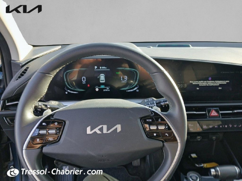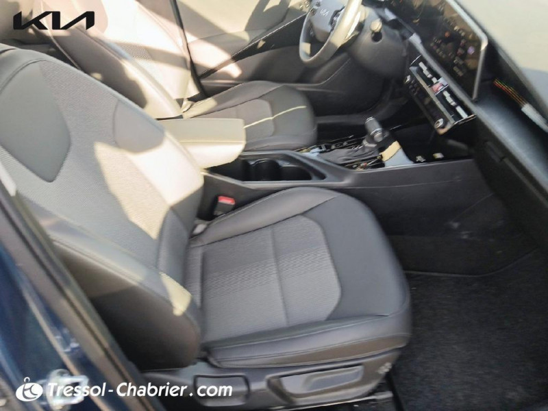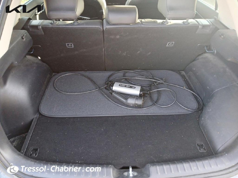 ABS avec répartiteur électronique de freinage (EBD) / Accoudoir central AR avec porte-gobelets intégrés / Accoudoir central AV avec compartiment de rangement / Accès et démarrage sans clé (Smart Key) / Aide au maintien dans la file (LKA) / latéraux AV / central AV et genoux côté conducteur / Alerte de vigilance du conducteur (DAW) / Allumage automatique des projecteurs en fonction de la luminosité / Appuis-tête AV et AR réglables en hauteur et en inclinaison (à l'AV uniquement) / Assistance active à la conduite dans les embouteillages (LFA) / Assistance active à la conduite sur autoroute (HDA) / Bac de rangement et porte-bouteille dans les contre-portes AV / Boucliers de protection AV et AR en finition chrome / Boîte à double embrayage 6 rapports / Béquet AR intégré au hayon avec feux stop à LED / Cache-bagage en toile recyclée pliable / Caméra de recul avec lignes de guidage dynamiques / Chargeur embarqué triphasé de 3.3 kW / Combiné d'instrumentation avec écran SuperVision 4.2p / Compartiments de rangement sous le plancher de coffre / Connectique USB à charge accélérée sur la partie inférieure de la planche de bord / Connectique USB à l'AV / Connectiques USB (x2) à charge accélérée au dos des sièges AV / Console centrale avec éclairage d'ambiance personnalisable / Contrôle de traction (TCS) / Coques de rétroviseurs couleur carrosserie / Crochets de fixation dans le coffre / Câble de recharge pour prise domestique / Diffuseur d'air aux places AR / Direction à assistance électrique asservie à la vitesse / Désembuage automatique du pare-brise / Eclairage d'ambiance personnalisable / Eclairage dans le coffre / 25'' / cartographie Europe / mise à jour de la cartographie / Frein de parking électrique (EPB) / Gestion intelligente des feux de route (HBA) / Géolocalisation des bornes de recharge via la navigation embarquée et les services connectés Kia / Inserts finition carbone brut sur la console centrale et les contre-portes / Inserts finition carbone brut sur le tableau de bord / Kia Charge: service dédié de recharge en itinérance (application et carte de recharge) / Kit de dépannage en cas de crevaison / séquentiels à l'AV / Moulures de bas de portes et surlignage des passages de roues en finition noir laqué / Palettes de modulation de la puissance de freinage régénératif au volant (en mode ECO) / Pare-soleil avec miroir de courtoisie illuminé (conducteur et passager) / Poche aumonière au dos du siège conducteur / Poche aumonière au dos du siège passager AV / Poignées de portes extérieures couleur carrosserie / Poignées de portes intérieures finition chrome satiné / Pommeau de levier de vitesses gainé cuir / Projecteurs AV halogènes / Protection de bouclier finition aluminium / Radars de parking AV/AR / Rails de toit finition noir laqué / Reconnaissance des panneaux de limitation avec régulation de vitesse (ISLA) / Régulateur de vitesse adaptatif (SCC) avec fonction Stop & Go / Rétroviseur intérieur anri-éblouissement / Rétroviseur intérieur électrochrome / Rétroviseurs extérieurs avec embase noir laqué / Rétroviseurs extérieurs avec répétiteurs de clignotant LED / Rétroviseurs extérieurs électriques et chauffants / Sellerie mixte tissu/matière synthétique noir fusain / Services télématiques Kia Connect offerts pendant 7 ans / Siège passager AV réglable en hauteur / Spots de lecture AV et d'éclairage intérieur / Système DAB (Digital Audio Broadcasting) système de radiodiffusion sonore numérique / 6 HP (dont 2 tweeters) / Système de freinage d'urgence autonome avec détection des voitures/piétons/cyclistes (FCA 1.5) / Système de freinage à récupération d'énergie / Système de son virtuel (émet un léger son à basse vitesse afin de prévenir les piétons / Système de téléphonie mains-libres Bluetooth avec reconnaissance vocale et streaming audio / Systèmes Intelligents de Régénération (Smart Regen System 1.0) / Sélecteur de modes de conduite Eco / Confort et Sport / Témoin de niveau bas du liquide de lave-glace / Verrouillage automatique des portes en roulant / Volant en matière synthétique