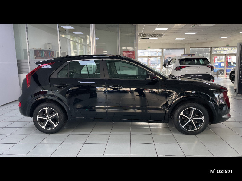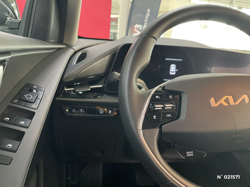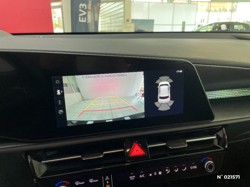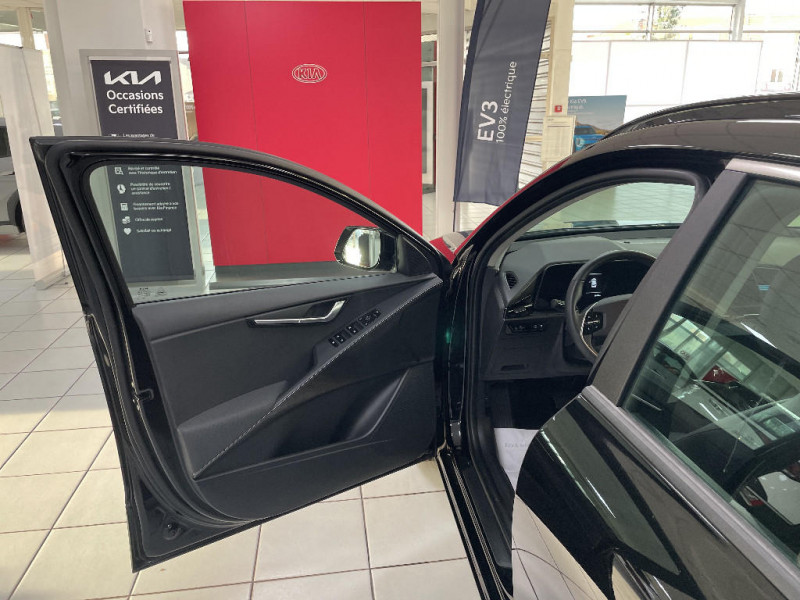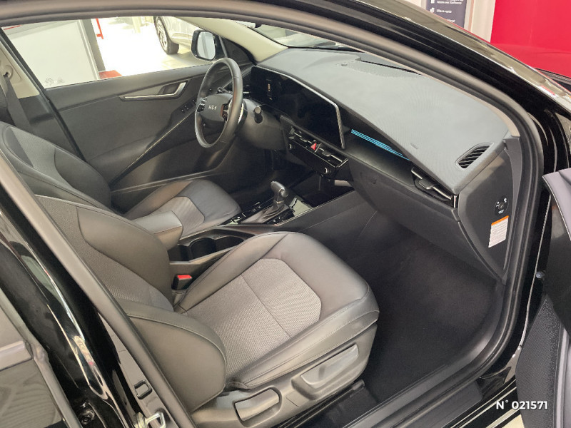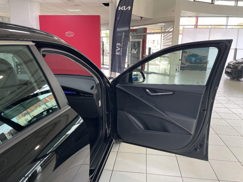 Ouverture et démarrage sans clé "Smart Key" / Palettes au volant (modulation puissance freinage en mode ECO et changements vitesses en mode SPORT) / Pare-soleil avec miroir de courtoisie illuminé (conducteur et passager) / Poche aumonière au dos du siège conducteur / Poche aumonière au dos du siège passager AV / Poignées de portes extérieures couleur carrosserie / Poignées de portes intérieures finition chrome satiné / Pommeau de levier de vitesses gainé cuir / Protection de bouclier finition aluminium / Radars de parking AV/AR / Rails de toit finition noir laqué / Reconnaissance des panneaux de limitation avec régulation de vitesse (ISLA) / Rétroviseur intérieur électrochrome / Rétroviseurs extérieurs avec embase noir laqué / Rétroviseurs extérieurs avec répétiteurs de clignotant LED / ABS avec répartiteur électronique de freinage (EBD) / Accès et démarrage mains libres (Smart Key) / Accoudoir central AR avec porte-gobelets intégrés / Accoudoir central AV avec compartiment de rangement / Aide au maintien dans la file (LKA) / Airbags frontaux, latéraux AV, rideaux AV et AR, central AV et genoux côté conducteur / Alerte de vigilance du conducteur (DAW) / Allumage automatique des projecteurs en fonction de la luminosité / Appuis-tête AV et AR réglables en hauteur et en inclinaison (à l'AV uniquement) / Assistance active à la conduite dans les embouteillages (LFA) / Gestion intelligente des feux de route (HBA) / Inserts finition carbone brut sur la console centrale et les contre-portes / Kia Charge: service dédié de recharge en itinérance (application et carte de recharge) / Kit de dépannage en cas de crevaison / Lève-vitres AV et AR électriques, séquentiels à l'AV / Assistance active à la conduite sur autoroute (HDA) / Bac de rangement et porte-bouteille dans les contre-portes AV / Béquet AR intégré au hayon avec feux stop à LED / Diffuseur d'air aux places AR / Direction à assistance électrique asservie à la vitesse / Eclairage d'ambiance personnalisable / Eclairage dans le coffre / Ecran tactile 12.3'' avec compatibilité via câble USB Android Auto et Apple CarPlay / Boucliers de protection AV et AR en finition chrome / Cache-bagage en toile recyclée pliable / Combiné d'instrumentation avec écran SuperVision 4.2" / Compartiments de rangement sous le plancher de coffre / Connectiques USB (x2) à charge accélérée au dos des sièges AV / Connectique USB à charge accélérée sur la partie inférieure de la planche de bord / Connectique USB à l'AV / Console centrale avec éclairage d'ambiance personnalisable / Coques de rétroviseurs couleur carrosserie / Crochets de fixation dans le coffre / Caméra de recul avec lignes de guidage dynamiques / Système de navigation avec cartographie Europe et services connectés Kia Connect Live offerts / Système de sécurité de sortie du véhicule (SEA) / Moulures de bas de portes et arches de roues contrastées noir laqué / Verrouillage automatique des portes en roulant / Volant en matière synthétique / Systèmes Intelligents de Régénération (Smart Regen System 1.0) / Témoin de niveau bas du liquide de lave-glace / Sélecteur de modes de conduite Eco, Confort et Sport / Sellerie mixte tissu/matière synthétique noir fusain / Services télématiques Kia Connect offerts pendant 7 ans / Spots de lecture AV et d'éclairage intérieur / Système audio RDS, 6 HP (dont 2 tweeters), avec commandes au volant / Système DAB (Digital Audio Broadcasting) système de radiodiffusion sonore numérique / Système de freinage d'urgence autonome avec détection des voitures/piétons/cyclistes (FCA 1.5) / Système de son virtuel (émet un léger son à basse vitesse afin de prévenir les piétons / Système de téléphonie mains-libres Bluetooth avec reconnaissance vocale et streaming audio