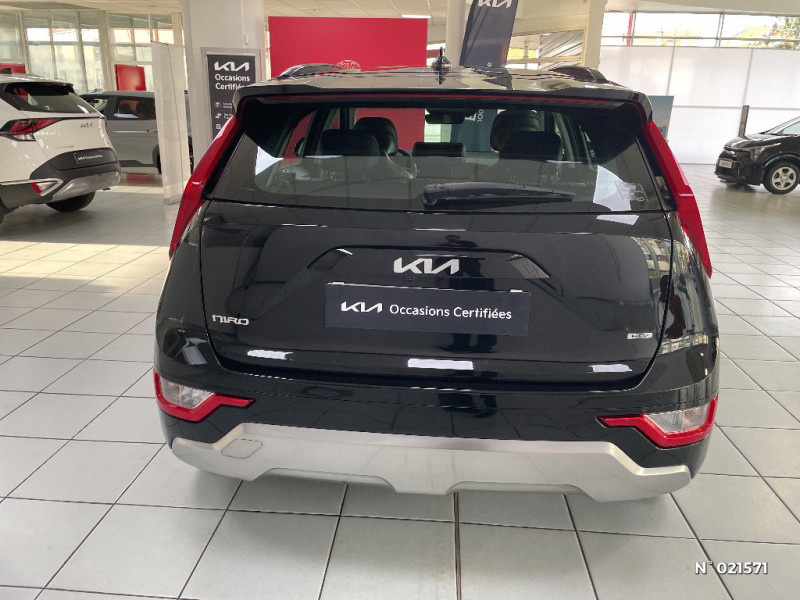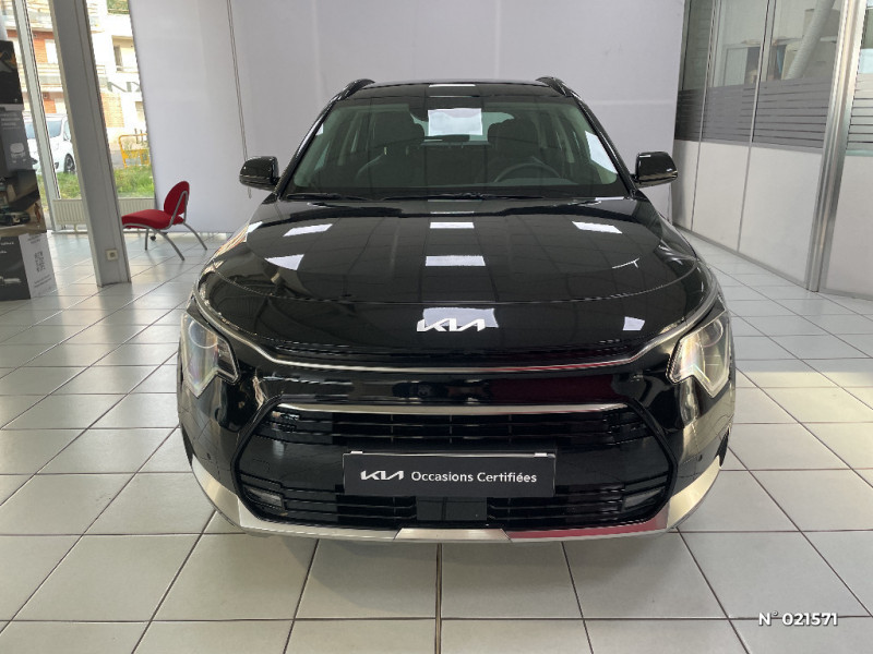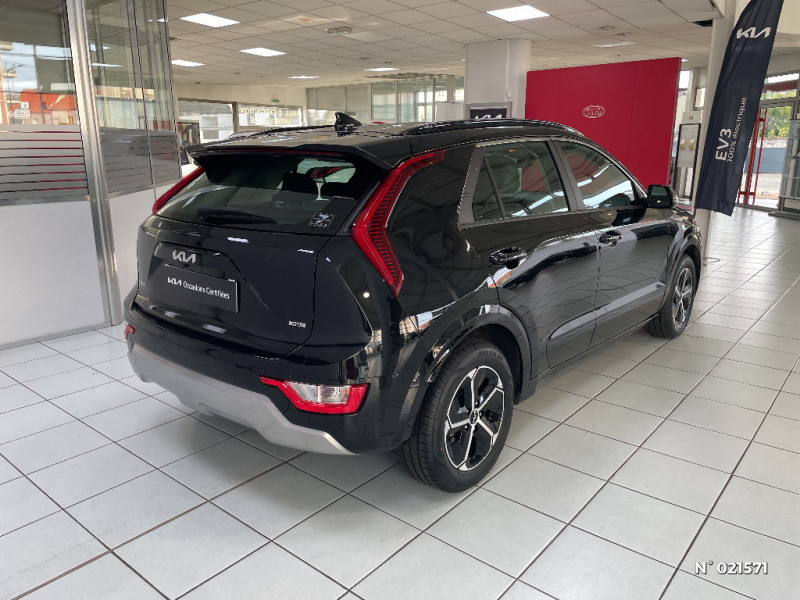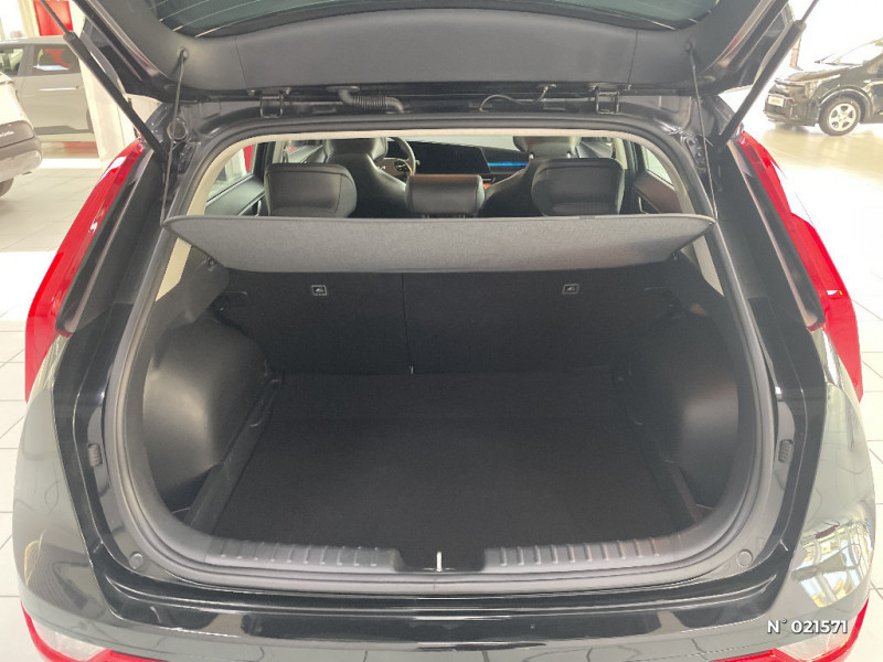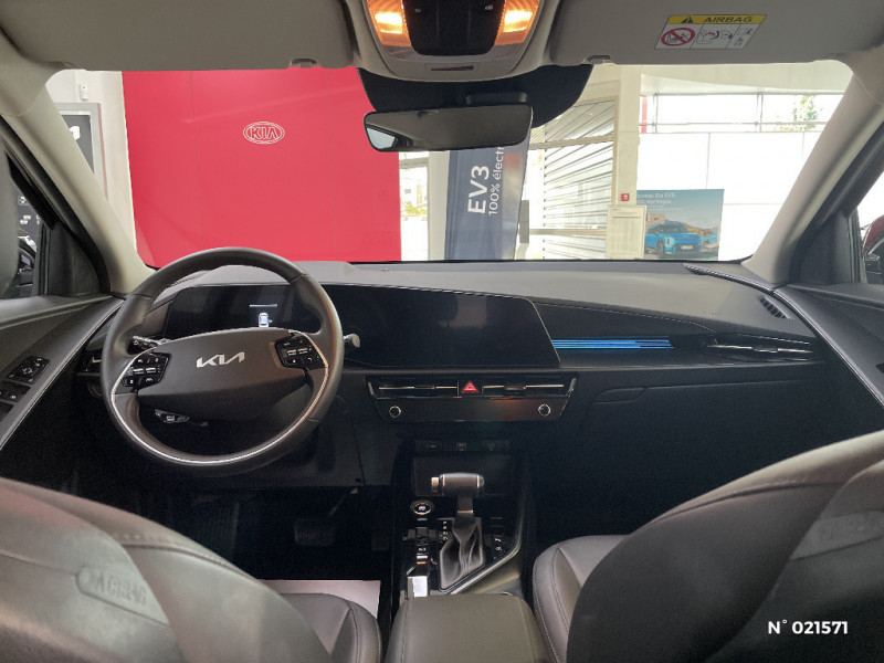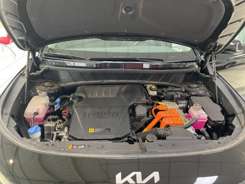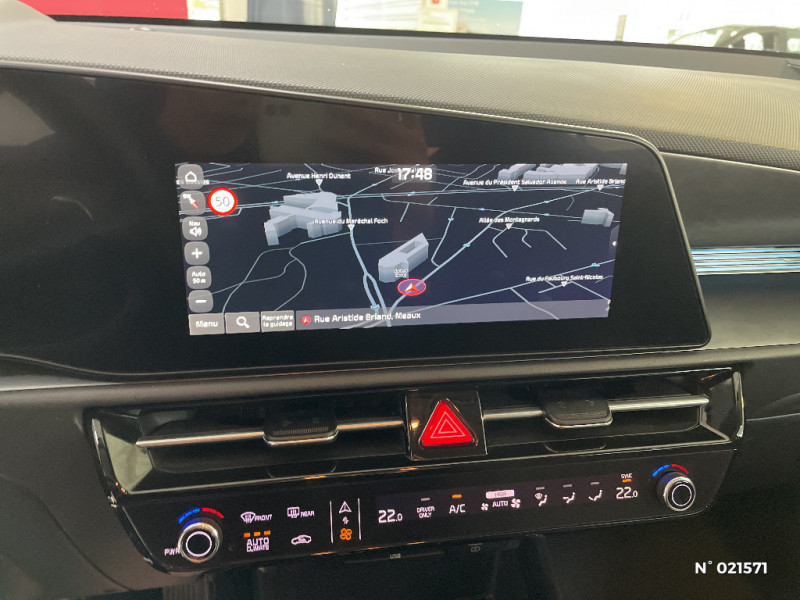 Ouverture et démarrage sans clé "Smart Key" / Palettes au volant (modulation puissance freinage en mode ECO et changements vitesses en mode SPORT) / Pare-soleil avec miroir de courtoisie illuminé (conducteur et passager) / Poche aumonière au dos du siège conducteur / Poche aumonière au dos du siège passager AV / Poignées de portes extérieures couleur carrosserie / Poignées de portes intérieures finition chrome satiné / Pommeau de levier de vitesses gainé cuir / Protection de bouclier finition aluminium / Radars de parking AV/AR / Rails de toit finition noir laqué / Reconnaissance des panneaux de limitation avec régulation de vitesse (ISLA) / Rétroviseur intérieur électrochrome / Rétroviseurs extérieurs avec embase noir laqué / Rétroviseurs extérieurs avec répétiteurs de clignotant LED / ABS avec répartiteur électronique de freinage (EBD) / Accès et démarrage mains libres (Smart Key) / Accoudoir central AR avec porte-gobelets intégrés / Accoudoir central AV avec compartiment de rangement / Aide au maintien dans la file (LKA) / Airbags frontaux, latéraux AV, rideaux AV et AR, central AV et genoux côté conducteur / Alerte de vigilance du conducteur (DAW) / Allumage automatique des projecteurs en fonction de la luminosité / Appuis-tête AV et AR réglables en hauteur et en inclinaison (à l'AV uniquement) / Assistance active à la conduite dans les embouteillages (LFA) / Gestion intelligente des feux de route (HBA) / Inserts finition carbone brut sur la console centrale et les contre-portes / Kia Charge: service dédié de recharge en itinérance (application et carte de recharge) / Kit de dépannage en cas de crevaison / Lève-vitres AV et AR électriques, séquentiels à l'AV / Assistance active à la conduite sur autoroute (HDA) / Bac de rangement et porte-bouteille dans les contre-portes AV / Béquet AR intégré au hayon avec feux stop à LED / Diffuseur d'air aux places AR / Direction à assistance électrique asservie à la vitesse / Eclairage d'ambiance personnalisable / Eclairage dans le coffre / Ecran tactile 12.3'' avec compatibilité via câble USB Android Auto et Apple CarPlay / Boucliers de protection AV et AR en finition chrome / Cache-bagage en toile recyclée pliable / Combiné d'instrumentation avec écran SuperVision 4.2" / Compartiments de rangement sous le plancher de coffre / Connectiques USB (x2) à charge accélérée au dos des sièges AV / Connectique USB à charge accélérée sur la partie inférieure de la planche de bord / Connectique USB à l'AV / Console centrale avec éclairage d'ambiance personnalisable / Coques de rétroviseurs couleur carrosserie / Crochets de fixation dans le coffre / Caméra de recul avec lignes de guidage dynamiques / Système de navigation avec cartographie Europe et services connectés Kia Connect Live offerts / Système de sécurité de sortie du véhicule (SEA) / Moulures de bas de portes et arches de roues contrastées noir laqué / Verrouillage automatique des portes en roulant / Volant en matière synthétique / Systèmes Intelligents de Régénération (Smart Regen System 1.0) / Témoin de niveau bas du liquide de lave-glace / Sélecteur de modes de conduite Eco, Confort et Sport / Sellerie mixte tissu/matière synthétique noir fusain / Services télématiques Kia Connect offerts pendant 7 ans / Spots de lecture AV et d'éclairage intérieur / Système audio RDS, 6 HP (dont 2 tweeters), avec commandes au volant / Système DAB (Digital Audio Broadcasting) système de radiodiffusion sonore numérique / Système de freinage d'urgence autonome avec détection des voitures/piétons/cyclistes (FCA 1.5) / Système de son virtuel (émet un léger son à basse vitesse afin de prévenir les piétons / Système de téléphonie mains-libres Bluetooth avec reconnaissance vocale et streaming audio