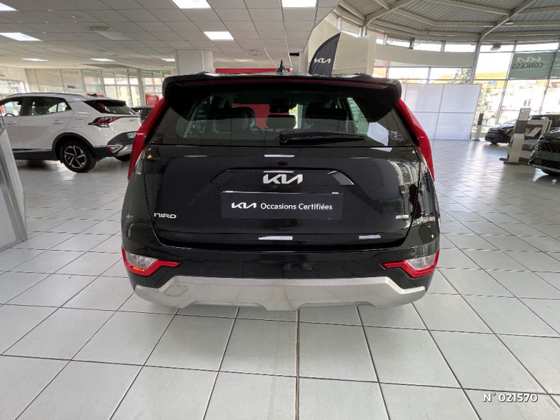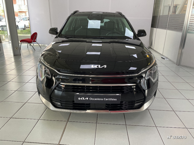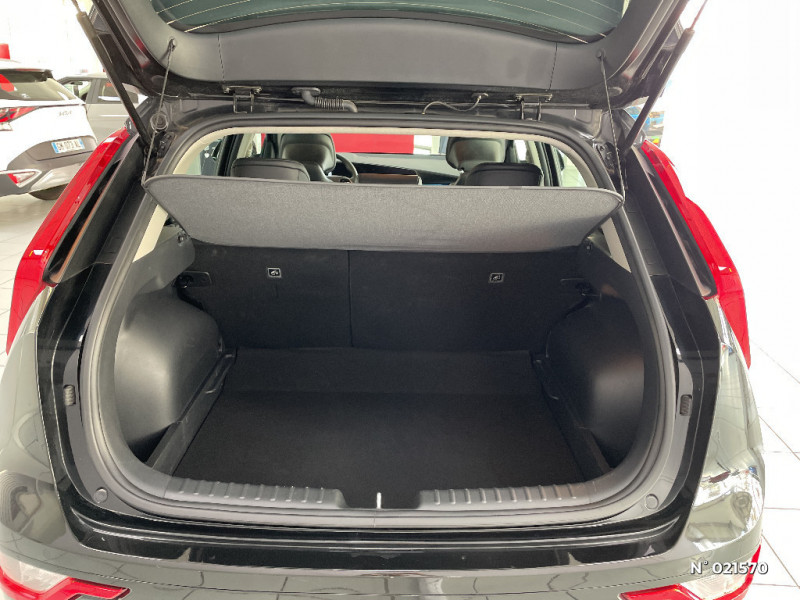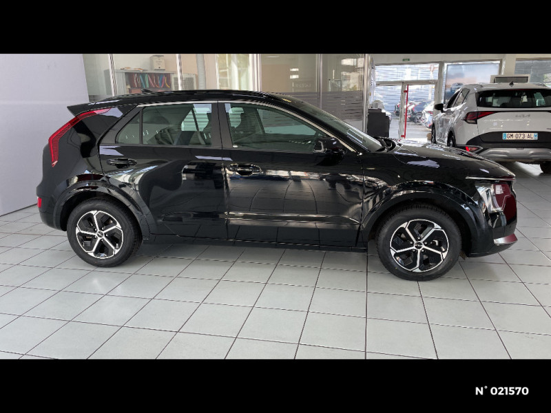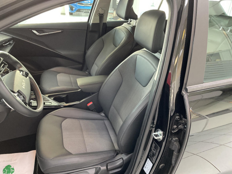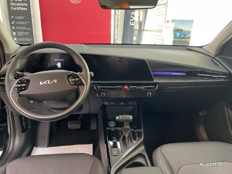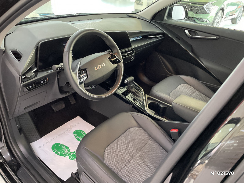 Rétroviseur intérieur électrochrome / Rétroviseurs extérieurs avec embase noir laqué / Rétroviseurs extérieurs avec répétiteurs de clignotant LED / Sélecteur de modes de conduite Eco, Confort et Sport / Lève-vitres AV et AR électriques, séquentiels à l'AV / Sellerie mixte tissu/matière synthétique noir fusain / Combiné d'instrumentation avec écran SuperVision 4.2" / Compartiments de rangement sous le plancher de coffre / Connectiques USB (x2) à charge accélérée au dos des sièges AV / Connectique USB à charge accélérée sur la partie inférieure de la planche de bord / Connectique USB à l'AV / Console centrale avec éclairage d'ambiance personnalisable / Système de téléphonie mains-libres Bluetooth avec reconnaissance vocale et streaming audio / Systèmes Intelligents de Régénération (Smart Regen System 1.0) / Coques de rétroviseurs couleur carrosserie / Crochets de fixation dans le coffre / Direction à assistance électrique asservie à la vitesse / Eclairage d'ambiance personnalisable / Eclairage dans le coffre / Ecran tactile 12.3'' avec compatibilité via câble USB Android Auto et Apple CarPlay / Gestion intelligente des feux de route (HBA) / Inserts finition carbone brut sur la console centrale et les contre-portes / Kia Charge: service dédié de recharge en itinérance (application et carte de recharge) / Kit de dépannage en cas de crevaison / Diffuseur d'air aux places AR / Moulures de bas de portes et arches de roues contrastées noir laqué / Ouverture et démarrage sans clé "Smart Key" / Palettes au volant (modulation puissance freinage en mode ECO et changements vitesses en mode SPORT) / Pare-soleil avec miroir de courtoisie illuminé (conducteur et passager) / Poche aumonière au dos du siège conducteur / Poche aumonière au dos du siège passager AV / Poignées de portes extérieures couleur carrosserie / Poignées de portes intérieures finition chrome satiné / Pommeau de levier de vitesses gainé cuir / ABS avec répartiteur électronique de freinage (EBD) / Accès et démarrage mains libres (Smart Key) / Accoudoir central AR avec porte-gobelets intégrés / Accoudoir central AV avec compartiment de rangement / Aide au maintien dans la file (LKA) / Airbags frontaux, latéraux AV, rideaux AV et AR, central AV et genoux côté conducteur / Alerte de vigilance du conducteur (DAW) / Allumage automatique des projecteurs en fonction de la luminosité / Appuis-tête AV et AR réglables en hauteur et en inclinaison (à l'AV uniquement) / Assistance active à la conduite dans les embouteillages (LFA) / Assistance active à la conduite sur autoroute (HDA) / Bac de rangement et porte-bouteille dans les contre-portes AV / Béquet AR intégré au hayon avec feux stop à LED / Boucliers de protection AV et AR en finition chrome / Cache-bagage en toile recyclée pliable / Caméra de recul avec lignes de guidage dynamiques / Système de son virtuel (émet un léger son à basse vitesse afin de prévenir les piétons / Témoin de niveau bas du liquide de lave-glace / Verrouillage automatique des portes en roulant / Volant en matière synthétique / Spots de lecture AV et d'éclairage intérieur / Système audio RDS, 6 HP (dont 2 tweeters), avec commandes au volant / Système DAB (Digital Audio Broadcasting) système de radiodiffusion sonore numérique / Système de freinage d'urgence autonome avec détection des voitures/piétons/cyclistes (FCA 1.5) / Système de navigation avec cartographie Europe et services connectés Kia Connect Live offerts / Système de sécurité de sortie du véhicule (SEA) / Services télématiques Kia Connect offerts pendant 7 ans / Protection de bouclier finition aluminium / Radars de parking AV/AR / Rails de toit finition noir laqué / Reconnaissance des panneaux de limitation avec régulation de vitesse (ISLA)