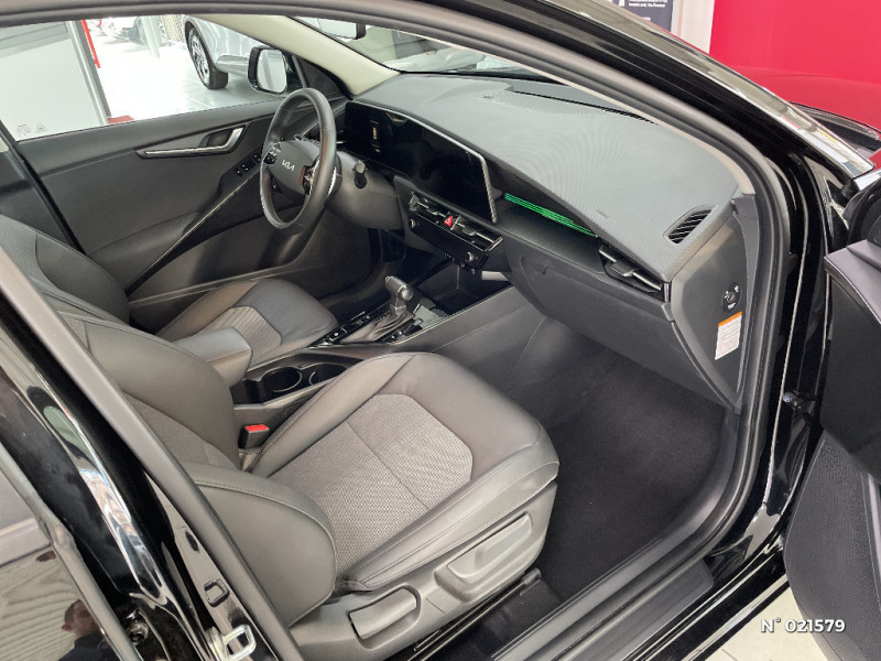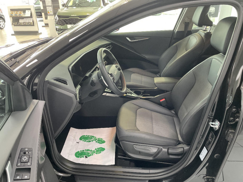 Poche aumonière au dos du siège passager AV / Poignées de portes extérieures couleur carrosserie / Poignées de portes intérieures finition chrome satiné / Pommeau de levier de vitesses gainé cuir / Reconnaissance des panneaux de limitation avec régulation de vitesse (ISLA) / Rétroviseur intérieur électrochrome / Rétroviseurs extérieurs avec embase noir laqué / Rétroviseurs extérieurs avec répétiteurs de clignotant LED / Sélecteur de modes de conduite Eco, Confort et Sport / Sellerie mixte tissu/matière synthétique noir fusain / Services télématiques Kia Connect offerts pendant 7 ans / Protection de bouclier finition aluminium / Radars de parking AV/AR / Rails de toit finition noir laqué / Spots de lecture AV et d'éclairage intérieur / Système audio RDS, 6 HP (dont 2 tweeters), avec commandes au volant / Système DAB (Digital Audio Broadcasting) système de radiodiffusion sonore numérique / Eclairage d'ambiance personnalisable / Eclairage dans le coffre / Ecran tactile 12.3'' avec compatibilité via câble USB Android Auto et Apple CarPlay / Gestion intelligente des feux de route (HBA) / Inserts finition carbone brut sur la console centrale et les contre-portes / Système de freinage d'urgence autonome avec détection des voitures/piétons/cyclistes (FCA 1.5) / Système de navigation avec cartographie Europe et services connectés Kia Connect Live offerts / Système de sécurité de sortie du véhicule (SEA) / Système de son virtuel (émet un léger son à basse vitesse afin de prévenir les piétons / Système de téléphonie mains-libres Bluetooth avec reconnaissance vocale et streaming audio / Systèmes Intelligents de Régénération (Smart Regen System 1.0) / Témoin de niveau bas du liquide de lave-glace / Verrouillage automatique des portes en roulant / Volant en matière synthétique / Kia Charge: service dédié de recharge en itinérance (application et carte de recharge) / Kit de dépannage en cas de crevaison / Lève-vitres AV et AR électriques, séquentiels à l'AV / Moulures de bas de portes et arches de roues contrastées noir laqué / Accès et démarrage mains libres (Smart Key) / Accoudoir central AR avec porte-gobelets intégrés / Accoudoir central AV avec compartiment de rangement / Aide au maintien dans la file (LKA) / Airbags frontaux, latéraux AV, rideaux AV et AR, central AV et genoux côté conducteur / Alerte de vigilance du conducteur (DAW) / Allumage automatique des projecteurs en fonction de la luminosité / Appuis-tête AV et AR réglables en hauteur et en inclinaison (à l'AV uniquement) / Assistance active à la conduite dans les embouteillages (LFA) / Assistance active à la conduite sur autoroute (HDA) / Bac de rangement et porte-bouteille dans les contre-portes AV / Béquet AR intégré au hayon avec feux stop à LED / Boucliers de protection AV et AR en finition chrome / Cache-bagage en toile recyclée pliable / Caméra de recul avec lignes de guidage dynamiques / Combiné d'instrumentation avec écran SuperVision 4.2" / Compartiments de rangement sous le plancher de coffre / Connectiques USB (x2) à charge accélérée au dos des sièges AV / Connectique USB à charge accélérée sur la partie inférieure de la planche de bord / Connectique USB à l'AV / Console centrale avec éclairage d'ambiance personnalisable / Coques de rétroviseurs couleur carrosserie / Crochets de fixation dans le coffre / ABS avec répartiteur électronique de freinage (EBD) / Direction à assistance électrique asservie à la vitesse / Diffuseur d'air aux places AR / Ouverture et démarrage sans clé "Smart Key" / Palettes au volant (modulation puissance freinage en mode ECO et changements vitesses en mode SPORT) / Pare-soleil avec miroir de courtoisie illuminé (conducteur et passager) / Poche aumonière au dos du siège conducteur