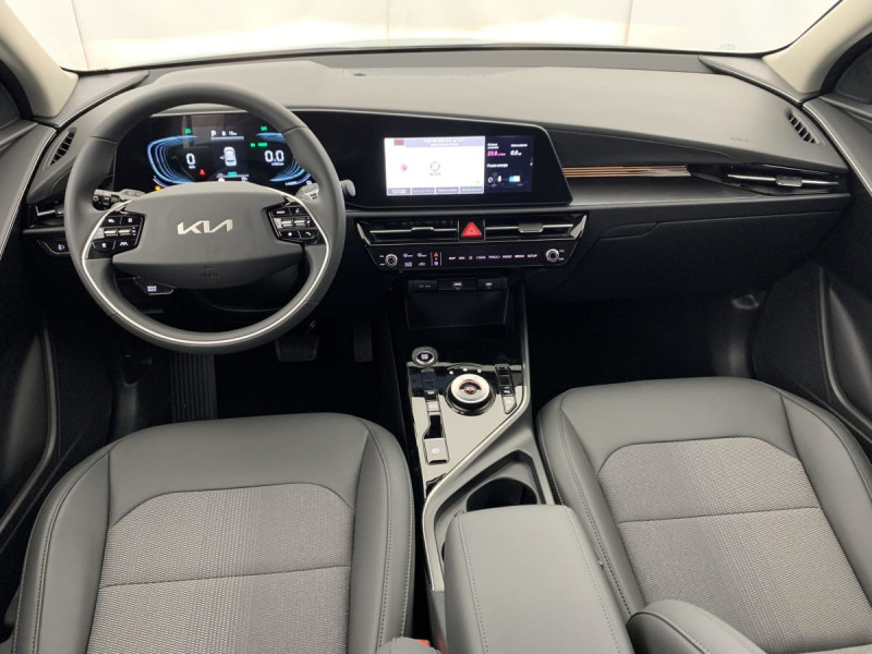 Allumage automatique des projecteurs en fonction de la luminosité / Kit de dépannage en cas de crevaison / ABS avec répartiteur électronique de freinage (EBD) / Verrouillage automatique des portes en roulant / Accoudoir central AR avec porte-gobelets intégrés / Coques de rétroviseurs couleur carrosserie / Poche aumonière au dos du siège passager AV / Témoin de niveau bas du liquide de lave-glace / Rétroviseurs extérieurs avec embase noir laqué / Rétroviseurs extérieurs avec répétiteurs de clignotant LED / Diffuseur d'air aux places AR / Caméra de recul avec lignes de guidage dynamiques / Poignées de portes intérieures finition chrome satiné / Rétroviseur intérieur électrochromatique (ECM) / Gestion intelligente des feux de route (HBA) / Alerte de vigilance du conducteur (DAW) / Accoudoir central AV avec compartiment de rangement / Bac de rangement et porte-bouteille dans les contre-portes AV / Compartiments de rangement sous le plancher de coffre / Système audio RDS, 6 HP (dont 2 tweeters), avec commandes au volant / Câble de recharge pour prise domestique / Eclairage dans le coffre / Appuis-tête AV et AR réglables en hauteur et en inclinaison (à l'AV uniquement) / Volant en matière synthétique / Connectique USB à l'AV / Assistance active à la conduite sur autoroute (HDA) / Reconnaissance des panneaux de limitation avec régulation de vitesse (ISLA) / Géolocalisation des bornes de recharge via la navigation embarquée et les services connectés Kia Connect Live / Pommeau de levier de vitesses gainé cuir / Poche aumonière au dos du siège conducteur / Système de téléphonie mains-libres Bluetooth avec reconnaissance vocale et streaming audio / Combiné d'instrumentation avec écran SuperVision 4.2" / Assistance active à la conduite dans les embouteillages (LFA) / Lève-vitres AV et AR électriques, séquentiels à l'AV / Aide au maintien dans la file (LKA) / Système de son virtuel (émet un léger son à basse vitesse afin de prévenir les piétons distraits) / Moulures de bas de portes et arches de roues contrastées noir laqué / Inserts finition carbone brut sur le tableau de bord / Accès et démarrage mains libres (Smart Key) / Rails de toit finition noir laqué / Console centrale avec éclairage d'ambiance personnalisable / Inserts finition carbone brut sur la console centrale et les contre-portes / Sélecteur de modes de conduite Eco, Confort et Sport / Chargeur embarqué triphasé de 3.3 kW / Airbags frontaux, latéraux AV, rideaux AV et AR, central AV et genoux côté conducteur / Cache-bagage en toile recyclée pliable / Spots de lecture AV et d'éclairage intérieur / Béquet AR intégré au hayon avec feux stop à LED / Connectiques USB (x2) à charge accélérée au dos des sièges AV / Connectique USB à charge accélérée sur la partie inférieure de la planche de bord / Système DAB (Digital Audio Broadcasting) système de radiodiffusion sonore numérique / Poignées de portes extérieures couleur carrosserie / Sellerie mixte tissu/matière synthétique noir fusain / Boucliers de protection AV et AR en finition chrome / Eclairage d'ambiance personnalisable / Ecran tactile 10,25" compatible Android Auto et Apple CarPlay avec système de navigation et services connectés Kia Connect Live / Palettes de modulation de la puissance de freinage régénératif au volant (en mode ECO) / Direction à assistance électrique asservie à la vitesse / Radars de parking AV/AR / Crochets de fixation dans le coffre / Pare-soleil avec miroir de courtoisie illuminé (conducteur et passager) /