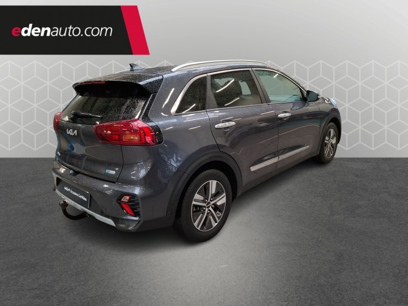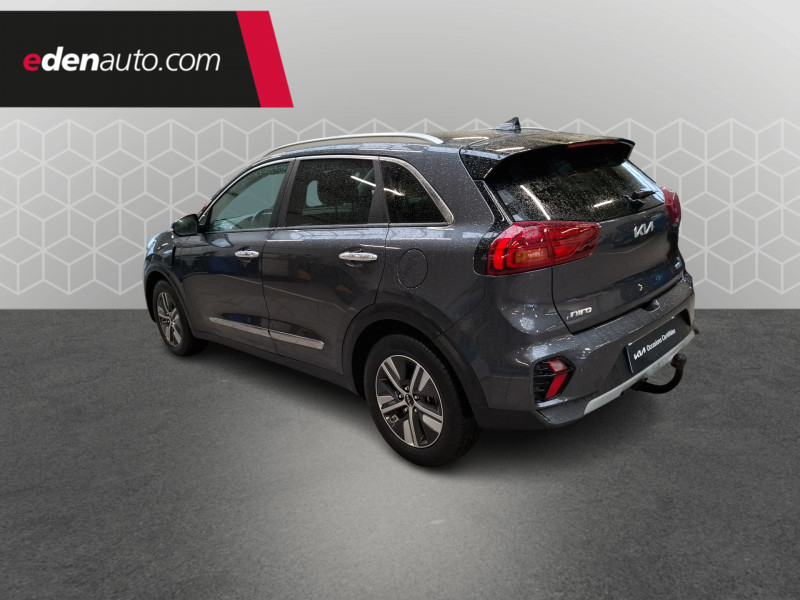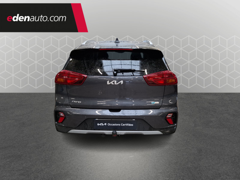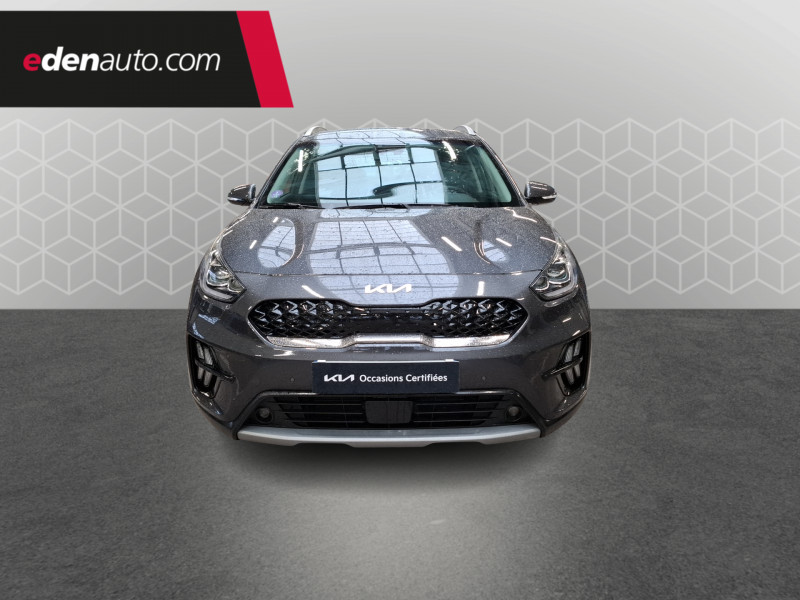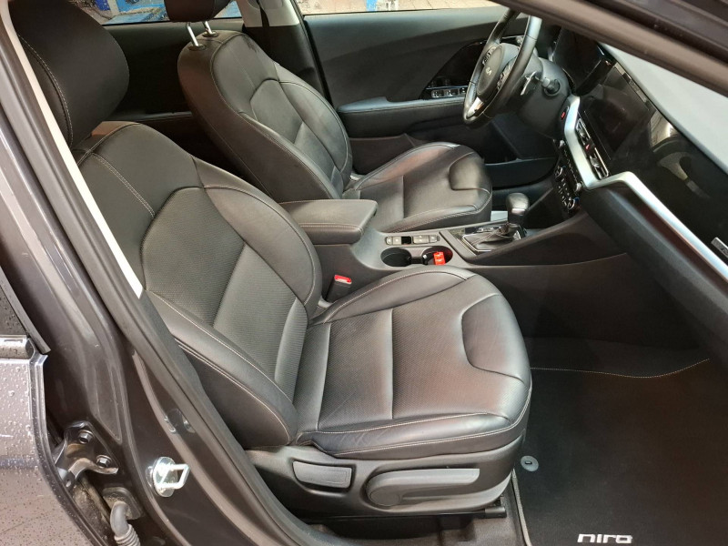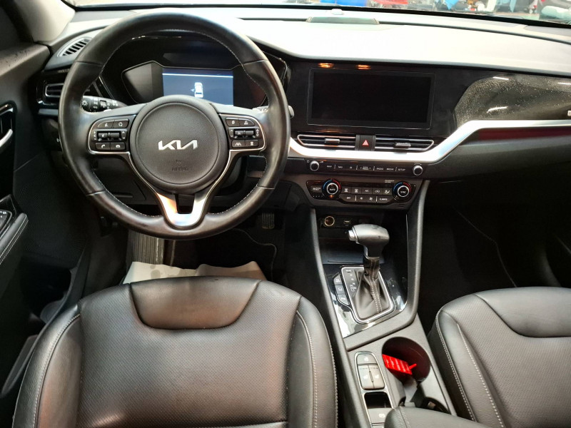 ABS avec répartiteur électronique de freinage (EBD) / Accoudoir central AR avec porte-gobelets intégrés / Accoudoir central AV avec compartiment de rangement et porte-gobelets / Aide au maintien dans la file (LKA) / Alerte de vigilance du conducteur (DAW) / Allumage automatique des projecteurs en fonction de la luminosité / Assistance active à la conduite dans les embouteillages (LFA) / Becquet AR noir laqué intégré au hayon avec feux de stop à LED / Boucliers AV et AR spécifiques avec protections teinte aluminium / Bouton "HEV" pour forcer le mode électrique / Câble de recharge pour prise 230 V / Caméra de recul avec lignes de guidage dynamiques / Compartiment range-lunettes / Compteur de tableau de bord central LCD TFT SuperVision 7" / Connectique USB / Crochets de fixation dans le coffre / Diffuseur d'air aux places AR / Ecran tactile couleur 10.25", système de navigation avec cartographie Europe et services connectés Kia LIVE offerts pendant 7 ans, compatibilité Android Auto et Apple CarPlay / Inserts noir laqué sur la console centrale, les contre-portes et le volant / Kit de dépannage en cas de crevaison / Lève-vitre passager AV électrique à fonction séquentielle et anti-pincement / Lève-vitres AV et AR électriques, séquentiel pour le conducteur / Ordinateur de bord central "SuperVision " TFT LCD 7" / Ouverture et démarrage sans clé Smart Key / Palettes au volant (modulation de la puissance de freinage régénératif en mode ECO et changements de vitesses en mode SPORT) / Pare-soleil avec miroir de courtoisie illuminé (conducteur et passager) / Poche aumonière au dos du siège passager AV / Poignées de portes extérieures avec inserts aspect chrome / Poignées de portes intérieures finition chrome / Radars de parking AV/AR / Radio MP3, 6 haut-parleurs (dont 2 tweeters), avec commandes au volant / Rails de toit finition aluminium satiné / Régulateur de couple et assistance au contre-braquage (VSM) / Rétroviseur intérieur électrochrome / Rétroviseurs extérieurs avec répétiteurs de clignotant / Rétroviseurs extérieurs couleur carrosserie / Sellerie cuir tendu et perforé / Siège conducteur à réglage électriques et lombaires / Surlignage des passages de roues en composite noir / Système d'Assistance à l'Eco-conduite ECO-DAS / Système de fixation ISOFIX sur sièges AR latéraux / Système de freinage d'urgence autonome avec détection des piétons (FCA) / Système de gestion intelligente des feux de route (HBA) / Système de téléphonie mains-libres Bluetooth avec reconnaissance vocale / Système Kia Connect - services télématiques offerts pendant 7 ans / Témoin de niveau bas du liquide de lave-glace / Verrouillage automatique des portes asservi à la vitesse / Volant chauffant / Volant et pommeau de levier de vitesses gainés cuir