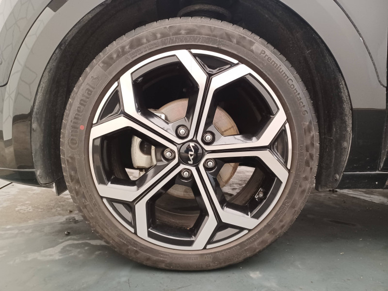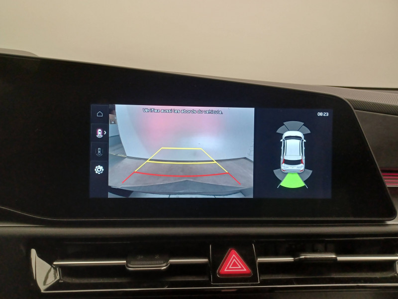ABS avec répartiteur électronique de freinage (EBD) / Accès et démarrage mains libres (Smart Key) / Accoudoir central AR avec porte-gobelets intégrés / Accoudoir central AV avec compartiment de rangement / Aide au maintien dans la file (LKA) / Airbags frontaux, latéraux AV, rideaux AV et AR, central AV et genoux côté conducteur / Alerte de vigilance du conducteur (DAW) / Allumage automatique des projecteurs en fonction de la luminosité / Appuis-tête AV et AR réglables en hauteur et en inclinaison (à l'AV uniquement) / Assistance active à la conduite dans les embouteillages (LFA) / Assistance active à la conduite sur autoroute (HDA) / Bac de rangement et porte-bouteille dans les contre-portes AV / Béquet AR intégré au hayon avec feux stop à LED / Boucliers de protection AV et AR en finition chrome / Cache-bagage en toile recyclée pliable / Caméra de recul avec lignes de guidage dynamiques / Combiné d'instrumentation 100 % digital 10.25'' / Compartiments de rangement sous le plancher de coffre / Connectiques USB (x2) à charge accélérée au dos des sièges AV / Connectique USB à charge accélérée sur la partie inférieure de la planche de bord / Connectique USB à l'AV / Console centrale avec éclairage d'ambiance personnalisable / Coques de rétroviseurs couleur carrosserie / Crochets de fixation dans le coffre / Diffuseur d'air aux places AR / Direction à assistance électrique asservie à la vitesse / Eclairage d'ambiance personnalisable / Eclairage dans le coffre / Ecran tactile 10,25" compatible Android Auto et Apple CarPlay avec système de navigation et services connectés Kia Connect Live / Gestion intelligente des feux de route (HBA) / Inserts finition carbone brut sur la console centrale et les contre-portes / Inserts finition carbone brut sur le tableau de bord / Kit de dépannage en cas de crevaison / Lève-vitres AV et AR électriques, séquentiels à l'AV / Moulures de bas de portes et arches de roues contrastées noir laqué / Pack Confort Siège conducteur à réglages électriques, siège conducteur à réglages lombaires électriques, système de chargement du smartphone par induction, hayon électrique à ouverture mains libres / Palettes de modulation de la puissance de freinage régénératif au volant (en mode ECO) / Pare-soleil avec miroir de courtoisie illuminé (conducteur et passager) / Pédalier et seuils de portes en finition aluminium / Poche aumonière au dos du siège conducteur / Poche aumonière au dos du siège passager AV / Poignées de portes extérieures couleur carrosserie / Poignées de portes intérieures finition chrome satiné / Radars de parking AV/AR / Rails de toit finition noir laqué / Reconnaissance des panneaux de limitation avec régulation de vitesse (ISLA) / Rétroviseur intérieur électrochromatique (ECM) / Rétroviseurs extérieurs avec embase noir laqué / Rétroviseurs extérieurs avec répétiteurs de clignotant LED / Sélecteur de modes de conduite Eco, Confort et Sport / Sélecteur de vitesse rotatif électronique (SBW) / Sellerie en matière synthétique / Services télématiques Kia Connect offerts pendant 7 ans / Seuils de porte finition aluminium / Siège passager AV à réglage lombaire électrique / Siège passager AV à réglages électriques / Spots de lecture AV et d'éclairage intérieur / Système audio RDS, 6 HP (dont 2 tweeters), avec commandes au volant / Système DAB (Digital Audio Broadcasting) système de radiodiffusion sonore numérique / Système de freinage d'urgence autonome avec détection des voitures/piétons/cyclistes (FCA 1.5) avec fonction croisement / Système de son virtuel (émet un léger son à basse vitesse afin de prévenir les piétons distraits) / Système de téléphonie mains-libres Bluetooth avec reconnaissance vocale et streaming audio / Systèmes Intelligents de Régénération (Smart Regen System 1.0) Modulation automatique de la puissance de freinage régénératif à la décélération / Témoin de niveau bas du liquide de lave-glace / Verrouillage automatique des portes en roulant / Volant chauffant / Volant en matière synthétique