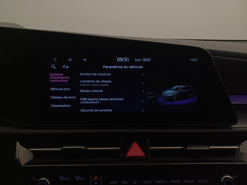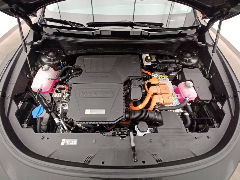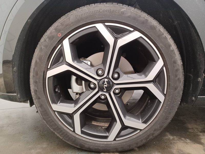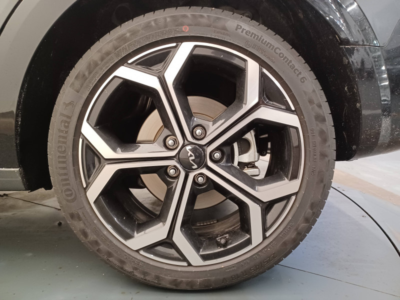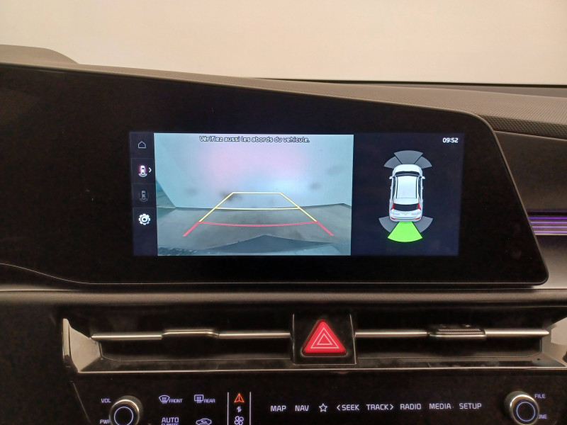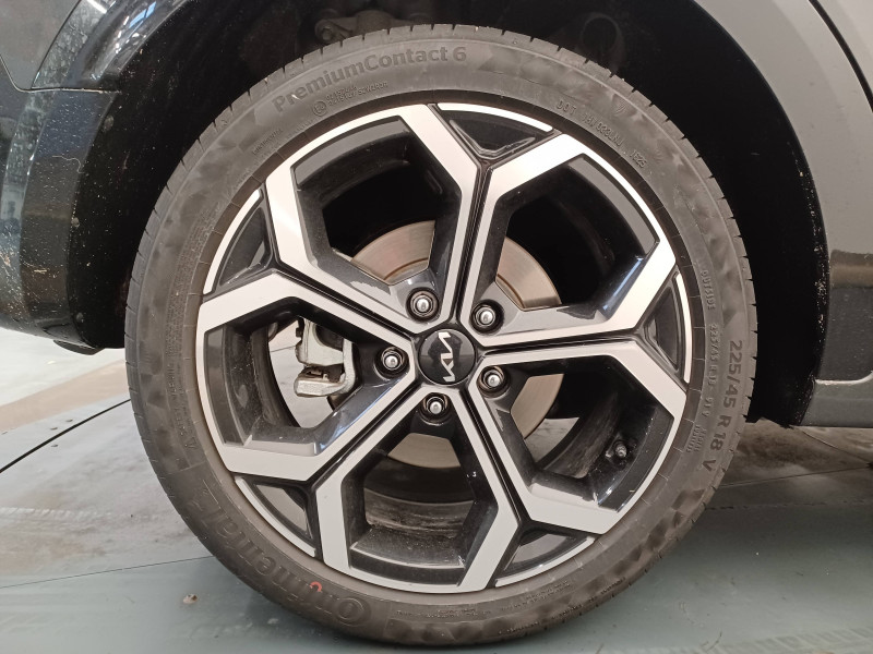 ABS avec répartiteur électronique de freinage (EBD) / Accès et démarrage mains libres (Smart Key) / Accoudoir central AR avec porte-gobelets intégrés / Accoudoir central AV avec compartiment de rangement / Aide au maintien dans la file (LKA) / Airbags frontaux, latéraux AV, rideaux AV et AR, central AV et genoux côté conducteur / Alerte de vigilance du conducteur (DAW) / Allumage automatique des projecteurs en fonction de la luminosité / Appuis-tête AV et AR réglables en hauteur et en inclinaison (à l'AV uniquement) / Assistance active à la conduite dans les embouteillages (LFA) / Assistance active à la conduite sur autoroute (HDA) / Bac de rangement et porte-bouteille dans les contre-portes AV / Béquet AR intégré au hayon avec feux stop à LED / Boucliers de protection AV et AR en finition chrome / Cache-bagage en toile recyclée pliable / Caméra de recul avec lignes de guidage dynamiques / Combiné d'instrumentation 100 % digital 10.25'' / Compartiments de rangement sous le plancher de coffre / Connectiques USB (x2) à charge accélérée au dos des sièges AV / Connectique USB à charge accélérée sur la partie inférieure de la planche de bord / Connectique USB à l'AV / Console centrale avec éclairage d'ambiance personnalisable / Coques de rétroviseurs couleur carrosserie / Crochets de fixation dans le coffre / Diffuseur d'air aux places AR / Direction à assistance électrique asservie à la vitesse / Eclairage d'ambiance personnalisable / Eclairage dans le coffre / Ecran tactile 10,25" compatible Android Auto et Apple CarPlay avec système de navigation et services connectés Kia Connect Live / Gestion intelligente des feux de route (HBA) / Inserts finition carbone brut sur la console centrale et les contre-portes / Inserts finition carbone brut sur le tableau de bord / Kit de dépannage en cas de crevaison / Lève-vitres AV et AR électriques, séquentiels à l'AV / Moulures de bas de portes et arches de roues contrastées noir laqué / Pack Confort Siège conducteur à réglages électriques, siège conducteur à réglages lombaires électriques, système de chargement du smartphone par induction, hayon électrique à ouverture mains libres / Palettes de modulation de la puissance de freinage régénératif au volant (en mode ECO) / Pare-soleil avec miroir de courtoisie illuminé (conducteur et passager) / Pédalier et seuils de portes en finition aluminium / Poche aumonière au dos du siège conducteur / Poche aumonière au dos du siège passager AV / Poignées de portes extérieures couleur carrosserie / Poignées de portes intérieures finition chrome satiné / Radars de parking AV/AR / Rails de toit finition noir laqué / Reconnaissance des panneaux de limitation avec régulation de vitesse (ISLA) / Rétroviseur intérieur électrochromatique (ECM) / Rétroviseurs extérieurs avec embase noir laqué / Rétroviseurs extérieurs avec répétiteurs de clignotant LED / Sélecteur de modes de conduite Eco, Confort et Sport / Sélecteur de vitesse rotatif électronique (SBW) / Sellerie en matière synthétique / Services télématiques Kia Connect offerts pendant 7 ans / Seuils de porte finition aluminium / Siège passager AV à réglage lombaire électrique / Siège passager AV à réglages électriques / Spots de lecture AV et d'éclairage intérieur / Système audio RDS, 6 HP (dont 2 tweeters), avec commandes au volant / Système DAB (Digital Audio Broadcasting) système de radiodiffusion sonore numérique / Système de freinage d'urgence autonome avec détection des voitures/piétons/cyclistes (FCA 1.5) avec fonction croisement / Système de son virtuel (émet un léger son à basse vitesse afin de prévenir les piétons distraits) / Système de téléphonie mains-libres Bluetooth avec reconnaissance vocale et streaming audio / Systèmes Intelligents de Régénération (Smart Regen System 1.0) Modulation automatique de la puissance de freinage régénératif à la décélération / Témoin de niveau bas du liquide de lave-glace / Verrouillage automatique des portes en roulant / Volant chauffant / Volant en matière synthétique