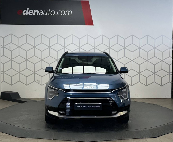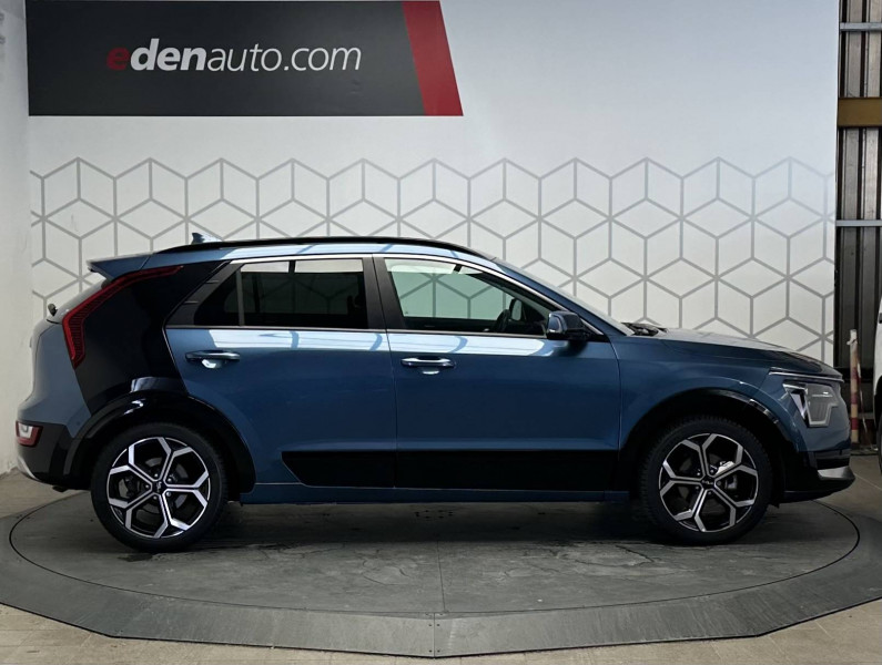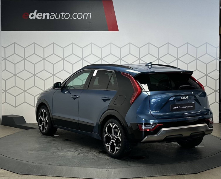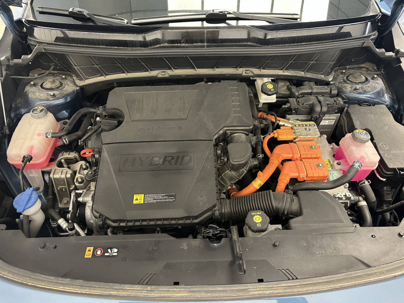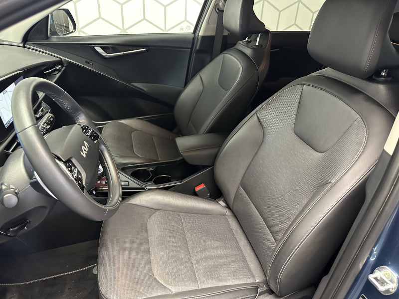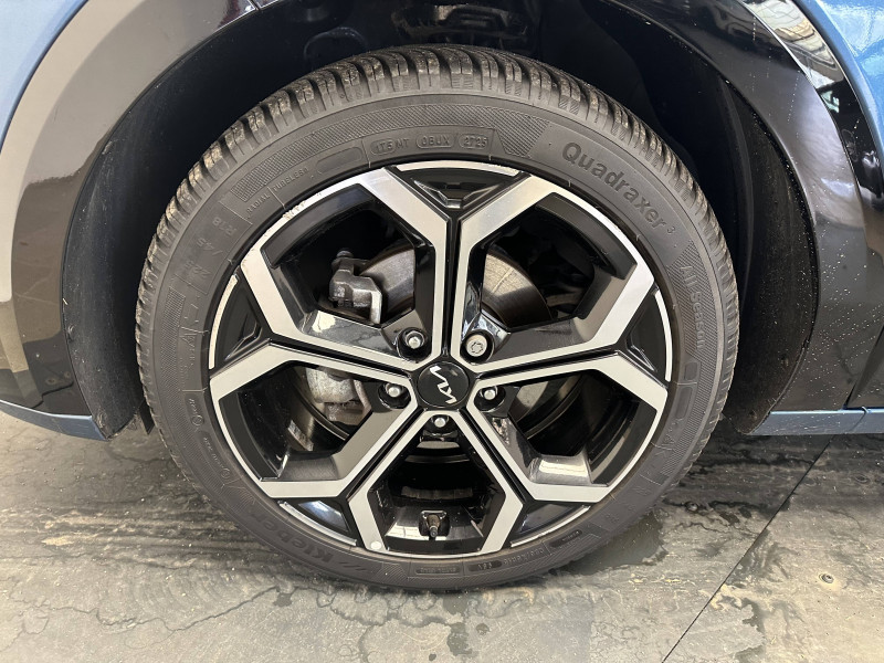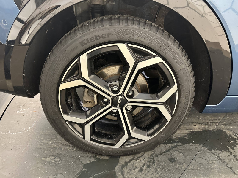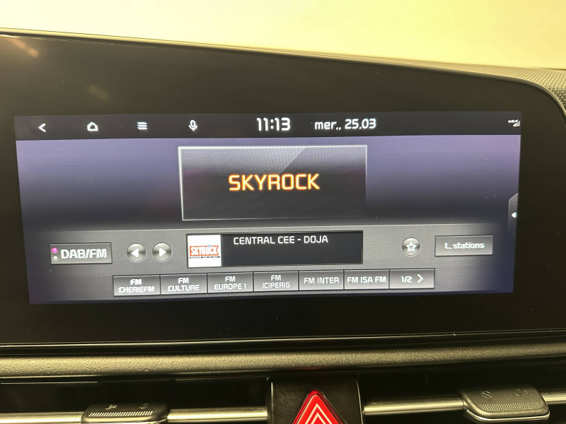 Accès et démarrage mains libres (Smart Key) / Aérateurs aux places AR / Aide au maintien dans la file (LKA) / Alerte de vigilance du conducteur (DAW) / Allumage automatique des projecteurs en fonction de la luminosité / Assistance active à la conduite dans les embouteillages (LFA) / Assistance active à la conduite sur autoroute (HDA) / Bouclier de protection finition chrome / Caméra de recul avec lignes de guidage dynamiques / Combiné d'instrumentation 100 % digital 10.25'' / Compatibilité Android Auto et Apple CarPlay / Coques de rétroviseurs couleur noir laqué / Eclairage d'ambiance personnalisable / Ecran tactile couleur 10,25'' avec compatibilité via câble USB Android Auto et Apple CarPlay / Ecran tactile d'infodivertissement 8" / Gestion intelligente des feux de route (HBA) / Hayon AR électrique à ouverture mains-libres / Inserts finition carbone brut sur le tableau de bord / Lève-vitres AV et AR électriques, séquentiels à l'AV / Moulures de bas de portes et arches de roues contrastées noir laqué / Palettes au volant (modulation puissance freinage en mode ECO et changements vitesses en mode SPORT) / Pédalier et seuils de portes en finition aluminium / Peinture Blanc Céleste / Plancher de coffre modulable / Poches aumônières au dos des sièges AV / Pommeau de levier de vitesses gainé cuir / Rails de toit finition noir laqué / Reconnaissance des panneaux de limitation avec régulation de vitesse (ISLA) / Rétroviseur intérieur électrochrome / Sélecteur de vitesse rotatif électronique (SBW) / Sièges AV à réglages lombaire électrique / Système de freinage d'urgence autonome avec détection des voitures/piétons/cyclistes (FCA 1.5) avec fonction croisement / Système de navigation avec cartographie Europe et services connectés Kia Connect Live offerts pendant 7 ans / Système de téléphonie mains-libres Bluetooth avec reconnaissance vocale et streaming audio / Volant chauffant / Volant en cuir artificiel