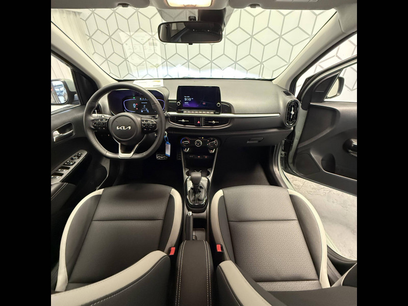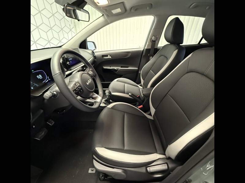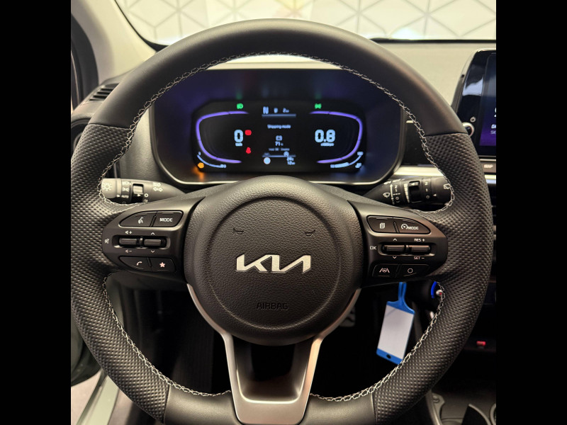 5 places / Aide au maintien dans la file (LKA) / Airbags frontaux conducteur et passager (déconnectable passager) / Alerte de présence des passagers AR / Alerte de vigilance du conducteur (DAW) / Allumage automatique des projecteurs en fonction de la luminosité / Assistance active à la conduite (LFA) / Boucliers AV/AR / Cache-bagages / Ceintures de sécurité AR à 3 points (X3) / Combiné d'instrumentation digital avec écran « Supervision » 4.2'' / Compte-tours / Connectique USB à l'AR / Connectique USB à l'AV / Console centrale avec accoudoir central et compartiment de rangement intégré / Diffuseur AR spécifique GT-line avec inserts noir laqué / Direction à assistance électrique (MDPS) / Eclairage dans le coffre / Ecran tactile 8" compatible avec Android Auto et Apple CarPlay / Feux de jour AV à LED intégrant la signature lumineuse horizontale GT-line / Gestion intelligente des feux de route (HBA) / Inserts finition chrome satiné sur la planche de bord / Inserts finition noir laqué au niveau des entourages des ouïes d'aération latérales, de la console centrale et des contre-portes AV / Kit de réparation anti-crevaison / Lève-vitres AV électriques avec descente/montée à impulsion côté conducteur / Ligne de vitres chromée / Moulures de bas de porte dédiés GT-line / Pare-soleil avec miroir de courtoisie (conducteur et passager) / Pare-soleil avec miroir de courtoisie illuminé côté conducteur / Pédalier finition aluminium / Plafonnier à l'AV / Poignées de portes extérieures couleur carrosserie / Poignées de portes intérieures finition aluminium / Pommeau de levier de vitesse en matière synthétique / Prise 12 V sur la console centrale AV / Projecteurs AV à technologie dite de "projection" / Reconnaissance des panneaux de limitation avec régulation de vitesse (ISLA) / Rétroviseurs extérieurs couleur carrosserie / Sellerie en matière synthétique noire / Services télématiques Kia Connect offerts pendant 7 ans / Système audio 6 HP dont 2 tweeters AV / Système de freinage ABS avec répartiteur électronique de freinage EBD / Système de freinage d'urgence autonome avec détection des voitures, piétons et cyclistes (FCA) / Système de gestion intelligente des feux de route (HBA) / Système de navigation avec cartographie Europe, services connectés Kia Connect Live et services télématiques Kia Connect offerts pendant 7 ans / Système de téléphonie mains-libres Bluetooth avec reconnaissance vocale et streaming audio / Système ISOFIX à 3 points d'ancrage sur sièges latéraux AR / Volant à méplat gainé matière synthétique GT-line