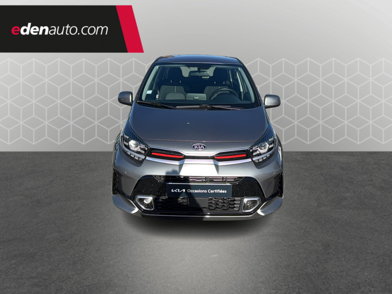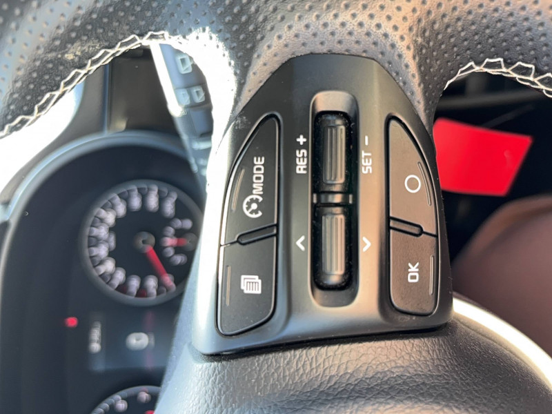 6 HP dont 2 tweeters à l'AV / ABS avec répartiteur électronique de freinage (EBD) / Accoudoir central AV coulissant avec compartiment de rangement / Airbags frontaux conducteur et passager (déconnectable passager) / Allumage automatique des projecteurs en fonction de la luminosité / Antenne de toit type "aileron de requin" / Boîte à gants avec couvercle / Boucliers AV et AR spécifiques GT Line avec inserts noir laqués / Cache-bagages / Calandre avec application noir laqué et contour finition chrome / Caméra de recul avec lignes de guidage dynamiques / Ceintures de sécurité AR à 3 points (X3) / Compte-tours / Compteurs de tableau de bord central "Supervision" TFT LCD de 4.2" / Connectique USB à l'AV / Console centrale avec accoudoir central et compartiment de rangement intégré / Diffuseur AR avec double sortie d'échappement esthétique / Direction assistée électrique (MDPS) / Eclairage dans le coffre / Inserts finition Aluminium sur le tableau de bord / Inserts noir laqué au niveau des entourages des ouïes d'aération latérales, du tableau de bord et de la console centrale / Inserts rouges (ou gris selon couleur de carrosserie) : calandre, bas de caisse et diffuseur AR / Jupes latérales spécifiques GT Line / Kit de dépannage en cas de crevaison / Lève-vitre AV avec descente/montée à impulsion côté conducteur / Ligne de vitre chromée / Pare-soleil avec miroir de courtoisie (conducteur et passager) / Pare-soleil avec miroir de courtoisie illuminé côté conducteur / Pédalier finition aluminium / Plafonnier à l'AV / Poche aumonière au dos du siège passager AV / Poignées de portes et rétroviseurs extérieurs couleur carrosserie / Poignées de portes intérieures finition aluminium / Pommeau de levier de vitesse cuir / Prise 12 V sur la console centrale AV / Projecteurs AV à technologie dite de "projection" / Rétroviseurs extérieurs couleur carrosserie / Sellerie tissu noir "Comet" / Système audio avec écran tactile 8" compatible Android Auto et Apple CarPlay, commandes au volant / Système de téléphonie mains-libres Bluetooth avec reconnaissance vocale et streaming audio / Système ISOFIX à 3 points d'ancrage sur sièges AR / Volant à méplat cuir tendu et perforé