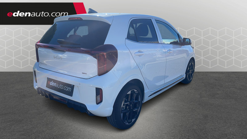 5 places / Aide au maintien dans la file (LKA) / Airbags frontaux conducteur et passager (déconnectable passager) / Alerte de présence des passagers AR / Alerte de vigilance du conducteur (DAW) / Allumage automatique des projecteurs en fonction de la luminosité / Assistance active à la conduite (LFA) / Boîte de vitesse robotisée / Boucliers AV/AR / Cache-bagages / Ceintures de sécurité AR à 3 points (X3) / Combiné d'instrumentation digital avec écran « Supervision » 4.2'' / Compte-tours / Connectique USB à l'AR / Connectique USB à l'AV / Console centrale AV avec double compartiment de rangement / Console centrale avec accoudoir central et compartiment de rangement intégré / Contrôle de traction (TCS) / Diffuseur AR spécifique GT-line avec inserts noir laqué / Direction à assistance électrique (MDPS) / Eclairage dans le coffre / Ecran tactile 8" compatible avec Android Auto et Apple CarPlay / Feux de jour AV à LED intégrant la signature lumineuse horizontale GT-line / Inserts finition chrome satiné sur la planche de bord / Inserts finition noir laqué au niveau des entourages des ouïes d'aération latérales, de la console centrale et des contre-portes AV / Kit de réparation anti-crevaison / Lève-vitres AV électriques avec descente/montée à impulsion côté conducteur / Ligne de vitres chromée / Moulures de bas de porte dédiés GT-line / Pare-soleil avec miroir de courtoisie (conducteur et passager) / Pare-soleil avec miroir de courtoisie illuminé côté conducteur / Pédalier finition aluminium / Plafonnier à l'AV / Poche aumônière au dos du siège conducteur et du passager / Poignées de portes extérieures couleur carrosserie / Poignées de portes intérieures finition aluminium / Pommeau de levier de vitesse en matière synthétique / Prise 12 V sur la console centrale AV / Projecteurs AV à technologie dite de "projection" / Reconnaissance des panneaux de limitation avec régulation de vitesse (ISLA) / Rétroviseurs extérieurs couleur carrosserie / Sellerie en matière synthétique noire / Services télématiques Kia Connect offerts pendant 7 ans / Système audio 6 HP dont 2 tweeters AV / Système de freinage ABS avec répartiteur électronique de freinage EBD / Système de freinage d'urgence autonome avec détection des voitures, piétons et cyclistes (FCA) / Système de gestion intelligente des feux de route (HBA) / Système de navigation avec cartographie Europe, services connectés Kia Connect Live et services télématiques Kia Connect offerts pendant 7 ans / Système de téléphonie mains-libres Bluetooth avec reconnaissance vocale et streaming audio / Système ISOFIX à 3 points d'ancrage sur sièges latéraux AR / Volant à méplat gainé matière synthétique GT-line