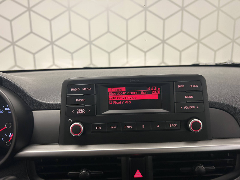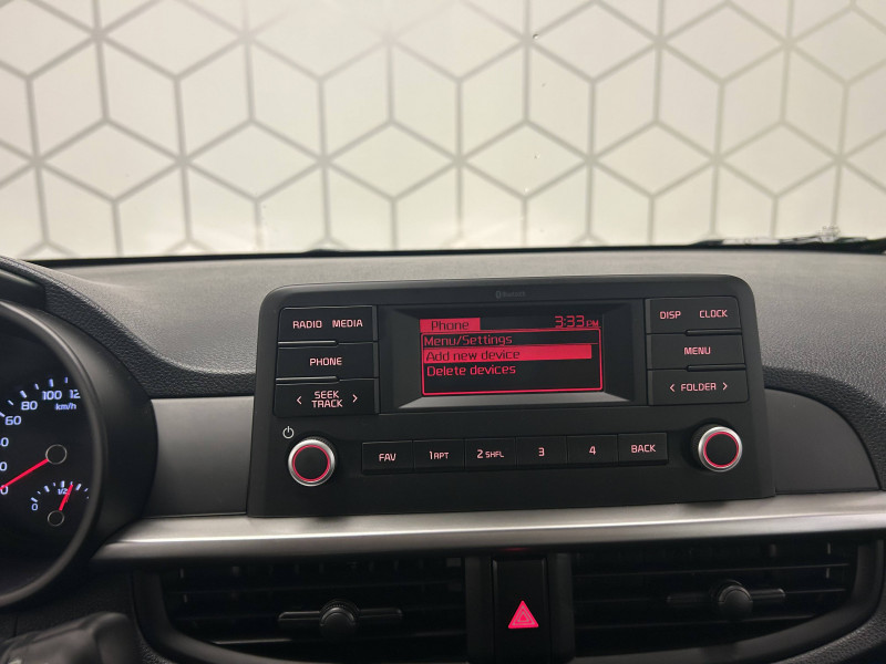 5 places / ABS avec répartiteur électronique de freinage (EBD) / Airbags frontaux conducteur et passager (déconnectable passager) / Allumage automatique des projecteurs en fonction de la luminosité / Boîte à gants avec couvercle / Boucliers AV et AR couleur carrosserie / Cache-bagages / Ceintures de sécurité AR à 3 points (X3) / Compte-tours / Compteur de tableau de bord rétro-éclairé avec écran LCD 2,6'' / Connectique USB à l'AV / Console centrale AV avec double compartiment de rangement / Contour de calandre aspect aluminium / Direction assistée électrique (MDPS) / Eclairage dans le coffre / Inserts finition Aluminium sur le tableau de bord / Jantes en acier 14" avec enjoliveurs / Kit de dépannage en cas de crevaison / Lève-vitres AV électriques avec descente/montée à impulsion côté conducteur / Pare-soleil avec miroir de courtoisie (conducteur et passager) / Plafonnier à l'AV / Poche aumonière au dos du siège passager AV / Poignées de portes extérieures couleur carrosserie / Poignées de portes intérieures de couleur noire / Prise 12 V sur la console centrale AV / Rétroviseurs extérieurs couleur carrosserie / Sellerie tissu noir "Stardust" / Système audio 4HP avec écran monochrome 3,8" avec commandes au volant / Système de téléphonie mains-libres Bluetooth avec fonction streaming audio / Système ISOFIX à 3 points d'ancrage sur sièges latéraux AR / Système Stop & Go de coupure du moteur à l'arrêt (ISG)