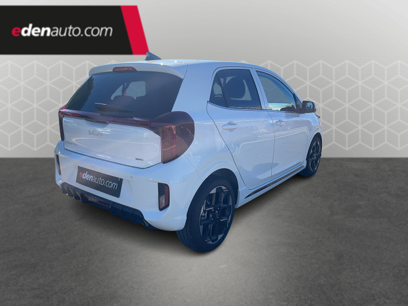 5 places / Aide au maintien dans la file (LKA) / Airbags frontaux conducteur et passager (déconnectable passager) / Alerte de présence des passagers AR / Alerte de vigilance du conducteur (DAW) / Allumage automatique des projecteurs en fonction de la luminosité / Assistance active à la conduite (LFA) / Boîte de vitesse robotisée / Boucliers AV/AR / Cache-bagages / Ceintures de sécurité AR à 3 points (X3) / Ceintures de sécurité AV à prétensionneurs et limiteurs d'effort / Ceintures de sécurité AV réglables en hauteur / Combiné d'instrumentation digital avec écran « Supervision » 4.2'' / Compte-tours / Connectique USB à l'AR / Connectique USB à l'AV / Console centrale AV avec double compartiment de rangement / Console centrale avec accoudoir central et compartiment de rangement intégré / Contrôle de stabilité en courbe (TVBB) / Contrôle de stabilité en ligne droite (SLS) / Contrôle de traction (TCS) / Diffuseur AR spécifique GT-line avec inserts noir laqué / Direction à assistance électrique (MDPS) / Eclairage dans le coffre / Ecran tactile 8 compatible avec Android Auto et Apple CarPlay / Feux de jour AV à LED intégrant la signature lumineuse horizontale GT-line / Inserts finition chrome satiné sur la planche de bord / Inserts finition noir laqué au niveau des entourages des ouïes d'aération latérales / de la console centrale et des contre-portes AV / Kit de réparation anti-crevaison / Lève-vitres AV électriques avec descente/montée à impulsion côté conducteur / Ligne de vitres chromée / Moulures de bas de porte dédiés GT-line / Accès et démarrage sans clé « Smart-Key » / Système de chargement du Smartphone par induction / Pare-soleil avec miroir de courtoisie (conducteur et passager) / Pare-soleil avec miroir de courtoisie illuminé côté conducteur / Pédalier finition aluminium / Plafonnier à l'AV / Poche aumônière au dos du siège conducteur et du passager / Poignées de portes extérieures couleur carrosserie / Poignées de portes intérieures finition aluminium / Pommeau de levier de vitesse en matière synthétique / Prise 12 V sur la console centrale AV / Projecteurs AV à technologie dite de projection / Reconnaissance des panneaux de limitation avec régulation de vitesse (ISLA) / Rétroviseurs extérieurs couleur carrosserie / Rétroviseurs extérieurs électriques et chauffants / Sellerie en matière synthétique noire / Services télématiques Kia Connect offerts pendant 7 ans / Système audio 6 HP dont 2 tweeters AV / Système de freinage ABS avec répartiteur électronique de freinage EBD / Système de freinage d'urgence autonome avec détection des voitures / piétons et cyclistes (FCA) / Système de gestion intelligente des feux de route (HBA) / Système de navigation avec cartographie Europe / services connectés Kia Connect Live et services télématiques Kia Connect offerts pendant 7 ans / Système de téléphonie mains-libres Bluetooth avec reconnaissance vocale et streaming audio / Système ISOFIX à 3 points d'ancrage sur sièges latéraux AR / Vitres et lunette AR surteintées / Volant à méplat gainé matière synthétique GT-line