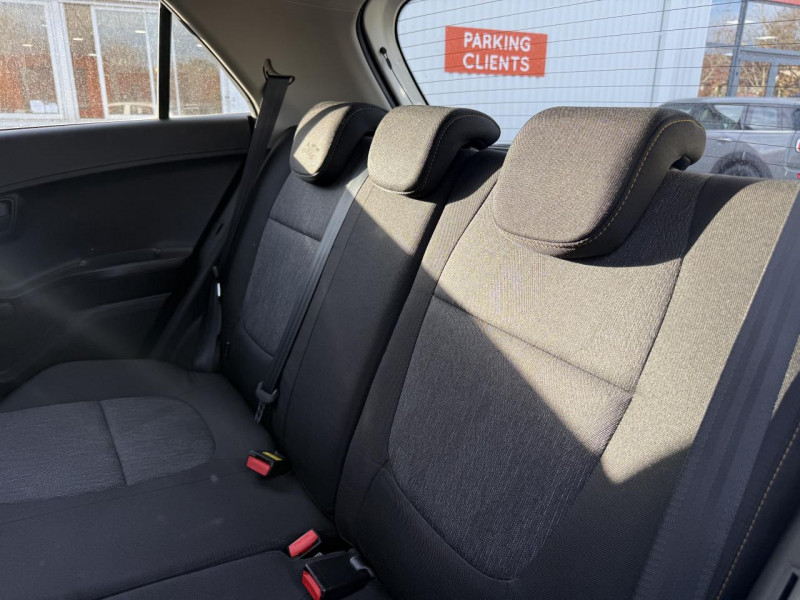 passager) / Ambiance intérieure "Carbon Black" / Assistance au contre-braquage (VSM) / Boucliers avant et arrière couleur carrosserie / Cache-bagages / Ceintures de sécurité arrière 3 points (X3) / Compte-tours / Direction à assistance électrique (MDPS) / Eclairage dans le coffre / Essuie-glaces avant à intermittence / Essuie-vitres arrière avec lave-glace / Freinage ABS / Indicateur de changement de rapport / Jantes acier 14" avec enjoliveurs / Kit de dépannage en cas de crevaison / Ouverture de la trappe à essence de lintérieur du véhicule / Pare-soleil avec miroirs de courtoisie conducteur et passager / Plafonnier à lavant / Porte gobelets sur console centrale / Prise 12 volts sur la console centrale avant / Prise auxiliaire AUX / USB / Rétroviseur intérieur jour et nuit / Rétroviseurs extérieurs couleur carrosserie / Système de téléphonie mains libres Bluetooth avec commandes au