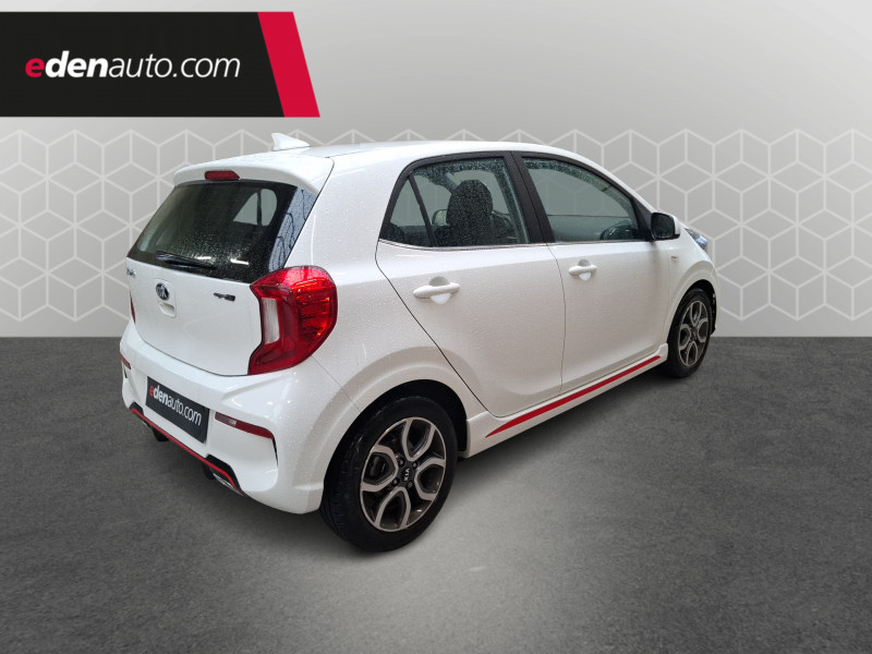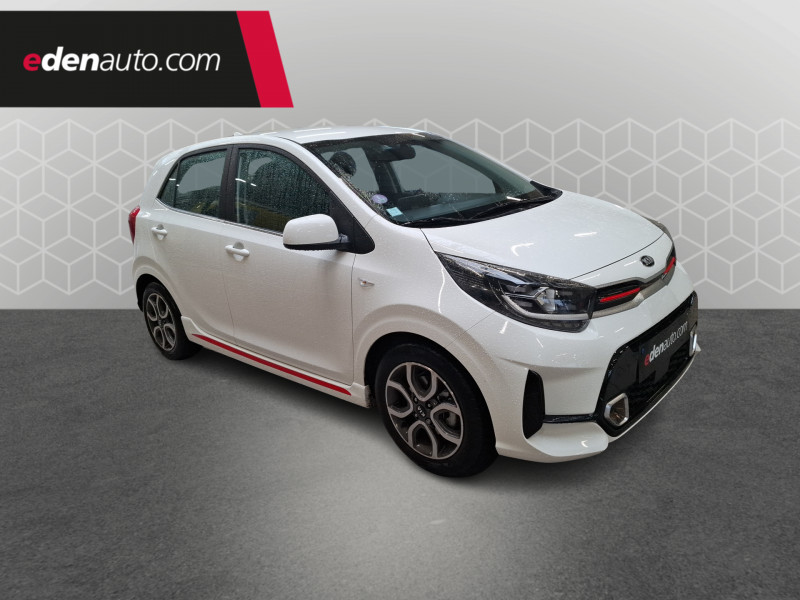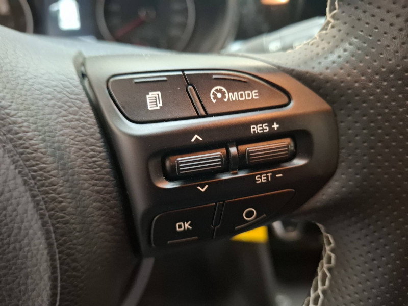 ABS avec répartiteur électronique de freinage (EBD) / Airbags frontaux conducteur et passager (déconnectable passager) / Allumage automatique des projecteurs en fonction de la luminosité / Antenne de toit type "aileron de requin" / Boîte à gants avec couvercle / Boucliers AV et AR spécifiques GT Line avec inserts noir laqués / Cache-bagages / Calandre avec application noir laqué et contour finition chrome / Caméra de recul avec lignes de guidage dynamiques / Ceintures de sécurité AR à 3 points (X3) / Combiné d'instrumentation avec écran "Supervision" 4.2'' / Compte-tours / Connectique USB à l'AV / Console centrale avec accoudoir central coulissant et compartiment de rangement intégré / Direction assistée électrique (MDPS) / Double sortie d'échappement esthétique / Eclairage dans le coffre / Ecran tactile 8'' compatible Android Auto et Apple CarPlay / Inserts finition Aluminium sur le tableau de bord / Inserts noir laqué au niveau des ouïes d'aération latérales / Inserts rouges (ou gris selon couleur de carrosserie) : calandre, bas de caisse et diffuseur AR / Jupes latérales spécifiques GT Line / Kit de dépannage en cas de crevaison / Lève-vitres AV électriques avec descente/montée à impulsion côté conducteur / Ligne de vitre chromée / Pare-soleil avec miroir de courtoisie (conducteur et passager) / Pare-soleil avec miroir de courtoisie illuminé côté conducteur / Pédalier finition aluminium / Plafonnier à l'AV / Poche aumonière au dos du siège passager AV / Poignées de portes extérieures couleur carrosserie / Poignées de portes intérieures finition aluminium / Pommeau de levier de vitesses gainé cuir / Prise 12 V sur la console centrale AV / Projecteurs AV à technologie dite de "projection" / Rétroviseurs extérieurs couleur carrosserie / Sellerie tissu noir "Comet" / Système audio 6 HP dont 2 tweeters AV / Système de téléphonie mains-libres Bluetooth avec reconnaissance vocale et streaming audio / Système ISOFIX à 3 points d'ancrage sur sièges AR / Système Stop & Go de coupure du moteur à l'arrêt (ISG) / Volant à méplat cuir tendu et perforé
