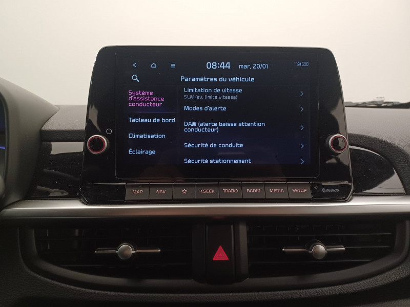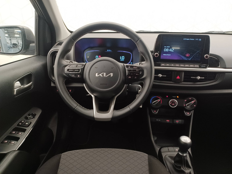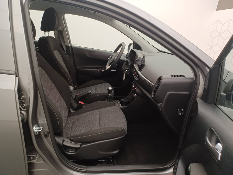 5 places / Aide au maintien dans la file (LKA) / Airbags frontaux conducteur et passager (déconnectable passager) / Alerte de présence des passagers AR / Alerte de vigilance du conducteur (DAW) / Allumage automatique des projecteurs en fonction de la luminosité / Assistance active à la conduite (LFA) / Cache-bagages / Ceintures de sécurité AR à 3 points (X3) / Combiné d'instrumentation digital avec écran « Supervision » 4.2'' / Compte-tours / Connectique USB à l'AV / Console centrale AV avec double compartiment de rangement / Direction à assistance électrique (MDPS) / Eclairage dans le coffre / Ecran tactile 8" compatible avec Android Auto et Apple CarPlay / Gestion intelligente des feux de route (HBA) / Inserts finition aluminium sur la planche de bord / Jantes en acier 14" avec enjoliveurs / Kit de réparation anti-crevaison / Lève-vitres AV électriques avec descente/montée à impulsion côté conducteur / Pare-soleil avec miroir de courtoisie (conducteur et passager) / Plafonnier à l'AV / Poignées de portes extérieures couleur carrosserie / Poignées de portes intérieures finition aluminium / Pommeau de levier de vitesses gainé cuir / Prise 12 V sur la console centrale AV / Reconnaissance des panneaux de limitation avec régulation de vitesse (ISLA) / Rétroviseurs extérieurs couleur carrosserie / Services télématiques Kia Connect offerts pendant 7 ans / Système audio 6 HP dont 2 tweeters AV / Système de freinage ABS avec répartiteur électronique de freinage EBD / Système de freinage d'urgence autonome avec détection des voitures, piétons et cyclistes (FCA) / Système de gestion intelligente des feux de route (HBA) / Système de navigation avec cartographie Europe, services connectés Kia Connect Live et services télématiques Kia Connect offerts pendant 7 ans / Système de téléphonie mains-libres Bluetooth avec reconnaissance vocale et streaming audio / Système ISOFIX à 3 points d'ancrage sur sièges latéraux AR / Volant en matière synthétique
