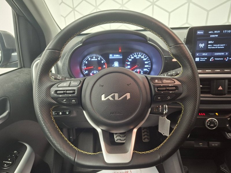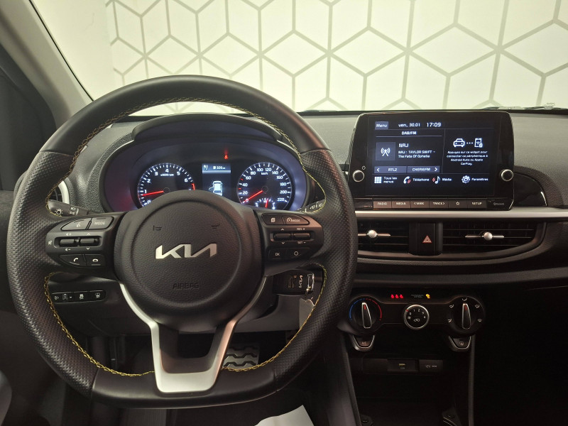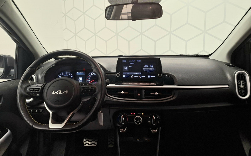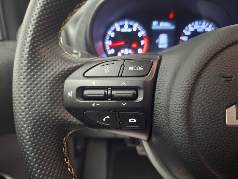 5 places / 6 HP dont 2 tweeters à l'AV / Allumage automatique des projecteurs en fonction de la luminosité / Badge X Line / Boucliers AV/AR X Line / Calandre spécifique X Line / Caméra de recul avec lignes de guidage dynamiques / Carrosserie X Line / Compteurs de tableau de bord central "Supervision" TFT LCD de 4.2" / Connectique USB à l'AV / Console centrale avec accoudoir central coulissant et compartiment de rangement intégré / Diffuseur AR avec double sortie d'échappement esthétique / Grille de radiateur et protections de bouclier X Line / Inserts gris au niveau des ouïes d'aération latérales / Inserts gris avec sérigraphies Vert Lemon sur les contreportes AV / Kit de dépannage en cas de crevaison / Ligne de vitre chromée / Nouveau logo Kia sur jantes, hayon, volant et face AV / Pare-soleil avec miroir de courtoisie illuminé côté conducteur / Pédalier finition aluminium / Poignées de portes extérieures couleur carrosserie / Pommeau de levier de vitesses gainé cuir / Projecteurs AV à technologie dite de "projection" / Protections additionnelles de carrosserie en composite noir et garde au sol rehaussée de 15 mm. / Protections de bouclier AV et AR teinte aluminium / Sellerie cuir de synthèse noir avec inserts gris et surpiqûres Vert Lemon / Système audio avec écran tactile 8" compatible Android Auto et Apple CarPlay / Système de téléphonie mains-libres Bluetooth avec reconnaissance vocale et streaming audio / Système Stop & Go de coupure du moteur à l'arrêt (ISG) / Volant à méplat gainé cuir