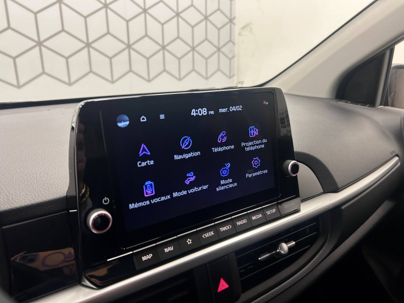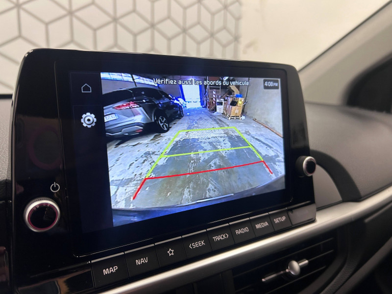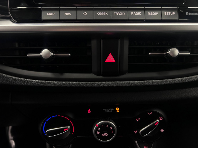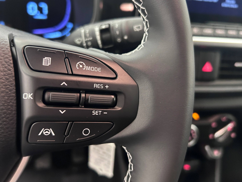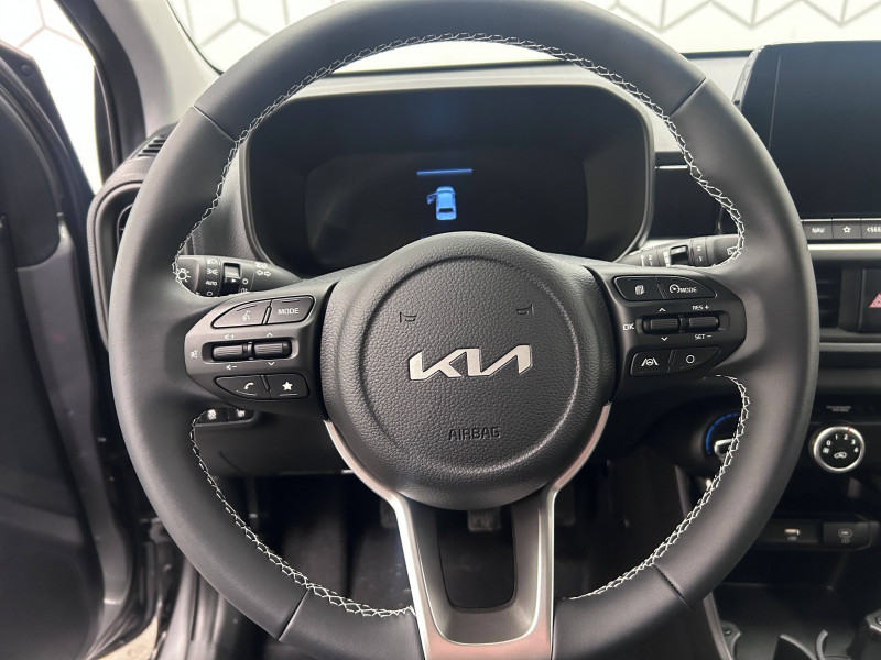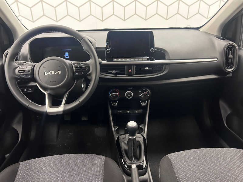 Aide au maintien dans la file (LKA) / Airbags frontaux conducteur et passager (déconnectable passager) / Alerte de présence des passagers AR / Alerte de vigilance du conducteur (DAW) / Allumage automatique des projecteurs en fonction de la luminosité / Assistance active à la conduite dans les embouteillages (LFA) / Boîte de vitesse manuelle 5 / Cache-bagages / Ceintures de sécurité AR à 3 points (X3) / Combiné d'instrumentation digital avec écran « Supervision » 4.2'' / Compte-tours / Configuration 5 places / Connectique USB à l'AV / Console centrale AV avec double compartiment de rangement / Contrôle de traction (TCS) / Direction à assistance électrique (MDPS) / Eclairage dans le coffre / Ecran tactile 8" compatible avec Android Auto et Apple CarPlay / Inserts finition aluminium sur la planche de bord / Jantes en acier 14" avec enjoliveurs / Kit de dépannage en cas de crevaison / Lève-vitres AV électriques avec descente/montée à impulsion côté conducteur / Pare-soleil avec miroir de courtoisie (conducteur et passager) / Plafonnier à l'AV / Poche aumonière au dos du siège conducteur / Poignées de portes extérieures couleur carrosserie / Poignées de portes intérieures finition aluminium / Pommeau de levier de vitesses gainé cuir / Prise 12 V sur la console centrale AV / Reconnaissance des panneaux de limitation avec régulation de vitesse (ISLA) / Rétroviseurs extérieurs couleur carrosserie / Services télématiques Kia Connect offerts pendant 7 ans / Système audio 6 HP dont 2 tweeters AV / Système de freinage ABS avec répartiteur électronique de freinage EBD / Système de freinage d'urgence autonome avec détection des voitures, piétons et cyclistes (FCA) / Système de gestion intelligente des feux de route (HBA) / Système de navigation avec cartographie Europe, services connectés Kia Connect Live et services télématiques Kia Connect offerts pendant 7 ans / Système de téléphonie mains-libres Bluetooth avec reconnaissance vocale et streaming audio / Système ISOFIX à 3 points d'ancrage sur sièges latéraux AR / Volant en matière synthétique