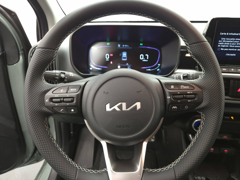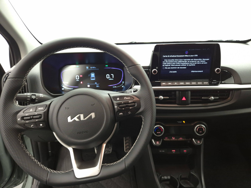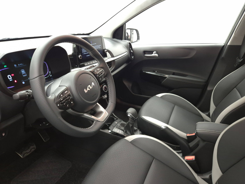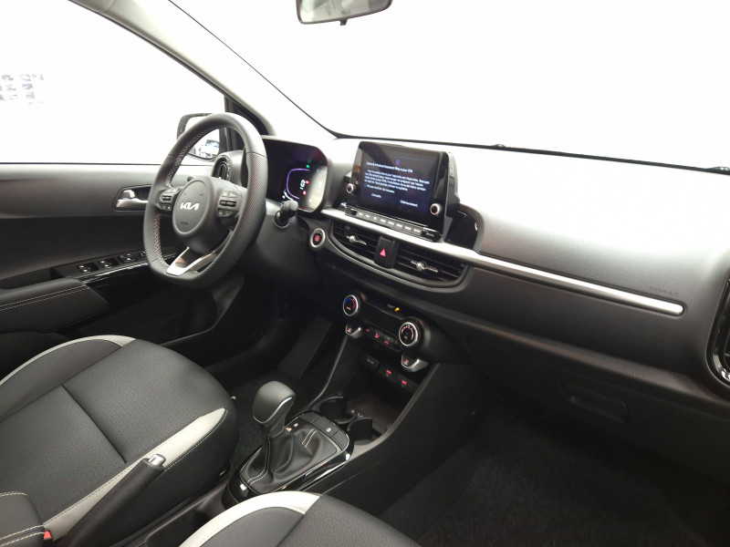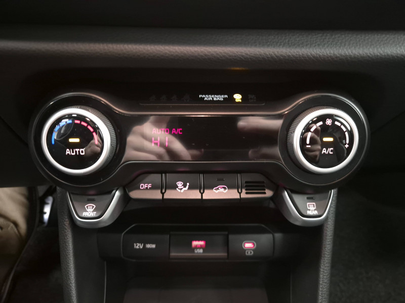 5 places / Aide au maintien dans la file (LKA) / Airbags frontaux conducteur et passager (déconnectable passager) / Alerte de présence des passagers AR / Alerte de vigilance du conducteur (DAW) / Allumage automatique des projecteurs en fonction de la luminosité / Assistance active à la conduite (LFA) / Boîte de vitesse robotisée / Boucliers AV/AR / Cache-bagages / Ceintures de sécurité AR à 3 points (X3) / Combiné d'instrumentation digital avec écran « Supervision » 4.2'' / Compte-tours / Connectique USB à l'AR / Connectique USB à l'AV / Console centrale AV avec double compartiment de rangement / Console centrale avec accoudoir central et compartiment de rangement intégré / Contrôle de traction (TCS) / Diffuseur AR spécifique GT-line avec inserts noir laqué / Direction à assistance électrique (MDPS) / Eclairage dans le coffre / Ecran tactile 8" compatible avec Android Auto et Apple CarPlay / Feux de jour AV à LED intégrant la signature lumineuse horizontale GT-line / Inserts finition chrome satiné sur la planche de bord / Inserts finition noir laqué au niveau des entourages des ouïes d'aération latérales, de la console centrale et des contre-portes AV / Kit de réparation anti-crevaison / Lève-vitres AV électriques avec descente/montée à impulsion côté conducteur / Ligne de vitres chromée / Moulures de bas de porte dédiés GT-line / Pare-soleil avec miroir de courtoisie (conducteur et passager) / Pare-soleil avec miroir de courtoisie illuminé côté conducteur / Pédalier finition aluminium / Plafonnier à l'AV / Poche aumônière au dos du siège conducteur et du passager / Poignées de portes extérieures couleur carrosserie / Poignées de portes intérieures finition aluminium / Pommeau de levier de vitesse en matière synthétique / Prise 12 V sur la console centrale AV / Projecteurs AV à technologie dite de "projection" / Reconnaissance des panneaux de limitation avec régulation de vitesse (ISLA) / Rétroviseurs extérieurs couleur carrosserie / Sellerie en matière synthétique noire / Services télématiques Kia Connect offerts pendant 7 ans / Système audio 6 HP dont 2 tweeters AV / Système de freinage ABS avec répartiteur électronique de freinage EBD / Système de freinage d'urgence autonome avec détection des voitures, piétons et cyclistes (FCA) / Système de gestion intelligente des feux de route (HBA) / Système de navigation avec cartographie Europe, services connectés Kia Connect Live et services télématiques Kia Connect offerts pendant 7 ans / Système de téléphonie mains-libres Bluetooth avec reconnaissance vocale et streaming audio / Système ISOFIX à 3 points d'ancrage sur sièges latéraux AR / Volant à méplat gainé matière synthétique GT-line