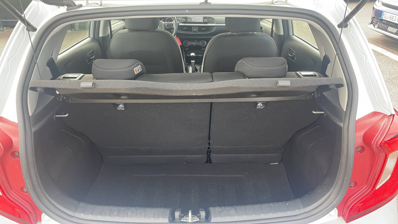 4 places / 6 HP dont 2 tweeters à l'AV / Allumage automatique des projecteurs en fonction de la luminosité / Boucliers AV et AR couleur carrosserie / Caméra de recul avec lignes de guidage dynamiques / Connectique audio AUX et USB / Direction assistée électrique (MDPS) / Ecran tactile couleur 7" avec comptabilité Android Auto et Apple Carplay / Kit de dépannage en cas de crevaison / Lève-vitres électriques AV séquentiel côté conducteur / Pare-soleil avec miroir de courtoisie (conducteur et passager) / Poignées de portes et rétroviseurs extérieurs couleur carrosserie / Sellerie tissu noir "Stardust" / Système audio Radio/MP3 avec et commandes au volant / Système de fixation ISOFIX sur sièges AR latéraux / Système de téléphonie mains-libres Bluetooth avec reconnaissance vocale et streaming audio / Volant et pommeau de levier de vitesses gainés cuir