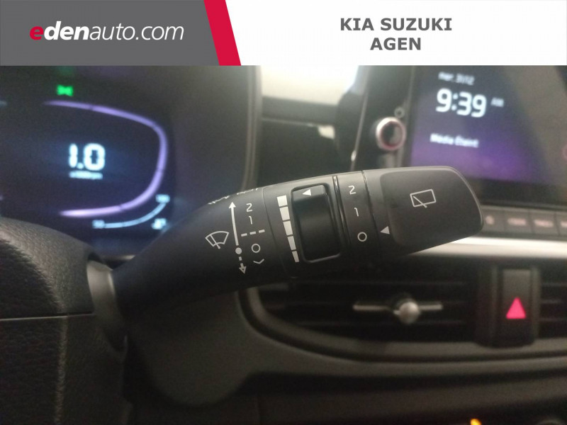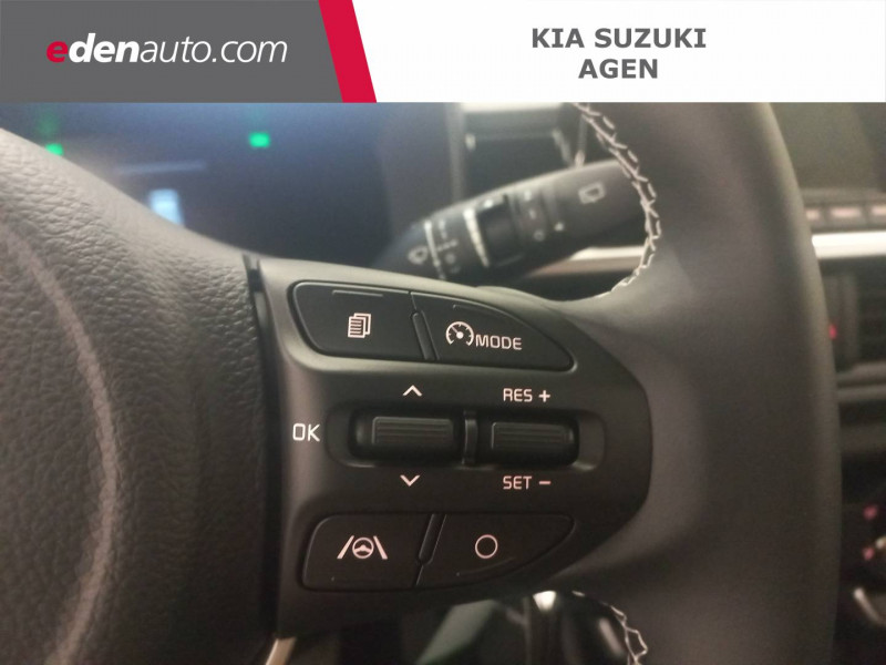 Aide au maintien dans la file (LKA) / Airbags frontaux conducteur et passager (déconnectable passager) / Alerte de présence des passagers AR / Alerte de vigilance du conducteur (DAW) / Allumage automatique des projecteurs en fonction de la luminosité / Assistance active à la conduite dans les embouteillages (LFA) / Boîte automatisée 5 vitesse / Cache-bagages / Ceintures de sécurité AR à 3 points (X3) / Combiné d'instrumentation digital avec écran « Supervision » 4.2'' / Compte-tours / Configuration 5 places / Connectique USB à l'AV / Console centrale AV avec double compartiment de rangement / Contrôle de traction (TCS) / Direction à assistance électrique (MDPS) / Eclairage dans le coffre / Ecran tactile 8" compatible avec Android Auto et Apple CarPlay / Inserts finition aluminium sur la planche de bord / Jantes en acier 14" avec enjoliveurs / Kit de dépannage en cas de crevaison / Lève-vitres AV électriques avec descente/montée à impulsion côté conducteur / Pare-soleil avec miroir de courtoisie (conducteur et passager) / Plafonnier à l'AV / Poche aumonière au dos du siège conducteur / Poignées de portes extérieures couleur carrosserie / Poignées de portes intérieures finition aluminium / Pommeau de levier de vitesse en matière synthétique / Prise 12 V sur la console centrale AV / Reconnaissance des panneaux de limitation avec régulation de vitesse (ISLA) / Rétroviseurs extérieurs couleur carrosserie / Services télématiques Kia Connect offerts pendant 7 ans / Système audio 6 HP dont 2 tweeters AV / Système de freinage ABS avec répartiteur électronique de freinage EBD / Système de freinage d'urgence autonome avec détection des voitures, piétons et cyclistes (FCA) / Système de gestion intelligente des feux de route (HBA) / Système de navigation avec cartographie Europe, services connectés Kia Connect Live et services télématiques Kia Connect offerts pendant 7 ans / Système de téléphonie mains-libres Bluetooth avec reconnaissance vocale et streaming audio / Système ISOFIX à 3 points d'ancrage sur sièges latéraux AR / Volant en matière synthétique