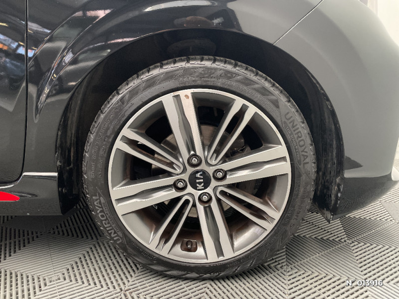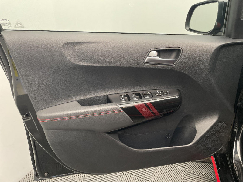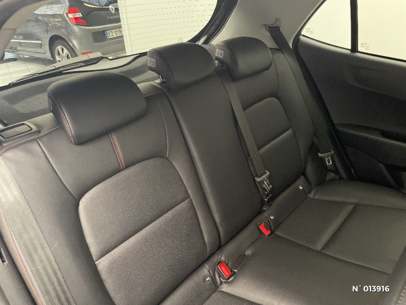 Compte-tours / Eclairage dans le coffre / Poignées de portes extérieures couleur carrosserie / Rétroviseurs extérieurs couleur carrosserie / Cache-bagages / Airbags frontaux conducteur et passager (déconnectable passager) / Système ISOFIX à 3 points d'ancrage sur sièges AR / Volant et pommeau de levier de vitesses gainés cuir / Kit de réparation anti-crevaison / Pare-soleil avec miroirs de courtoisie (conducteur et passager) / Freinage ABS avec répartiteur électronique de freinage (EBD) / Boucliers AV et AR de couleur carrosserie / Ceintures de sécurité AR à 3 points (x3) / Direction assistée électrique (MDPS) / Ouverture de la trappe à essence de l'intérieur du véhicule / Allumage automatique des projecteurs en fonction de la luminosité / Rappels de clignotants latéraux (à technologie LED) intégrés aux rétroviseurs extérieurs / Plafonnier à l'AV / Indicateur de changement de rapport / 3ème feu stop / Connectique audio AUX et USB / Contour de calandre aspect chrome / Prise 12V sur la console centrale AV / Poches aumonières au dos du siège passager AV / Projecteurs AV à technologie dite de projection / Console centrale avec accoudoir central et compartiment de rangement intégré / Poignées de portes intérieures finition chrome satiné / Allumage automatique des feux de détresse en cas de freinage d'urgence (ESS) / Becquet AR couleur carrosserie intégré / Pack Design GT Line / Ligne de vitrage chromée / Console centrale avec double compartiment de rangement et porte-gobelets rétractables / Inserts finition chrome satiné sur le tableau de bord / Inserts noir laqué au niveau des entourages des ouies d'aération latérales et de la console centrale / Pack Ambiance intérieure GT Line / Sellerie cuir de synthèse noir avec inserts rouges / Pare-soleil avec miroir de courtoisie illuminé côté conducteur / Système audio Radio / MP3 avec commandes au volant