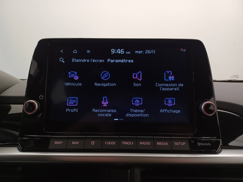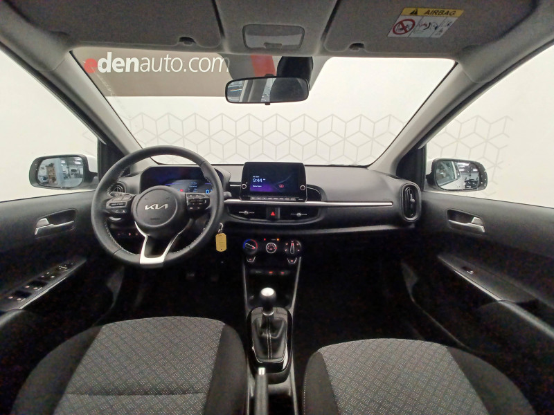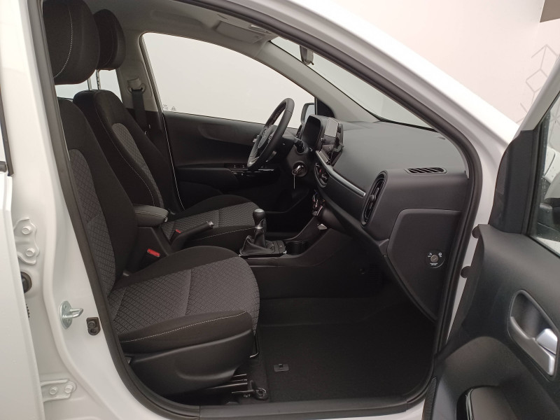 Aide au maintien dans la file (LKA) / Airbags frontaux conducteur et passager (déconnectable passager) / Alerte de présence des passagers AR / Alerte de vigilance du conducteur (DAW) / Allumage automatique des projecteurs en fonction de la luminosité / Assistance active à la conduite (LFA) / Boîte de vitesse manuelle 5 / Cache-bagages / Ceintures de sécurité AR à 3 points (X3) / Combiné d'instrumentation digital avec écran « Supervision » 4.2'' / Compte-tours / Configuration 5 places / Connectique USB à l'AV / Console centrale AV avec double compartiment de rangement / Contrôle de traction (TCS) / Direction à assistance électrique (MDPS) / Eclairage dans le coffre / Ecran tactile 8" compatible avec Android Auto et Apple CarPlay / Inserts finition aluminium sur la planche de bord / Jantes en acier 14" avec enjoliveurs / Kit de dépannage en cas de crevaison / Lève-vitres AV électriques avec descente/montée à impulsion côté conducteur / Pare-soleil avec miroir de courtoisie (conducteur et passager) / Plafonnier à l'AV / Poche aumonière au dos du siège conducteur / Poignées de portes extérieures couleur carrosserie / Poignées de portes intérieures finition aluminium / Pommeau de levier de vitesses gainé cuir / Prise 12 V sur la console centrale AV / Reconnaissance des panneaux de limitation avec régulation de vitesse (ISLA) / Rétroviseurs extérieurs couleur carrosserie / Services télématiques Kia Connect offerts pendant 7 ans / Système audio 6 HP dont 2 tweeters AV / Système de freinage ABS avec répartiteur électronique de freinage EBD / Système de freinage d'urgence autonome avec détection des voitures, piétons et cyclistes (FCA) / Système de gestion intelligente des feux de route (HBA) / Système de navigation avec cartographie Europe, services connectés Kia Connect Live et services télématiques Kia Connect offerts pendant 7 ans / Système de téléphonie mains-libres Bluetooth avec reconnaissance vocale et streaming audio / Système ISOFIX à 3 points d'ancrage sur sièges latéraux AR / Volant en matière synthétique
