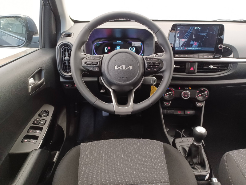 5 places / Aide au maintien dans la file (LKA) / Airbags frontaux conducteur et passager (déconnectable passager) / Alerte de présence des passagers AR / Alerte de vigilance du conducteur (DAW) / Allumage automatique des projecteurs en fonction de la luminosité / Assistance active à la conduite (LFA) / Cache-bagages / Ceintures de sécurité AR à 3 points (X3) / Combiné d'instrumentation digital avec écran « Supervision » 4.2'' / Compte-tours / Connectique USB à l'AV / Console centrale AV avec double compartiment de rangement / Direction à assistance électrique (MDPS) / Eclairage dans le coffre / Ecran tactile 8" compatible Android Auto et Apple CarPlay sans fil / Gestion intelligente des feux de route (HBA) / Inserts finition aluminium sur la planche de bord / Jantes en acier 14" avec enjoliveurs / Kit de réparation anti-crevaison / Lève-vitres AV électriques avec descente/montée à impulsion côté conducteur / Pare-soleil avec miroir de courtoisie (conducteur et passager) / Plafonnier à l'AV / Poches aumonières au dos des sièges AV / Poignées de portes extérieures couleur carrosserie / Poignées de portes intérieures finition aluminium / Pommeau de levier de vitesses gainé cuir / Prise 12 V sur la console centrale AV / Reconnaissance des panneaux de limitation avec régulation de vitesse (ISLA) / Rétroviseurs extérieurs couleur carrosserie / Services télématiques Kia Connect offerts pendant 7 ans / Système audio 6 HP dont 2 tweeters AV / Système de freinage ABS avec répartiteur électronique de freinage EBD / Système de freinage d'urgence autonome avec détection des voitures, piétons et cyclistes (FCA) / Système de navigation avec cartographie Europe, services connectés Kia Connect Live et services télématiques Kia Connect offerts pendant 7 ans / Système de téléphonie mains-libres Bluetooth avec reconnaissance vocale et streaming audio / Système ISOFIX à 3 points d'ancrage sur sièges latéraux AR / Volant en matière synthétique