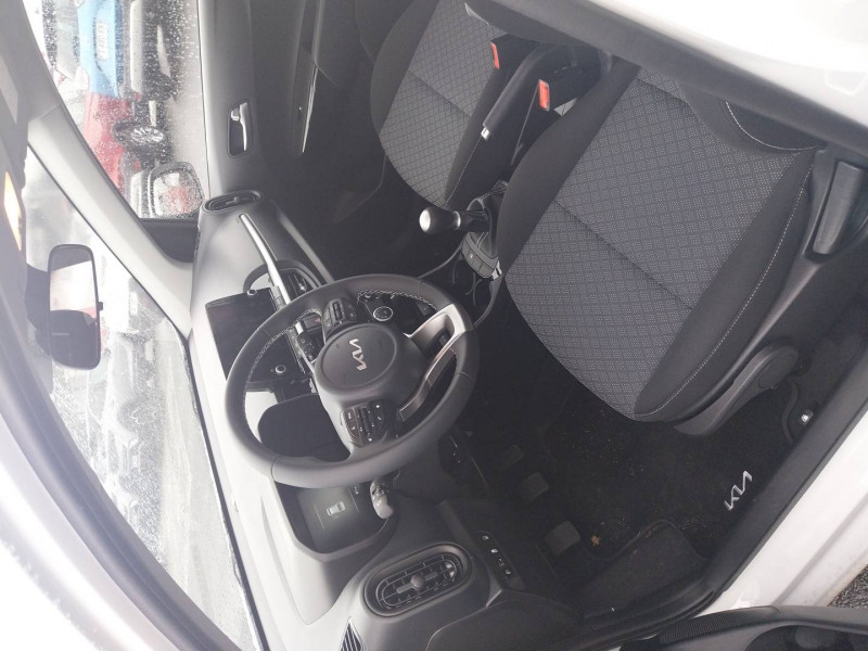 Aide au maintien dans la file (LKA) / Airbags frontaux conducteur et passager (déconnectable passager) / Alerte de présence des passagers AR / Alerte de vigilance du conducteur (DAW) / Allumage automatique des projecteurs en fonction de la luminosité / Assistance active à la conduite (LFA) / Boîte de vitesse manuelle 5 / Cache-bagages / Ceintures de sécurité AR à 3 points (X3) / Combiné d'instrumentation digital avec écran « Supervision » 4.2'' / Compte-tours / Configuration 5 places / Connectique USB à l'AV / Console centrale AV avec double compartiment de rangement / Contrôle de traction (TCS) / Direction à assistance électrique (MDPS) / Eclairage dans le coffre / Ecran tactile 8" compatible avec Android Auto et Apple CarPlay / Inserts finition aluminium sur la planche de bord / Jantes en acier 14" avec enjoliveurs / Kit de dépannage en cas de crevaison / Lève-vitres AV électriques avec descente/montée à impulsion côté conducteur / Pare-soleil avec miroir de courtoisie (conducteur et passager) / Plafonnier à l'AV / Poche aumonière au dos du siège conducteur / Poignées de portes extérieures couleur carrosserie / Poignées de portes intérieures finition aluminium / Pommeau de levier de vitesses gainé cuir / Prise 12 V sur la console centrale AV / Reconnaissance des panneaux de limitation avec régulation de vitesse (ISLA) / Rétroviseurs extérieurs couleur carrosserie / Services télématiques Kia Connect offerts pendant 7 ans / Système audio 6 HP dont 2 tweeters AV / Système de freinage ABS avec répartiteur électronique de freinage EBD / Système de freinage d'urgence autonome avec détection des voitures, piétons et cyclistes (FCA) / Système de gestion intelligente des feux de route (HBA) / Système de navigation avec cartographie Europe, services connectés Kia Connect Live et services télématiques Kia Connect offerts pendant 7 ans / Système de téléphonie mains-libres Bluetooth avec reconnaissance vocale et streaming audio / Système ISOFIX à 3 points d'ancrage sur sièges latéraux AR / Volant en matière synthétique