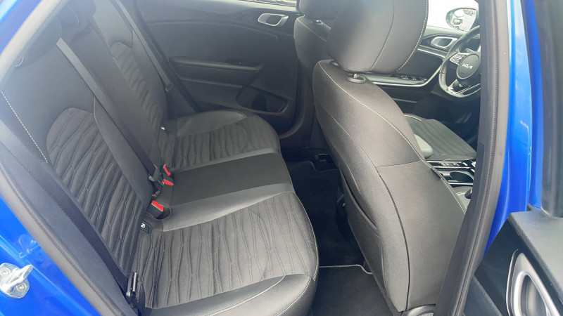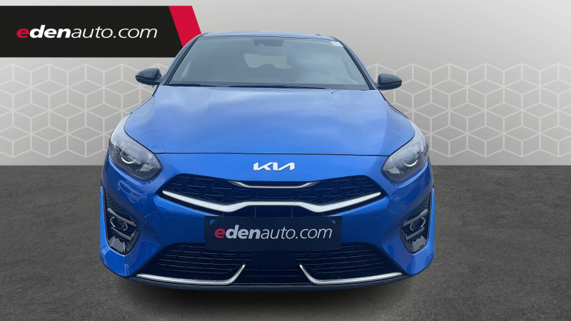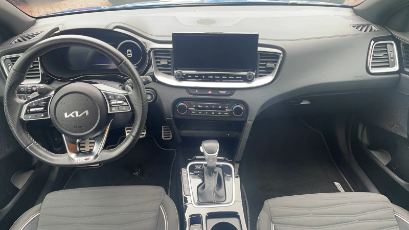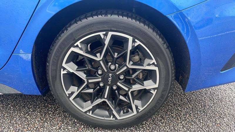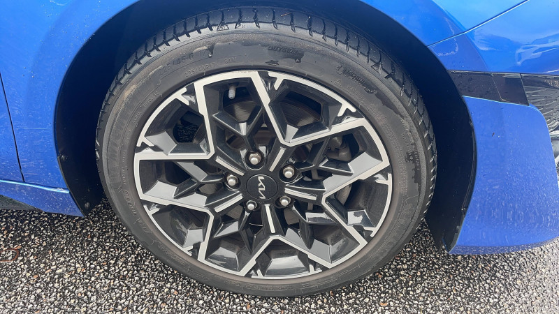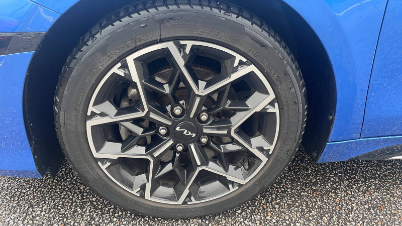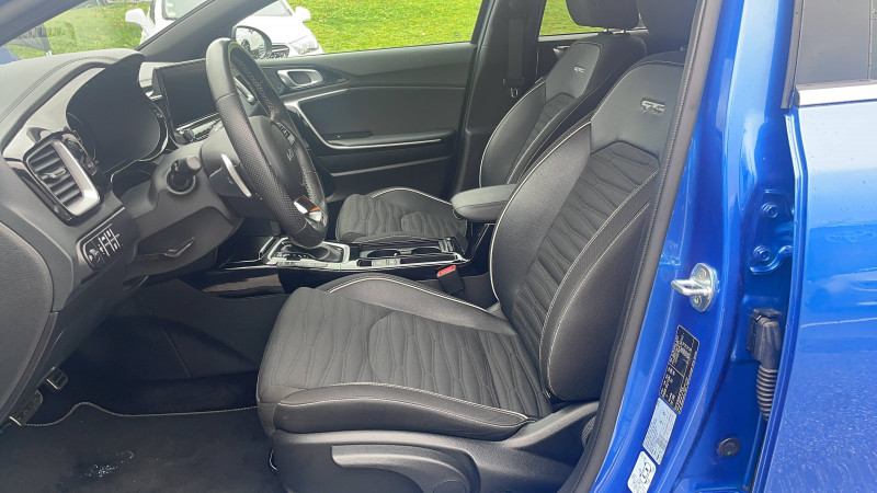 ABS avec répartiteur électronique de freinage (EBD) / Accoudoir central AR avec porte-gobelets intégrés / Accoudoir central AV coulissant avec compartiment de rangement / Aide au maintien dans la file (LKA) / Alerte de vigilance du conducteur (DAW) / Allumage automatique des projecteurs en fonction de la luminosité / Appuis-tête AV et AR réglables en hauteur et en inclinaison (à l'AV uniquement) / Assistance active à la conduite dans les embouteillages (LFA) / Bacs de rangement dans les contre-portes AV et AR / Becquet AR avec troisième feu stop LED intégré / Boucliers AV/AR / Caméra de recul avec lignes de guidage dynamiques, avec fonction switch On/Off / Combiné d'instrumentation 100 % digital 12.3'' / Compartiment range-lunettes / Compartiments de rangement sous le plancher de coffre / Connectique USB à charge rapide à l'AR / Connectique USB à charge rapide à l'AV / Contour de calandre aspect chrome satiné et application noir laqué sur grille de calandre / Coques de rétroviseurs couleur noir laqué / Direction à assistance électrique asservie à la vitesse / Eclairage dans le coffre / Ecran tactile couleur 10,25'' avec compatibilité via câble USB Android Auto et Apple CarPlay / Extracteurs d'air pour les places AR / Inserts noir laqué au niveau des entourages des ouïes d'aération latérales, du tableau de bord et de la console centrale / Kit de dépannage en cas de crevaison / Lève-vitres AV et AR électriques, séquentiels et anti-pincement / Ligne de vitre chromée / Moulures de bas de portes avec insert gris / Ouverture et démarrage sans clé "Smart Key" avec capteur de mouvement / Pare-soleil avec miroir de courtoisie illuminé (conducteur et passager) / Pédalier et repose-pieds aspect aluminium / Poches aumonières au dos des sièges AV / Poignées de portes intérieures finition chrome satiné / Prise 12 V sur la partie inférieure de la planche de bord / Prise USB sur la partie inférieure de la planche de bord / Projecteurs AV à technologie dite de "projection" / Rétroviseur intérieur électrochromatique (ECM) / Sélecteur de conduite DRIVE MODE (Normal ou Sport) / Sellerie cuir de synthèse/tissu noir / Services télématiques Kia Connect offerts pendant 7 ans / Sièges AV à réglage lombaire électrique / Spots de lecture AV et AR / Système de fixation ISOFIX sur sièges AR latéraux / Système de freinage d'urgence autonome avec détection des voitures, piétons et cyclistes (FCA) / Système de gestion intelligente des feux de route (HBA) / Système de navigation avec cartographie Europe et services connectés Kia Connect Live offerts pendant 7 ans / Système de téléphonie mains-libres Bluetooth avec reconnaissance vocale, mode personnalisé et fonction streaming audio / Témoin de niveau bas du liquide de lave-glace / Verrouillage automatique des portières en roulant / Volant et pommeau de levier de vitesses gainés cuir