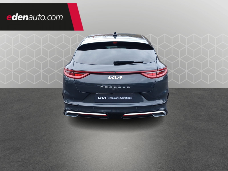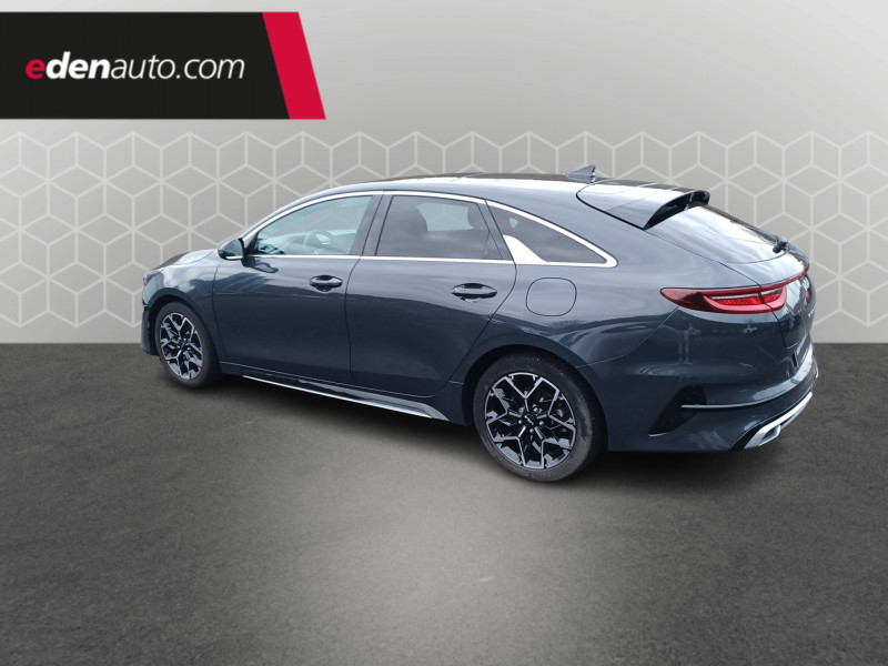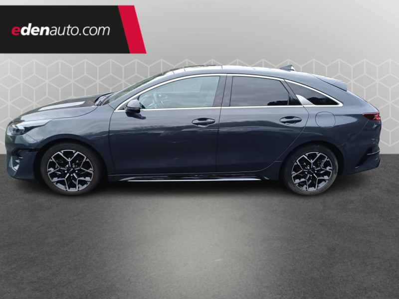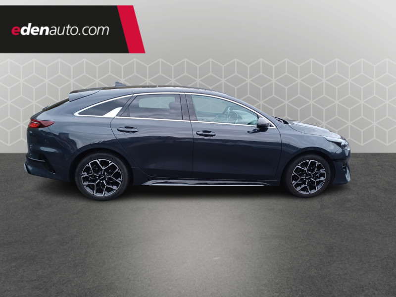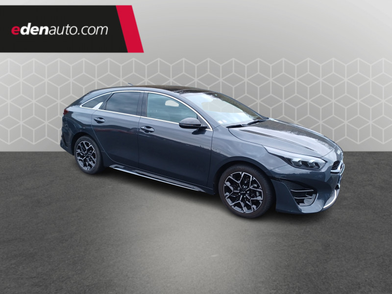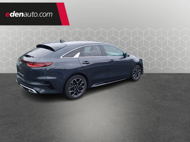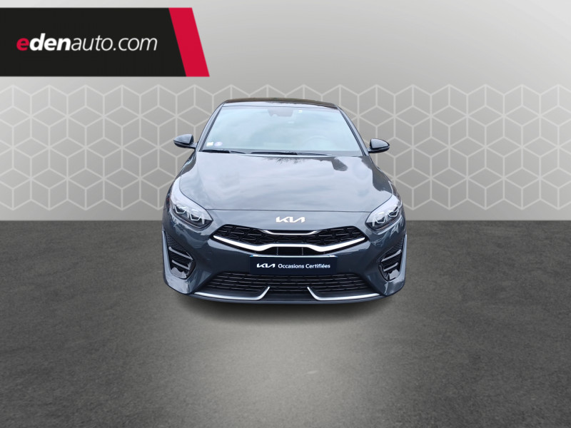 ABS avec répartiteur électronique de freinage (EBD) / Accoudoir central AR avec porte-gobelets intégrés / Accoudoir central AV coulissant avec compartiment de rangement / Aide au maintien dans la file (LKA) / Alerte de vigilance du conducteur (DAW) / Allumage automatique des projecteurs en fonction de la luminosité / Assistance active à la conduite dans les embouteillages (LFA) / Assistance active au maintien de voie (LKA) / Avertissement de sécurité de sortie du véhicule (SEW) / Bacs de rangement dans les contre-portes AV et AR / Becquet AR avec troisième feu stop LED intégré / Caméra de recul avec lignes de guidage dynamiques / Combiné d'instrumentation 100 % digital 12.3'' / Compartiment range-lunettes / Compartiments de rangement sous le plancher de coffre / Connectique audio USB / Contour de calandre aspect chrome satiné et application noir laqué sur grille de calandre / Coques de rétroviseurs couleur noir laqué / Direction à assistance électrique asservie à la vitesse / Eclairage dans le coffre / Ecran tactile couleur 10.25", système de navigation avec cartographie Europe et services connectés Kia LIVE offerts pendant 7 ans, compatibilité Android Auto et Apple CarPlay / Extracteurs d'air pour les places AR / Hayon AR électrique à ouverture mains-libres / Inserts noir laqué au niveau de la console centrale et des ouïes d'aération du tableau de bord / Kit de dépannage en cas de crevaison / Lève-vitres AV et AR électriques, séquentiels et anti-pincement / Ligne de vitre chromée / Moulures de bas de portes avec insert gris / Ouverture et démarrage sans clé "Smart Key" / Pare-soleil avec miroir de courtoisie illuminé (conducteur et passager) / Pédalier et repose-pieds aspect aluminium / Poches aumonières au dos des sièges AV / Poignées de portes intérieures finition chrome satiné / Pommeau de levier de vitesses gainés cuir perforé / Prise 12 V sur la partie inférieure de la planche de bord / Prise USB à charge accélérée sur la partie inférieure de la planche de bord / Rétroviseur intérieur électrochromatique (ECM) / Sélecteur de conduite DRIVE MODE (Normal ou Sport) / Sellerie GT-line cuir/suédine noir avec surpiqûres grises / Siège conducteur à réglages électrique, 4 axes, avec mémorisation / Sièges AV à réglage lombaire électrique / Spots de lecture AV et AR / Système anti-collision avec détection des angles morts (BCA) / Système de détection de trafic AR (RCCW) / Système de fixation ISOFIX sur sièges AR / Système de freinage d'urgence autonome avec détection des voitures et des piétons (FCA) / Système de gestion automatique des feux de route (HBA) / Système de téléphonie mains libres Bluetooth avec commandes au volant avec reconnaissance vocale (téléphone non fourni) / Système Stop & Go de coupure du moteur à l'arrêt (ISG) / Système UVO Connect - services télématiques offerts pendant 7 ans / Témoin de niveau bas du liquide de lave-glace / Toit vitré, ouvrant / entrebâillant électriquement, avec rideau occultant électrique et éclairage intérieur à LED / Verrouillage automatique des portières en roulant / Volant chauffant / Volant et pommeau de levier de vitesses gainés cuir