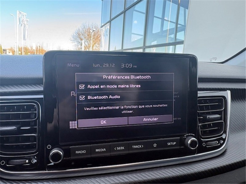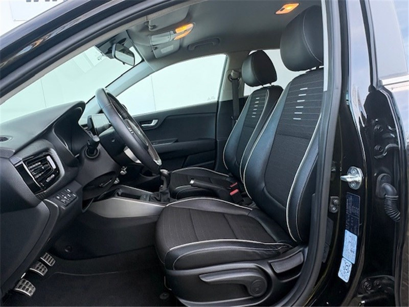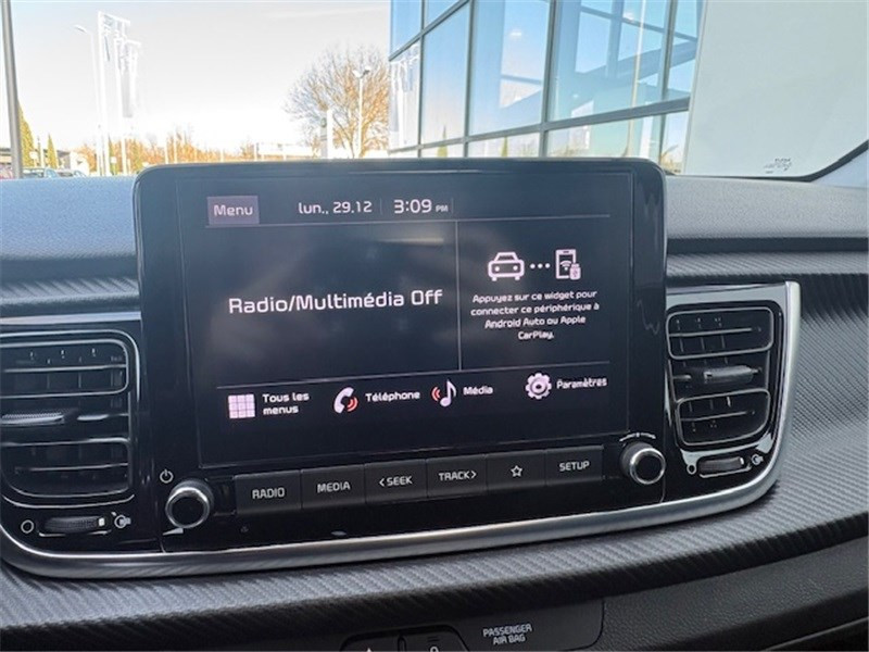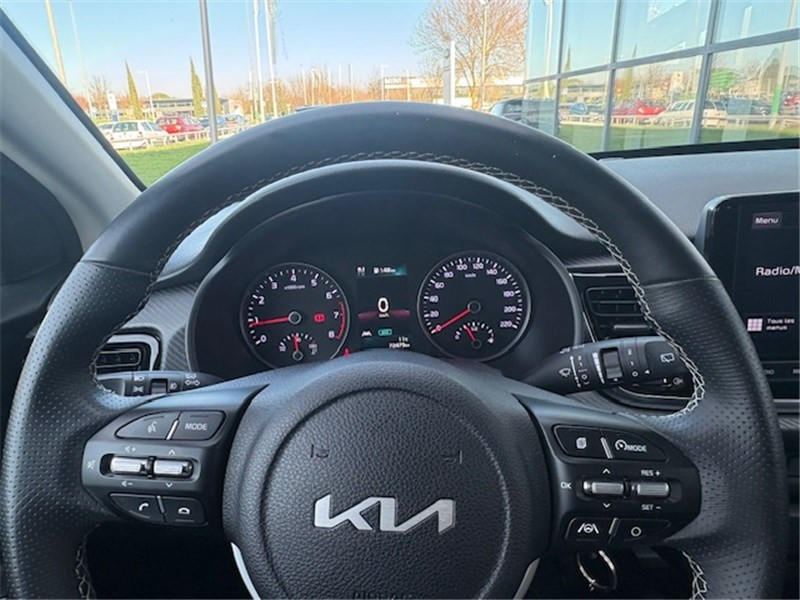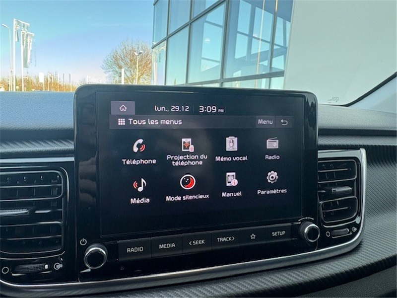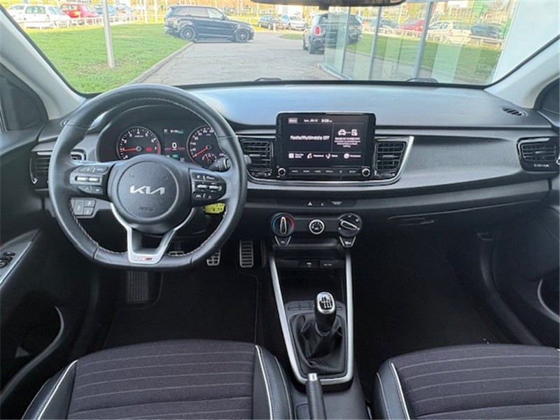 ABS avec répartiteur électronique de freinage (EBD) / Aide au maintien dans la file (LKA) / Airbags frontaux conducteur et passager (déconnectable passager) / Alerte de vigilance du conducteur (DAW) / Allumage automatique des projecteurs en fonction de la luminosité / Assistance active à la conduite (LFA) / Boucliers AV/AR GT-line / Cache-bagages / Calandre spécifique avec application noir laqué et entourage aluminium anodisé / Caméra de recul avec lignes de guidage dynamiques / Ceintures de sécurité AR à 3 points (X3) / Combiné d'instrumentation avec écran SuperVision 4.2" / Compartiment range-lunettes / Connectique USB à l'AV / Console centrale AV avec double compartiment de rangement / Coques de rétroviseurs et becquet AR noir laqué / Diffuseur AR avec double sortie d'échappement chromée / Direction assistée électrique (MDPS) / Eclairage dans le coffre / Ecran tactile 8'' compatible Android Auto et Apple CarPlay / Insert finition carbone tressé sur la planche de bord / Inserts aluminium satiné au niveau de la console centrale / Inserts noir laqué au niveau des ouïes d'aération du tableau de bord / Jupes latérales avec inserts finition noir laqué / Lève-vitres AR électriques verrouillables par le conducteur / Lève-vitres AV électriques avec descente/montée à impulsion côté conducteur / Ligne de vitre chromée / Pack Systèmes avancés d'aide à la conduite (SECU) / Pare-soleil avec miroir de courtoisie illuminé (conducteur et passager) / Pédalier finition aluminium / Poche aumonière au dos du siège passager AV / Poignées de portes extérieures couleur carrosserie / Poignées de portes intérieures finition chrome satiné / Prise 12 V sur la console centrale / Projecteurs AV à technologie dite de "projection" avec éclairage statique d'intersection / Rétroviseur intérieur avec réglage de position jour/nuit manuel / Sélecteur de mode de conduite (Normal, Eco, Sport) / Sellerie cuir de synthèse/tissu noir / Système audio 6 HP dont 2 tweeters AV / Système de freinage d'urgence autonome avec détection des piétons et des cyclistes (FCA) / Système de gestion intelligente des feux de route (HBA) / Système de téléphonie mains-libres Bluetooth avec reconnaissance vocale et streaming audio / Système de verrouillage automatique des portes en roulant / Système ISOFIX à 3 points d'ancrage sur sièges AR / Volant à méplat gainé cuir / Volant et pommeau de levier de vitesses gainés cuir