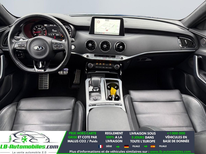 Référence : 1143351 Vos Avantages chez LB-AUTOMOBILES.com / Prix affiché TTC Livré hors carte grise / Livraison sous 10 jours dans toute la France hors 31 / Pas d?avance de frais paiement du véhicule 100% à la livraison par virement. Kia Stinger Neuf remisée, Kia Stinger Occasion Toulouse Beaupuy 31850, Kia Stinger Véhicule sorti de réseau collaborateur, Kia Stinger import, Kia Stinger importateur, Kia Stinger Livraison possible dans toute la France sous 5 jours, Kia Stinger, Kia Stinger Location Option Achat, Kia Stinger LLD, Kia Stinger Longue Durée, Kia Stinger TVA récupérable. Possibilité d'extension de garantie 12, 24,36 mois, Pour tout autres voitures import neufs ou occasions collaborateur fortement remisée, Mandataire Audi, Mandataire BMW, Mandataire Volkswagen, Mandataire Mercedes, Mandataire Peugeot Espagne, Mandataire Renault Espagne, Porsche import, Mandataire Citroën Espagne, Mandataire Seat Espagne, n'hésitez pas à nous contacter. « Sous réserve de vente préalable et erreur de saisie » Principaux équipements : - 4x4 - ABS - Accoudoir - Affichage tête haute - Android Auto - Antidémarrage - Apple CarPlay - Assistance de démarrage en côte - Assistant d'angle mort - Assistant de sortie de stationnement - Assistant feux de route - Avertisseur de franchissement de ligne - Bluetooth - Boîte de vitesses robotisée - Capteur de lumière - Capteur de pluie - Carnet d'entretien - Chargement par induction pour smartphones - Commande vocale - Contrôle de la pression des pneus - Diesel avec filtre à particules - Direction assistée - Éclairage adaptatif de virage - Écran tactile - ESP - Fermeture centralisée - Feux de jour LED - Garantie - GPS - Hayon électrique - Isofix - Jantes alliage - Kit de réparation d'urgence des pneus - Kit mains libres - Ordinateur de bord - Pack sport - Phares LED - Pneus été - Port USB - Radio DAB - Réglage électrique des sièges - Réglage électrique des sièges avec fonction mémoire - Régulateur de vitesse adaptatif - Rétroviseur extérieur électrique - Rétroviseur intérieur anti-éblouissement automatique - Rétroviseurs extérieurs rabattables électriquement - Révision complète - Sièges arrières chauffants électriques - Sièges chauffants - Sièges sport - Streaming musical intégré - Support lombaire - Suspension adaptative - Suspension sport - Système antipatinage - Système d'alarme - Système d'avertissement de la distance - Système de détection de la fatigue - Système de limitation de la vitesse - Système de reconnaissance des panneaux de signalisation - Système de sonorisation - Système Stop & Start - Toit ouvrant - Toit panoramique - Tuner/radio - Véhicule non-fumeur - Ventilation du siège - Verrouillage centralisé sans clé - Vitres électriques - Volant chauffant - Volant en cuir - Volant multifonction