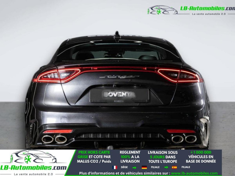 Référence : 1143346 Vos Avantages chez LB-AUTOMOBILES.com / Prix affiché TTC Livré hors carte grise / Livraison sous 10 jours dans toute la France hors 31 / Pas d?avance de frais paiement du véhicule 100% à la livraison par virement. Kia Stinger Neuf remisée, Kia Stinger Occasion Toulouse Beaupuy 31850, Kia Stinger Véhicule sorti de réseau collaborateur, Kia Stinger import, Kia Stinger importateur, Kia Stinger Livraison possible dans toute la France sous 5 jours, Kia Stinger, Kia Stinger Location Option Achat, Kia Stinger LLD, Kia Stinger Longue Durée, Kia Stinger TVA récupérable. Possibilité d'extension de garantie 12, 24,36 mois, Pour tout autres voitures import neufs ou occasions collaborateur fortement remisée, Mandataire Audi, Mandataire BMW, Mandataire Volkswagen, Mandataire Mercedes, Mandataire Peugeot Espagne, Mandataire Renault Espagne, Porsche import, Mandataire Citroën Espagne, Mandataire Seat Espagne, n'hésitez pas à nous contacter. « Sous réserve de vente préalable et erreur de saisie » Principaux équipements : - 4x4 - ABS - Accès handicapés - Accoudoir - Affichage tête haute - Android Auto - Antidémarrage - Apple CarPlay - Assistance au freinage d'urgence - Assistance de démarrage en côte - Assistant d'angle mort - Assistant feux de route - Avertisseur de franchissement de ligne - Bluetooth - Boîte de vitesses robotisée - Capteur de lumière - Capteur de pluie - Carnet d'entretien - Chargement par induction pour smartphones - Commande vocale - Contrôle de la pression des pneus - Direction assistée - Éclairage adaptatif - Éclairage d'ambiance - ESP - Fermeture centralisée - Feux de jour LED - Garantie - GPS - Grille de protection pour coffre - Hayon électrique - Isofix - Jantes alliage - Kit mains libres - Ordinateur de bord - Package hiver - Pack fumeur - Pack sport - Phares LED - Pneus été - Port USB - Radio DAB - Réglage électrique des sièges - Réglage électrique des sièges avec fonction mémoire - Régulateur de vitesse adaptatif - Rétroviseur extérieur électrique - Rétroviseur intérieur anti-éblouissement automatique - Rétroviseurs extérieurs rabattables électriquement - Sièges arrières chauffants électriques - Sièges chauffants - Sièges sport - Streaming musical intégré - Support lombaire - Suspension adaptative - Suspension sport - Système antipatinage - Système d'appel d'urgence - Système de détection de la fatigue - Système de limitation de la vitesse - Système de reconnaissance des panneaux de signalisation - Système de sonorisation - Système Stop & Start - Tuner/radio - Véhicule non-fumeur - Ventilation du siège - Verrouillage centralisé sans clé - Vitres électriques - Vitres teintées - Volant chauffant - Volant en cuir - Volant multifonction