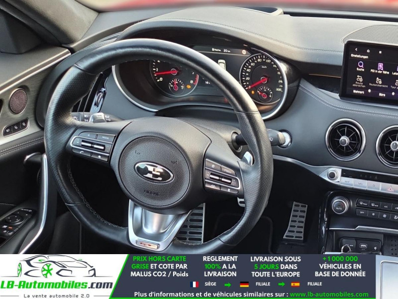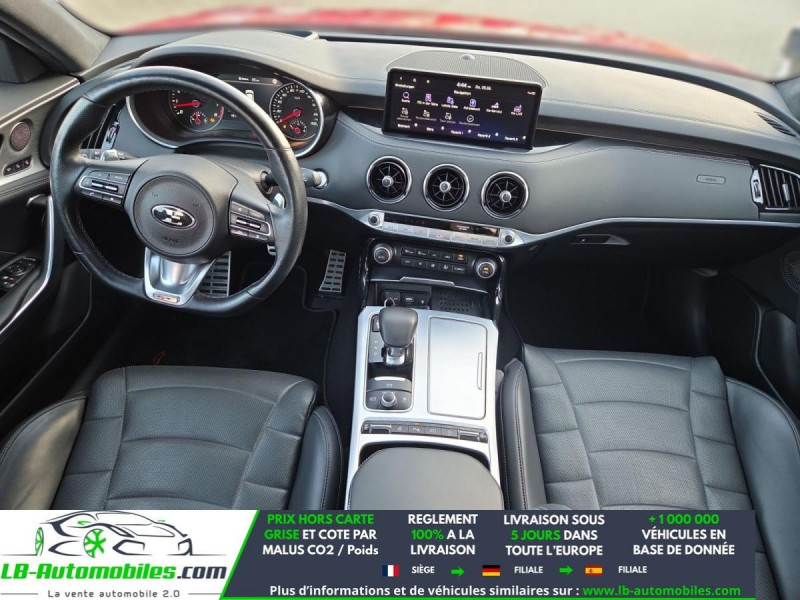 Référence : 1143323 Vos Avantages chez LB-AUTOMOBILES.com / Prix affiché TTC Livré hors carte grise / Livraison sous 10 jours dans toute la France hors 31 / Pas d?avance de frais paiement du véhicule 100% à la livraison par virement. Kia Stinger Neuf remisée, Kia Stinger Occasion Toulouse Beaupuy 31850, Kia Stinger Véhicule sorti de réseau collaborateur, Kia Stinger import, Kia Stinger importateur, Kia Stinger Livraison possible dans toute la France sous 5 jours, Kia Stinger, Kia Stinger Location Option Achat, Kia Stinger LLD, Kia Stinger Longue Durée, Kia Stinger TVA récupérable. Possibilité d'extension de garantie 12, 24,36 mois, Pour tout autres voitures import neufs ou occasions collaborateur fortement remisée, Mandataire Audi, Mandataire BMW, Mandataire Volkswagen, Mandataire Mercedes, Mandataire Peugeot Espagne, Mandataire Renault Espagne, Porsche import, Mandataire Citroën Espagne, Mandataire Seat Espagne, n'hésitez pas à nous contacter. « Sous réserve de vente préalable et erreur de saisie » Principaux équipements : - 4x4 - ABS - Accoudoir - Affichage tête haute - Antidémarrage - Assistance de démarrage en côte - Assistant d'angle mort - Assistant feux de route - Avertisseur de franchissement de ligne - Bluetooth - Boîte de vitesses robotisée - Capteur de lumière - Capteur de pluie - Carnet d'entretien - Chargement par induction pour smartphones - Commande vocale - Contrôle de la pression des pneus - Diesel avec filtre à particules - Direction assistée - Éclairage adaptatif - Éclairage route non éblouissant - ESP - Fermeture centralisée - Garantie - GPS - Hayon électrique - Isofix - Jantes alliage - Kit mains libres - Ordinateur de bord - Phares LED - Pneus été - Port USB - Radio DAB - Réglage électrique des sièges - Réglage électrique des sièges avec fonction mémoire - Régulateur de vitesse - Rétroviseur extérieur électrique - Rétroviseur intérieur anti-éblouissement automatique - Sièges arrières chauffants électriques - Sièges chauffants - Support lombaire - Système antipatinage - Système d'avertissement de la distance - Système de détection de la fatigue - Système de limitation de la vitesse - Système de reconnaissance des panneaux de signalisation - Système de sonorisation - Système Stop & Start - Tuner/radio - Véhicule non-fumeur - Ventilation du siège - Vitres électriques - Volant chauffant - Volant en cuir - Volant multifonction