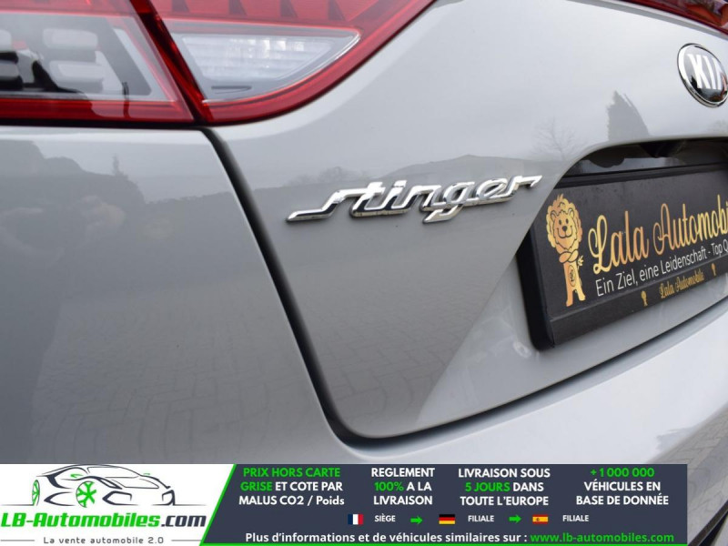 Référence : 1143329 Vos Avantages chez LB-AUTOMOBILES.com / Prix affiché TTC Livré hors carte grise / Livraison sous 10 jours dans toute la France hors 31 / Pas d?avance de frais paiement du véhicule 100% à la livraison par virement. Kia Stinger Neuf remisée, Kia Stinger Occasion Toulouse Beaupuy 31850, Kia Stinger Véhicule sorti de réseau collaborateur, Kia Stinger import, Kia Stinger importateur, Kia Stinger Livraison possible dans toute la France sous 5 jours, Kia Stinger, Kia Stinger Location Option Achat, Kia Stinger LLD, Kia Stinger Longue Durée, Kia Stinger TVA récupérable. Possibilité d'extension de garantie 12, 24,36 mois, Pour tout autres voitures import neufs ou occasions collaborateur fortement remisée, Mandataire Audi, Mandataire BMW, Mandataire Volkswagen, Mandataire Mercedes, Mandataire Peugeot Espagne, Mandataire Renault Espagne, Porsche import, Mandataire Citroën Espagne, Mandataire Seat Espagne, n'hésitez pas à nous contacter. « Sous réserve de vente préalable et erreur de saisie » Principaux équipements : - 4x4 - ABS - Accoudoir - Affichage tête haute - Android Auto - Antidémarrage - Apple CarPlay - Assistance au freinage d'urgence - Assistance de démarrage en côte - Assistant d'angle mort - Assistant de sortie de stationnement - Assistant feux de route - Avertisseur de franchissement de ligne - Bluetooth - Boîte de vitesses robotisée - Capteur de lumière - Capteur de pluie - Carnet d'entretien - Chargement par induction pour smartphones - Cockpit numérique - Commande vocale - Contrôle de la pression des pneus - Diesel avec filtre à particules - Direction assistée - Éclairage adaptatif de virage - Éclairage d'ambiance - Éclairage route non éblouissant - Écran tactile - ESP - Fermeture centralisée - Feux de jour LED - Garantie - GPS - Grille de protection pour coffre - Hayon électrique - Isofix - Jantes alliage - Kit mains libres - Ordinateur de bord - Package hiver - Pack sport - Phare antibrouillard - Phares LED - Pneus été - Pneus hiver - Port USB - Radio DAB - Réglage électrique des sièges - Réglage électrique des sièges avec fonction mémoire - Régulateur de vitesse adaptatif - Rétroviseur extérieur électrique - Rétroviseur intérieur anti-éblouissement automatique - Rétroviseurs extérieurs rabattables électriquement - Révision complète - Sièges arrières chauffants électriques - Sièges chauffants - Sièges sport - Support lombaire - Suspension sport - Système antipatinage - Système d'alarme - Système d'appel d'urgence - Système d'avertissement de la distance - Système de détection de la fatigue - Système de limitation de la vitesse - Système de nettoyage des phares - Système de reconnaissance des panneaux de signalisation - Système de sonorisation - Système Stop & Start - Trappe à skis - Tuner/radio - Véhicule non-fumeur - Ventilation du siège - Verrouillage centralisé sans clé - Vitres électriques - Vitres teintées - Volant chauffant - Volant en cuir - Volant multifonction
