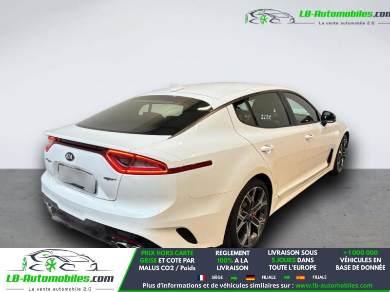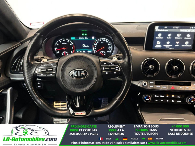 Référence : 1199162 Vos Avantages chez LB-AUTOMOBILES.com / Prix affiché TTC Livré hors carte grise / Livraison sous 10 jours dans toute la France hors 31 / Pas d?avance de frais paiement du véhicule 100% à la livraison par virement. Kia Stinger Neuf remisée, Kia Stinger Occasion Toulouse Beaupuy 31850, Kia Stinger Véhicule sorti de réseau collaborateur, Kia Stinger import, Kia Stinger importateur, Kia Stinger Livraison possible dans toute la France sous 5 jours, Kia Stinger, Kia Stinger Location Option Achat, Kia Stinger LLD, Kia Stinger Longue Durée, Kia Stinger TVA récupérable. Possibilité d'extension de garantie 12, 24,36 mois, Pour tout autres voitures import neufs ou occasions collaborateur fortement remisée, Mandataire Audi, Mandataire BMW, Mandataire Volkswagen, Mandataire Mercedes, Mandataire Peugeot Espagne, Mandataire Renault Espagne, Porsche import, Mandataire Citroën Espagne, Mandataire Seat Espagne, n'hésitez pas à nous contacter. « Sous réserve de vente préalable et erreur de saisie » Principaux équipements : - 4x4 - ABS - Accoudoir - Affichage tête haute - Android Auto - Antidémarrage - Apple CarPlay - Assistance au freinage d'urgence - Assistance de démarrage en côte - Assistant d'angle mort - Assistant feux de route - Avertisseur de franchissement de ligne - Bluetooth - Boîte de vitesses robotisée - Capteur de lumière - Capteur de pluie - Carnet d'entretien - Chargement par induction pour smartphones - Commande vocale - Contrôle de la pression des pneus - Direction assistée - Écran tactile - ESP - Fermeture centralisée - Feux de jour LED - Garantie - GPS - Grille de protection pour coffre - Hayon électrique - Isofix - Jantes alliage - Kit mains libres - Ordinateur de bord - Package hiver - Pack sport - Phares LED - Pneus été - Port USB - Radio DAB - Réglage électrique des sièges - Réglage électrique des sièges avec fonction mémoire - Régulateur de vitesse adaptatif - Rétroviseur extérieur électrique - Rétroviseur intérieur anti-éblouissement automatique - Rétroviseurs extérieurs rabattables électriquement - Sièges arrières chauffants électriques - Sièges chauffants - Sièges sport - Support lombaire - Suspension sport - Système antipatinage - Système d'appel d'urgence - Système d'avertissement de la distance - Système de détection de la fatigue - Système de limitation de la vitesse - Système de nettoyage des phares - Système de reconnaissance des panneaux de signalisation - Système de sonorisation - Système Stop & Start - Tuner/radio - Véhicule non-fumeur - Ventilation du siège - Verrouillage centralisé sans clé - Vitres électriques - Vitres teintées - Volant chauffant - Volant en cuir - Volant multifonction