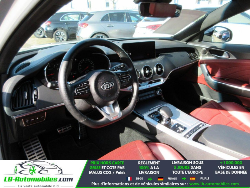 Référence : 1199163 Vos Avantages chez LB-AUTOMOBILES.com / Prix affiché TTC Livré hors carte grise / Livraison sous 10 jours dans toute la France hors 31 / Pas d?avance de frais paiement du véhicule 100% à la livraison par virement. Kia Stinger Neuf remisée, Kia Stinger Occasion Toulouse Beaupuy 31850, Kia Stinger Véhicule sorti de réseau collaborateur, Kia Stinger import, Kia Stinger importateur, Kia Stinger Livraison possible dans toute la France sous 5 jours, Kia Stinger, Kia Stinger Location Option Achat, Kia Stinger LLD, Kia Stinger Longue Durée, Kia Stinger TVA récupérable. Possibilité d'extension de garantie 12, 24,36 mois, Pour tout autres voitures import neufs ou occasions collaborateur fortement remisée, Mandataire Audi, Mandataire BMW, Mandataire Volkswagen, Mandataire Mercedes, Mandataire Peugeot Espagne, Mandataire Renault Espagne, Porsche import, Mandataire Citroën Espagne, Mandataire Seat Espagne, n'hésitez pas à nous contacter. « Sous réserve de vente préalable et erreur de saisie » Principaux équipements : - 4x4 - ABS - Accoudoir - Affichage tête haute - Android Auto - Antidémarrage - Apple CarPlay - Assistance au freinage d'urgence - Assistance de démarrage en côte - Assistant d'angle mort - Assistant feux de route - Avertisseur de franchissement de ligne - Bluetooth - Boîte de vitesses robotisée - Capteur de lumière - Capteur de pluie - Carnet d'entretien - Chargement par induction pour smartphones - Commande vocale - Contrôle de la pression des pneus - Diesel avec filtre à particules - Direction assistée - Éclairage adaptatif de virage - Éclairage d'ambiance - Écran tactile - ESP - Fermeture centralisée - Feux de jour LED - Garantie - GPS - Hayon électrique - Isofix - Jantes alliage - Kit mains libres - Ordinateur de bord - Pack sport - Phares LED - Pneus été - Pneus hiver - Port USB - Radio DAB - Réglage électrique des sièges - Réglage électrique des sièges avec fonction mémoire - Régulateur de vitesse - Rétroviseur extérieur électrique - Rétroviseur intérieur anti-éblouissement automatique - Rétroviseurs extérieurs rabattables électriquement - Sièges arrières chauffants électriques - Sièges chauffants - Sièges sport - Streaming musical intégré - Support lombaire - Suspension adaptative - Système antipatinage - Système d'avertissement de la distance - Système de détection de la fatigue - Système de limitation de la vitesse - Système de reconnaissance des panneaux de signalisation - Système de sonorisation - Système Stop & Start - Toit ouvrant - Toit panoramique - Tuner/radio - Véhicule non-fumeur - Ventilation du siège - Verrouillage centralisé sans clé - Vitres électriques - Volant chauffant - Volant en cuir - Volant multifonction - WLAN / point d'accès Wi-Fi