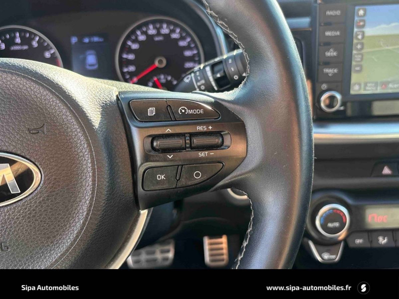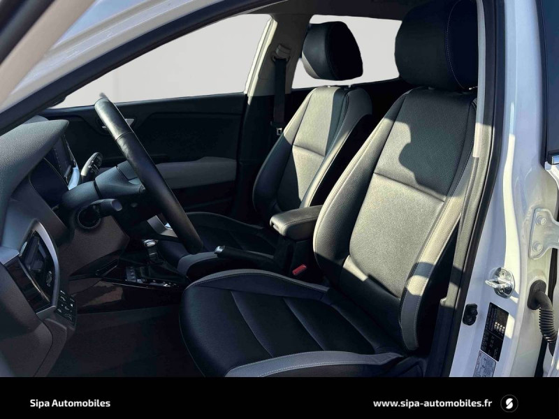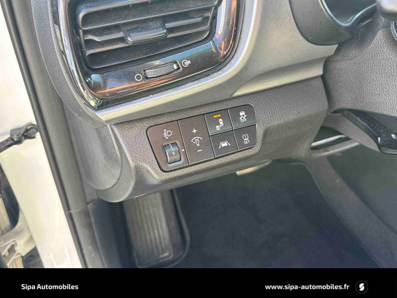 ABS avec répartiteur électronique de freinage (EBD) / Airbags frontaux conducteur et passager (déconnectable passager) / Alerte de vigilance du conducteur (DAA) / Allumage automatique des projecteurs en fonction de la luminosité / Antenne type aileron de requin / Application finition chrome sur le volant / Cache-bagages / Calandre avec application noir laqué et contour finition chrome / Caméra de recul avec lignes de guidage dynamiques / Ceintures de sécurité AR à 3 points (X3) / Compte-tours / Connectique audio AUX et USB / Connectique de chargement USB au dos de la console centrale / Console centrale AV avec double compartiment de rangement / Console centrale AV avec double porte-gobelets / Console centrale avec accoudoir central et compartiment de rangement intégré / Direction assistée électrique (MDPS) / Eclairage dans le coffre / Ecran tactile couleur 7" avec comptabilité Android Auto et Apple Carplay / Essuie-glace AR avec lave-glace / Inserts noir laqué au niveau de la console centrale et des ouïes d'aération du tableau de bord / Ligne de vitre chromée / Ouverture et démarrage sans clé "Smart Key" / Pack Navigation / Pare-soleil avec miroir de courtoisie illuminé (conducteur et passager) / Pédalier finition aluminium / Plancher de coffre à double niveau / Poche aumonière au dos du siège passager AV / Poignées de portes extérieures couleur carrosserie / Poignées de portes intérieures finition chrome satiné / Prise 12 V sur la console centrale AV / Projecteurs AV à technologie dite de "projection" avec éclairage statique d'intersection / Protections de bouclier AV et AR teinte aluminium / Rails de toit finition aluminium satiné / Régulateur de couple et assistance au contre-braquage (VSM) / Rétroviseur intérieur avec réglage manuel jour/nuit / Rétroviseur intérieur électrochromatique (ECM) / Rétroviseurs extérieurs couleur carrosserie / Sellerie cuir de synthèse noir/gris / Surlignage des passages de roues en composite noir / Système de freinage d'urgence autonome avec détection des piétons (FCA) / Système de gestion automatique des feux de route (HBA) / Système de navigation avec écran couleur tactile 7", cartographie Europe avec 7 ans de mises à jour et services TomTom Live pendant 7 ans, compatibilité Android Auto et Apple Car Play / Système de surveillance des angles morts (BSD) avec détection de trafic AR (RCTA) / Système de téléphonie mains-libres Bluetooth avec reconnaissance vocale / Système de verrouillage automatique des portes en roulant / Système ISOFIX à 3 points d'ancrage sur sièges AR / Systèmes avancés d'aide à la conduite / Témoin de niveau bas du liquide de lave-glace / Volant et pommeau de levier de vitesses gainés cuir