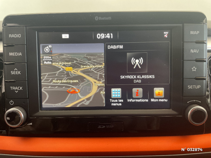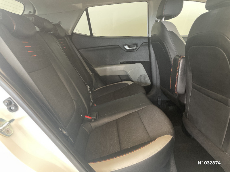 Console centrale AV avec double porte-gobelets / Console centrale AV avec double compartiment de rangement / Plancher de coffre à double niveau / Pack intérieur Orange si peintures Blanc Céleste, Gris Aluminium, Gris Galène, Noir Ebène / Pack intérieur Gris si peintures Rouge Grenadine, Vert Menthe, Bleu Denim, Brun Sienne, Jaune Impérial / Projecteurs AV à technologie dite de "projection" avec éclairage statique d'intersection / Calandre avec application noir laqué et contour finition chrome / Application finition chrome sur le volant / Prise 12V sur la console centrale AV / Ceintures de sécurité AR à 3 points (x3) / Pare-soleil avec miroir de courtoisie illuminé (conducteur et passager) / Sellerie cuir de synthèse noir/gris / Essuie-glace AR avec lave-glace / Volant à méplat gainé cuir / Compte-tours / Antenne type aileron de requin / Eclairage dans le coffre / Poignées de portes extérieures couleur carrosserie / Rétroviseurs extérieurs couleur carrosserie / Cache-bagages / Airbags frontaux conducteur et passager (déconnectable passager) / Système ISOFIX à 3 points d'ancrage sur sièges AR / Volant et pommeau de levier de vitesses gainés cuir / Poches aumonières au dos du siège passager AV / Pédalier finition aluminium / Surlignage des passages de roues en composite noir / Rails de toit finition aluminium satiné / Rétroviseur intérieur avec réglage manuel jour/nuit / Protections de bouclier AV et AR teinte aluminium / Système de navigation avec écran couleur tactile 7", cartographie Europe avec 7 ans de mises à jour et services TomTom Live pendant 7 ans, compatibilité Android Auto et Apple Car Play / Caméra de recul avec lignes de guidage dynamiques / Allumage automatique des projecteurs en fonction de la luminosité / Système de verrouillage automatique des portes en roulant / Essuie-glace AV à intermittence / ABS avec répartiteur électronique de freinage (EBD) / 3ème feu stop à technologie LED / Connectique audio AUX et USB / Régulateur de couple et assistance au contre-braquage (VSM) / Pack Navigation / Direction assistée électrique (MDPS) / Console centrale avec accoudoir central et compartiment de rangement intégré / Inserts noir laqué au niveau de la console centrale et des ouies d'aération du tableau de bord / Poignées de portes intérieures finition chrome satiné / Connectique de chargement USB au dos de la console centrale / Ecran tactile couleur 7" avec comptabilité Android Auto et Apple Carplay / Système de téléphonie mains-libres Bluetooth avec reconnaissance vocale / Ligne de vitrage chromée