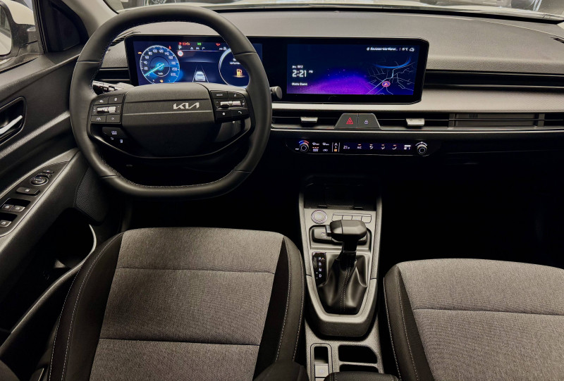 Aide au maintien dans la file (LKA) / Airbags frontaux conducteur et passager (déconnectable passager) / Alerte de vigilance du conducteur (DAW) / Allumage automatique des projecteurs en fonction de la luminosité / Antenne de toit type "aileron de requin" / Assistance active à la conduite (LFA) / Boîte à double embrayage 7 rapports DCT7 / Cache-bagages / Caméra de recul avec lignes de guidage dynamiques / Ceintures de sécurité AR à 3 points (X3) / Combiné d'instrumentation avec écran "Supervision" 4.2'' / Compartiment range-lunettes / Connectique de chargement USB au dos de la console centrale / Connectique USB à l'AV / Console centrale AV avec double porte-gobelets / Contrôle de traction (TCS) / Direction assistée électrique (MDPS) / Eclairage dans le coffre / Ecran panoramique 12.3'' avec navigation intégrée, compatible Apple CarPlay/Android Auto sans fil et combiné d'instrumentation avec cluster 4,2'' / ESP (Contrôle électronique de la stabilité) / Lève-vitres AR électriques verrouillables par le conducteur / Lève-vitres AV électriques avec descente/montée à impulsion côté conducteur / Pare-soleil avec miroir de courtoisie (conducteur et passager) / Pare-soleil avec miroir de courtoisie illuminé (conducteur et passager) / Peinture unie / Plafonnier AR / Plancher de coffre à double niveau / Poche aumonière au dos du siège passager AV / Poignées de portes extérieures couleur carrosserie / Poignées de portes intérieures finition chrome satiné / Prise 12 V sur la console centrale AV / Projecteurs AV "Full LED" / Radars de parking AV et AR / Rails de toit finition aluminium satiné / Reconnaissance des panneaux de limitation avec régulation de vitesse (ISLA) / Régulateur de couple et assistance au contrebraquage (VSM) / Rétroviseur intérieur avec réglage de position jour/nuit manuel / Rétroviseurs extérieurs couleur carrosserie / Sélecteur de mode de conduite (Normal, Eco, Sport) / Système audio avec ecran tactile 12.3', 6 haut-parleurs dont 2 tweeters, compatibilite Android Auto / Système de contrôle vectoriel du couple (TVBB) / Système de fixation ISOFIX sur sièges AR latéraux / Système de freinage ABS avec répartiteur électronique de freinage EBD / Système de freinage d'urgence autonome avec détection des voitures, piétons et cyclistes (FCA) / Système de gestion automatique des feux de route (HBA) / Système de navigation avec cartographie Europe et services connectés Kia Connect Live offerts pendant 7 ans / Système de téléphonie mains-libres Bluetooth® avec reconnaissance vocale et streaming audio / Système de verrouillage automatique des portes en roulant / Volant et pommeau de levier de vitesses gainés de matière synthétique