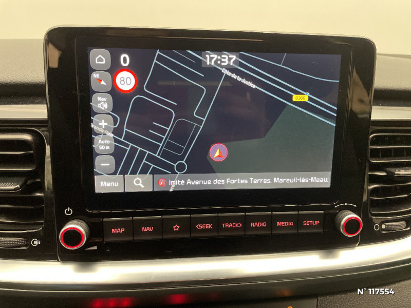 Système de téléphonie mains-libres Bluetooth avec reconnaissance vocale et streaming audio / Système de navigation avec cartographie Europe, services connectés Kia Connect Live et services télématiques Kia Connect offerts pendant 7 ans / Console centrale AV avec double porte-gobelets / Console centrale AV avec double compartiment de rangement / Plancher de coffre à double niveau / Sellerie tissu noir "Austin" / Système de verrouillage automatique des portes en roulant / Plafonnier à l'AV / Lève-vitres AR électriques verrouillables par le conducteur / Poignées de portes intérieures finition chrome satiné / Lève-vitres AV électriques avec descente/montée à impulsion côté conducteur / Allumage automatique des projecteurs en fonction de la luminosité / Poche aumonière au dos du siège passager AV / Inserts noir laqué sur la console centrale / Protections de boucliers AV et AR finition aluminium / Alerte de vigilance du conducteur (DAW) / Caméra de recul avec lignes de guidage dynamiques / Calandre avec application noir laqué et contour finition aluminium / Lève-vitres électriques AV séquentiel côté conducteur / Rétroviseurs extérieurs couleur carrosserie / Rails de toit finition aluminium satiné / Système de freinage d'urgence autonome avec détection des voitures, piétons et cyclistes (FCA) / Airbags frontaux conducteur et passager (déconnectable passager) / Rétroviseur intérieur avec réglage manuel jour/nuit / Projecteurs AV à technologie dite de "projection" / Surlignage des passages de roues en composite noir / Combiné d'instrumentation digital avec écran "Supervision" 4.2'' / Système de freinage ABS avec répartiteur électronique de freinage EBD / Combiné d'instrumentation avec écran "Supervision" 4.2'' / Système de contrôle vectoriel du couple (TVBB) / Connectique USB à l'AV / Système de fixation ISOFIX sur sièges AR latéraux / Pommeau de levier de vitesses gainé cuir / Sélecteur de mode de conduite (Normal, Eco, Sport) / Système audio avec écran tactile 8'', 6 haut-parleurs dont 2 tweeters, compatibilité Android Auto et Apple Carplay, commandes au volant / Assistance active à la conduite (LFA) / Cache-bagages / Inserts noir laqué au niveau des ouïes d'aération du tableau de bord / Console centrale AV avec accoudoir central et compartiment de rangement intégré / Eclairage dans le coffre / Gestion intelligente des feux de route (HBA) / Accoudoir central AV avec compartiment de rangement / Prise 12V sur la console centrale AV / ABS avec répartiteur électronique de freinage (EBD) / Aide au maintien dans la file (LKA) / Compartiment range-lunettes / Poignées de portes extérieures couleur carrosserie / Régulateur de couple et assistance au contre-braquage (VSM) / Ceintures de sécurité AR à 3 points (X3) / Pare-soleil avec miroir de courtoisie illuminé (conducteur et passager) / Système de gestion intelligente des feux de route (HBA) / Direction assistée électrique (MDPS) / Connectique USB à l'AR