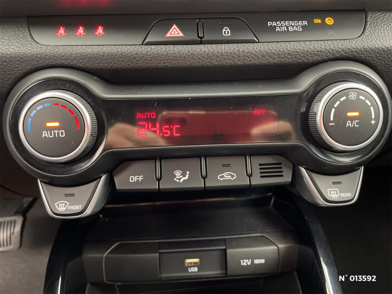 Eclairage dans le coffre / Aide au maintien dans la file (LKA) / Système de navigation avec cartographie Europe et services connectés TomTom LIVE offerts pendant 7 ans / 6 HP dont 2 tweeters à l'AV / Système UVO Connect - services télématiques offerts pendant 7 ans / Inserts intérieurs orange ou gris selon le coloris extérieur / Poignées de portes extérieures couleur carrosserie / Système de contrôle vectoriel du couple (TVBB) / Système de détection de trafic AR avec fonction freinage (RCCA) / Système anti-collision avec détection des angles morts (BCA) / Ecran multifonction monochrome TFT-LCD 4,2" / Système de freinage d'urgence autonome avec détection des piétons et des cyclistes (FCA) / Cache-bagages / Airbags frontaux conducteur et passager (déconnectable passager) / Système ISOFIX à 3 points d'ancrage sur sièges AR / Volant et pommeau de levier de vitesses gainés cuir / Pare-soleil avec miroirs de courtoisie (conducteur et passager) / Ceintures de sécurité AR à 3 points (x3) / Direction assistée électrique (MDPS) / Allumage automatique des projecteurs en fonction de la luminosité / Kit de dépannage en cas de crevaison / Système de verrouillage automatique des portes en roulant / Essuie-glace AV à intermittence / ABS avec répartiteur électronique de freinage (EBD) / 3ème feu stop à technologie LED / Volant chauffant / Ouverture et démarrage sans clé "Smart Key" / Connectique audio AUX et USB / Régulateur de couple et assistance au contre-braquage (VSM) / Prise 12V sur la console centrale AV / Poches aumonières au dos du siège passager AV / Projecteurs AV à technologie dite de projection / Poignées de portes intérieures finition chrome / Rétroviseur intérieur avec réglage manuel jour/nuit / Système de téléphonie mains-libres Bluetooth avec reconnaissance vocale / Console centrale avec double compartiment de rangement et porte-gobelets rétractables / Sellerie cuir de synthèse noir/gris / Essuie-glace AR avec lave-glace / Gestion intelligente des feux de route (HBA) / Compte-tours / Assistance active à la conduite dans les embouteillages (LFA)