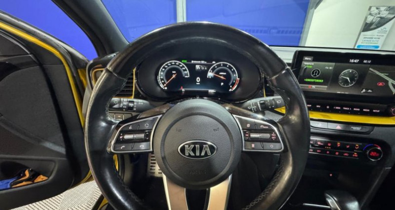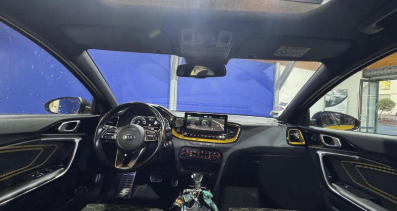 ======= OPTIONS ======= Peinture métallisée Sellerie cuir de synthèse tissu noir et jaune, inserts Jaune Equinoxe sur le tableau de bord et surpiqûres jaune sur les contreportes Systèmes avancés d?aide à la conduite ======= EQUIPEMENTS DE SERIE ======= 1 prise 12 volts dans le coffre ABS avec répartiteur électronique de freinage (EBD) Accoudoir central arrière avec porte-gobelets intégrés Accoudoir central avant coulissant avec coffre de rangement Affichage de la pression des pneumatiques Aide au maintien dans la file (LKA) Airbags frontaux, latéraux et rideaux Allumage automatique des projecteurs Appuie-tête arrière réglables en hauteur Appuie-têtes avant réglables en hauteur et en inclinaison Assistance au démarrage en côte Assistance au freinage d'urgence Bacs de rangement dans les contre-portes avant et arrière Banquette arrière rabattable 40 60 Caméra de recul avec lignes de guidage actives Capteur de pluie Capteurs de parking arrière Climatisation automatique bi-zone Combiné d'instrumentation 100% digital 12.3'' Compartiment range-lunettes Connexion audio USB Contour de calandre aspect chrome et application noir chromé sur grille de calandre Contrôle de pression des pneus ( TPMS ) Contrôle électronique de la trajectoire (ESC) Coques de rétroviseurs noir laqué Désembuage automatique du pare-brise Direction à assistance électrique asservie à la vitesse Eclairage dans le coffre Ecran tactile couleur 10.25 avec compatibilité Android Auto et Apple CarPlay Entourage de vitres finition chrome satiné Feux arrière à LED Feux de jour à LED Frein de parking électrique Jantes alliage 18 Kit de dépannage en cas de crevaison Lève-vitres électriques avant et arrière, séquentiels et antipincement Ordinateur de bord Ouverture et démarrage sans clé Smart Key Palettes de changement de rapports au volant Pare-soleil avec miroir de courtoisie illuminé conducteur et passager Pédalier et repose-pied finition aluminium Phares avant Full LED Plancher de coffre à 2 niveaux Poches aumônières au dos des sièges avant Poignées de portes intérieures finition chrome Pommeau de levier de vitesses en cuir Prise 12 volts sur la console centrale avant Prise USB à charge accélérée sur la partie inférieure de la planche de bord Projecteurs antibrouillard Radio MP3, 6 haut-parleurs (dont 2 tweeters), avec commandes au volant Radio Numérique DAB Rails de toit Réglages lombaires électriques sur sièges AV Régulateur et limiteur de vitesse Rétroviseur intérieur électrochrome Rétroviseurs extérieurs électriques et dégivrants Rétroviseurs extérieurs rabattables électriquement avec répétiteur de clignotant LED Sélecteur de conduite DRIVE MODE (Normal ou Sport) Sellerie cuir de synthèse tissu noir Services télématiques UVO CONNECT Siège conducteur réglable en hauteur Siège passager avant réglable en hauteur Spoiler arrière avec troisième feu stop à LED Spots de lecture avant et arrière Système actif d'aide au stationnement Système de chargement du smartphone par induction Système de freinage d urgence autonome (FCA) avec détection des piétons Système de gestion intelligente des feux de route (HBA) Système de navigation avec cartographie Europe et services connectés TomTom LIVE offerts pendant 7 ans Système de surveillance de la vigilance du conducteur Système de téléphonie mains-libres Bluetooth avec reconnaissance vocale et fonction streaming audio (selon compatibilité du téléphone) Système Isofix sur sièges arrière latéraux Témoin d'alerte pour niveau de liquide lave-glace Toit vitré panoramique ouvrant entrebâillant électriquement, avec rideau occultant électrique Verrouillage automatique des portes asservi à la vitesse Vitres latérales et lunette arrière surteintées Volant gainé cuir Volant réglable en hauteur et en profondeur Nb. Vitesses : 7 Conso Mixte : l/100