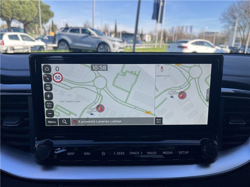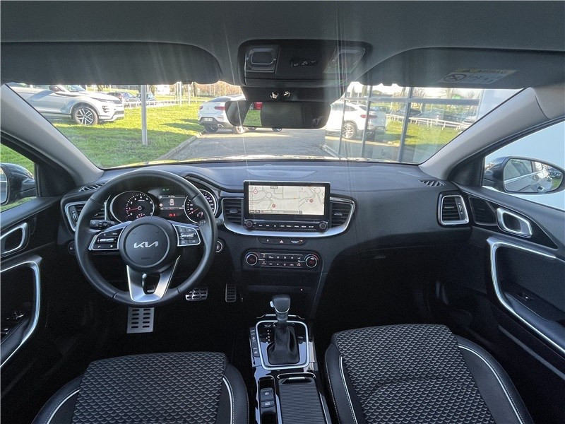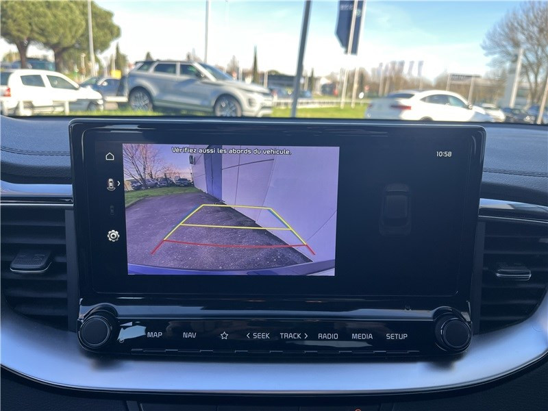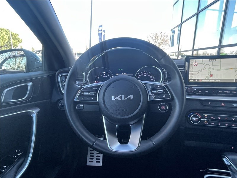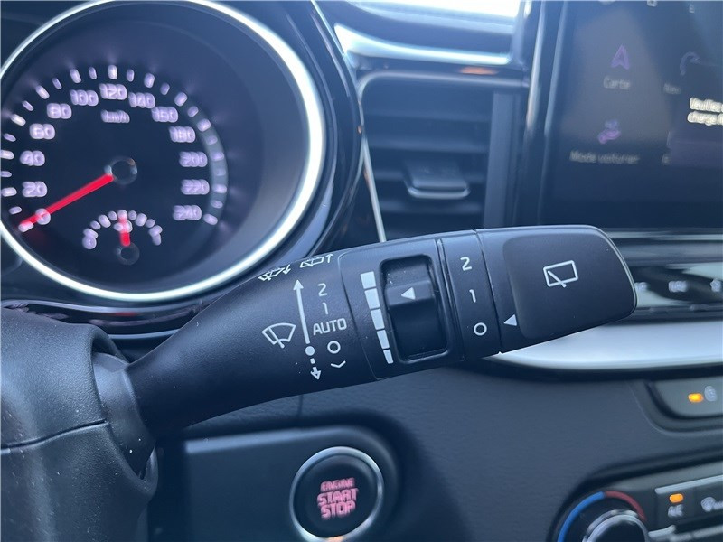 ABS avec répartiteur électronique de freinage (EBD) / Accoudoir central AR avec porte-gobelets intégrés / Accoudoir central AV coulissant avec compartiment de rangement / Aide au maintien dans la file (LKA) / Alerte de vigilance du conducteur (DAW) / Alerte de vigilance du conducteur (DAW+) / Allumage automatique des projecteurs en fonction de la luminosité / Appuis-tête AV et AR réglables en hauteur et en inclinaison (à l'AV uniquement) / Assistance active à la conduite dans les embouteillages (LFA) / Bacs de rangement dans les contre-portes AV et AR / Becquet AR avec troisième feu stop LED intégré / Compartiment range-lunettes / Connectique audio USB / Connectiques audio USB AV et AR / Connectique USB à charge rapide (Type-C) AV / AR / Contour de calandre aspect chrome et application noir chromé sur grille de calandre / Contour de calandre aspect chrome et application noir laqué sur grille de calandre / Coques de rétroviseurs couleur carrosserie / Direction à assistance électrique asservie à la vitesse / Eclairage dans le coffre / Ecran tactile couleur 10,25'' avec compatibilité via câble USB Android Auto et Apple CarPlay / Fonctionnalité Bluetooth avec reconnaissance vocale et streaming audio / Kit de dépannage en cas de crevaison / Lève-vitres AR électriques, séquentiels et anti-pincement / Lève-vitres AV électriques, séquentiels et anti-pincement / Ligne de vitres finition chrome satiné / Ouverture et démarrage sans clé "Smart Key" / Pare-soleil avec miroir de courtoisie illuminé (conducteur et passager) / Pédalier et repose-pieds finition aluminium / Plancher de coffre à double niveau / Poches aumônières au dos des sièges AV / Poignées de portes intérieures finition chrome / Pommeau de levier de vitesses gainé cuir / Prise 12 V dans le coffre / Prise 12 V sur la console centrale / Prise 12 V sur la console centrale AV / Rails de toit / Reconnaissance des panneaux de limitation avec régulation de vitesse (ISLA) / Rétroviseur intérieur électrochrome (ECM) / Rétroviseurs extérieurs avec répétiteurs de clignotant intégrés / Sélecteur de conduite DRIVE MODE (Normal ou Sport) / Sellerie mixte matière synthétique/tissu noir / Services télématiques Kia Connect offerts pendant 7 ans / Sièges AV à réglage lombaire électrique / Spots de lecture AV et AR / Système audio Radio/MP3 6 HP avec commandes au volant / Système de fixation ISOFIX sur sièges AR latéraux / Système de freinage d'urgence autonome avec détection des voitures, piétons et cyclistes (FCA) / Système de gestion intelligente des feux de route (HBA) / Système de navigation et services connectés Kia Connect Live / Système de téléphonie mains-libres Bluetooth avec reconnaissance vocale et fonction streaming audio / Système Kia Connect - services télématiques offerts pendant 7 ans / Témoin de niveau bas du liquide de lave-glace / Verrouillage automatique des portes asservi à la vitesse
