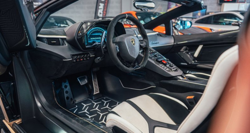 Lamborghini Aventador SVJ Roadster Genève 2019 Nous proposons à la vente une Lamborghini Aventador SVJ Roadster exceptionnelle, dotée d’une provenance rare et particulièrement prestigieuse. Cet exemplaire est l’un des deux véhicules officiels utilisés par Lamborghini pour la présentation mondiale du modèle lors du Salon de Genève 2019. Véritable show car d’usine, il fait partie de l’histoire du modèle et incarne tout le savoir-faire et l’excellence de la marque italienne. Immatriculée en 2021 et acquise ensuite par un joueur de tennis professionnel de tout premier plan, grand passionné d’automobile et de sport mécanique, cette SVJ a intégré une collection privée soigneusement sélectionnée. Elle représente l’alliance parfaite entre performance extrême, design radical et exclusivité absolue. Cette Lamborghini est proposée dans le cadre d’un pack exclusif, comprenant également : - Une Ducati Streetfighter V4 Lamborghini unique, personnalisée en harmonie avec la SVJ - Une tenue personnelle complète tennis de compétition officielle signée - Une raquette personnelle dédicacée Cette Aventador SVJ Roadster n’est pas seulement une supercar d’exception : C’est une pièce de collection, chargée d’histoire, proposée dans sa configuration la plus prestigieuse. Le prix affiché comprend le package complet.