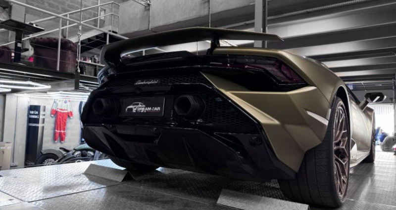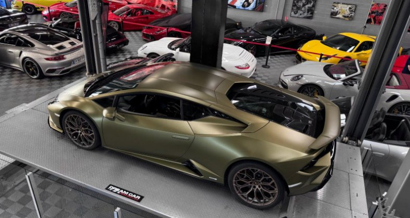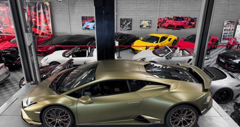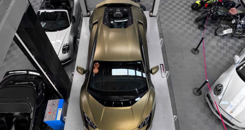 LAMBORGHINI HURACAN TECNICA - PPF complet - AD personam Année : 2024 Mise en circulation : 29/05/2024 Kilométrage : 11 500 kms Boîte de vitesse : automatique Energie : essence Puissance fiscale : 59 CV Puissance din : 640 CH Couleur extérieur : verde gea mat Couleur intérieur : cuir et alcantara noir Nombre de portes : 2 Nombre de places : 2 Garantie : constructeur jusqu’en 05.2027 Véhicule dans des conditions esthétiques irréprochables, dont la configuration est AD PERSONAM avec une très belle teinte VERDE GEA mat. Un PPF complet a été posé afin de la protéger. Il s’agit d’une première main, dont l’entretien est à jour, réalisé chez le constructeur et bénéficie de ses entretiens gratuits ainsi que d’une garantie constructeur jusqu’en 05.2027. OPTIONS ET EQUIPEMENTS : Système de levage de l’essieu avant (lift system) Sièges sport en alcantara noir avec détails en cuir beige Siège conducteur réglable en hauteur Logo LAMBORGHINI brodé sur appuie tête Arceau de sécurité en titane Inserts en carbone mat dans l’habitacle Garniture intérieure des portes en carbone Capot moteur en carbone Baguettes de seuils de porte en aluminium Volant en cuir avec marqueur à midi en cuir beige et surpiqûres beiges Partie inférieure du tableau de bord en cuir beige Partie basse de la console centrale en cuir beige Jantes narvi 20’’ en bronze Diffuseur arrière en noir brillant Régulateur de vitesse Aide au stationnement avant et arrière Caméra de recul Sorties d’échappement en noir mat Logo arrière en argent brillant Etriers de freins noirs Freins céramiques Tapis de sols noirs avec contours en cuir beige … Prix : 314 900€ Pour plus d’informations, nous contacter. Véhicule disponible sur rendez-vous uniquement chez : DREAM CAR PERFORMANCE 39 Allée des géomètres 06700 Saint-Laurent du Var Showroom ouvert du lundi au vendredi de 10h à 12h et de 14h à 18h. Livraison par camion fermé disponible à travers le monde sur demande. Mlle RIVIERE Eloise WhatsApp Disponible + 33 (0) 6 2 00 96 92 + 33 (0) 4 97 22 28 28 [email protected]