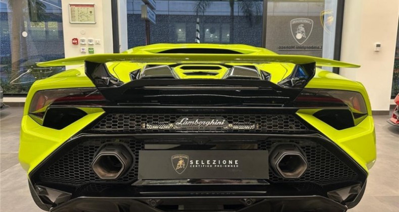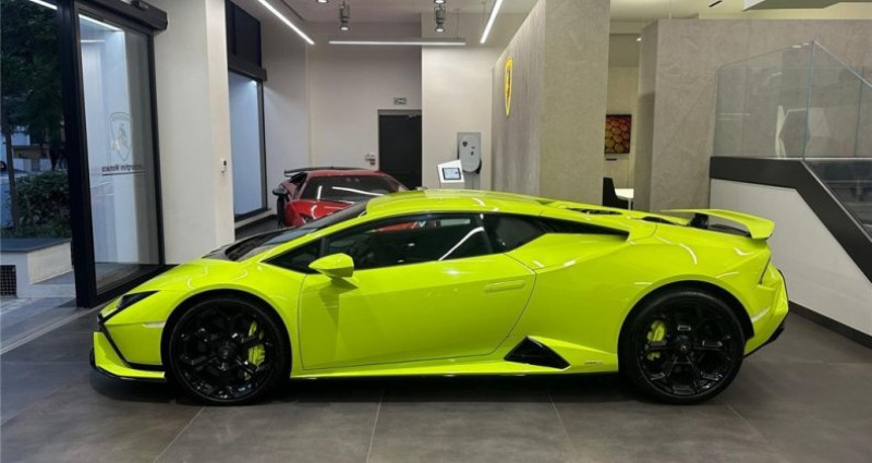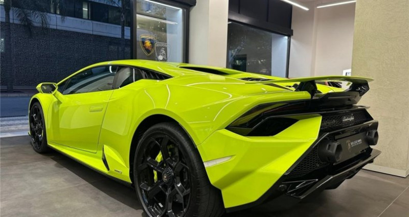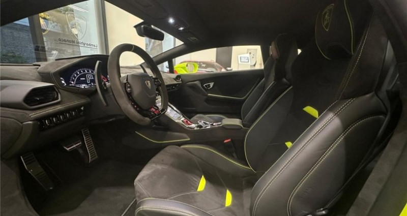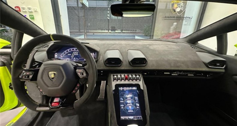 Nb. Vitesse : 7 Nb. Places : 2 Info : Propulsion arrière Echappement : Pot catalytique avec Filtre à Particules Couple : 565Nm EQUIPEMENTS ======================= - Additional Parts in Alcantara Interiors (Roof + upper dashboard + door pannels) - CCB brakes calipers Verde Scandal - Ad Personam - Color exterior Verde Scandal Shiny - Ad Personam - Embroidered Lamborghini Shield on Headrest - Lifting System - Multifunction steering wheel in Alcantara and central markin contrast color - Pack Style High Gloss Black - Rear View Camera - Rims Damiso 20 - Shiny Black with monolock in Black - Tailpipes in matt black - Unicolor Leather & Alcantara with Contrast stitching