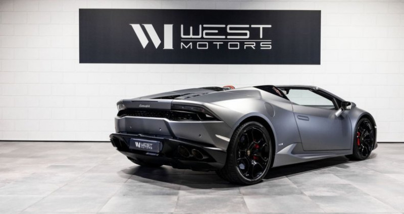 Lamborghini Huracan Spyder LP-610 4 5.2 V10 610 Ch Première main, Origine France Kilométrage : 44 239 km M.E.C : 26/09/2016 Options et équipements : - GRIGIO TITIAN MAT (Peinture sur demande Ad Personam) - Jantes Giano 20’’ peintes en noir brillante - Capote rouge - Sur-élévateur avant Lift - Système d’échappement sport en Noir - Frein carbone céramique - Étriers de freins rouges - Suspension magnétique - Aide au stationnement avant et arrière avec caméra de recul - Montant de pare-brise couleur carrosserie - Rétroviseurs peints couleur carrosserie - Rétroviseurs anti-éblouissement automatique - Régulateur de vitesse - Direction active LDS - Alarme - Intérieur cuir alcantara noir et rouge - Sièges confort réglables électriquement - Sièges chauffants - Volant multifonction en alcantara avec surpiqures contrastantes rouge demande Ad Personam) - Garniture de pavillon et montant en alcantara - Tableau de bord en cuir Nero Ade avec surpiqures contrastantes rouge (Sur demande Ad Personam) - Monogrammes Lamborghini les sièges en (Sur demande Ad Personam) - Panneaux de portes en alcantara - Navigation Prix de vente : 217 900€ Offre de location en crédit ballon possible à partir de 1410,93 € / mois pendant 48 mois avec 50 000 € d’apport (plus d’informations sur demande) Véhicule garantie 12 mois valable dans le réseau Lamborghini en France et en Europe. Plus de photos sur demande. - - - - - - - - - - - - - - INFORMATIONS - - - - - - - - - - - - - WEST MOTORS - LYON - MOUGINS Achat et vente de véhicules sports et premium Nous vous proposons un large choix de véhicules haut de gamme, que nous prenons soin de faire contrôler rigoureusement. L’équipe West Motors met à votre disposition tout son savoir-faire pour vous satisfaire. Nous vous proposons différentes solutions de financement (crédit classique, leasing, LOA, crédit ballon…). De la reprise de votre ancien véhicule au financement de votre nouveau projet, nous nous occupons de tout. Pour chaque véhicule, nous vous garantissons le kilométrage et sommes en mesure de vous fournir un historique complet et transparent. Nous vous offrons également différentes possibilités d'extension de garantie de 6, 12 ou 24 mois (garantie valable chez tous les concessionnaires de la marque en France et partout en Europe). Ayez l’esprit tranquille, nous sommes agréés et habilités par la Préfecture pour établir votre nouvelle carte grise. N’hésitez pas à nous rendre visite ! Notre showroom, situé à seulement 10 min de Lyon, est accessible uniquement sur rendez-vous. Vous n’êtes pas de la région ? Nous pouvons venir vous chercher directement en gare ou à l’aéroport. Autres modèles : 458 992 488 f12 812 f8 r8 *Annonce non contractuelle, sous réserve d’erreur de notre part* OPTIONS ET ÉQUIPEMENTS : Autres équipements et informations : - - GRIGIO TITIAN MAT (Peinture sur demande Ad Personam) - Jantes Giano 20’’ peintes en noir brillante - Capote rouge - Sur-élévateur avant Lift - Système d’échappement sport en Noir - Frein carbone céramique - Étriers de freins rouges - Suspension magnétique - Aide au stationnement avant et arrière avec caméra de recul - Montant de pare-brise couleur carrosserie - Rétroviseurs peints couleur carrosserie - Rétroviseurs anti-éblouissement automatique - Régulateur de vitesse - Direction active LDS - Ala - - Intérieur cuir alcantara noir et rouge - Sièges confort réglables électriquement - Sièges chauffants - Volant multifonction en alcantara avec surpiqures contrastantes rouge demande Ad Personam) - Garniture de pavillon et montant en alcantara - Tableau de bord en cuir Nero Ade avec surpiqures contrastantes rouge (Sur demande Ad Personam) - Monogrammes Lamborghini les sièges en (Sur demande Ad Personam) - Panneaux de portes en alcantara - Navigation